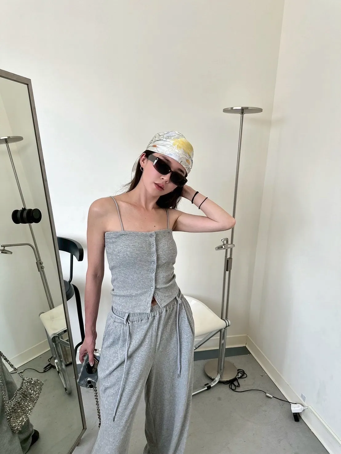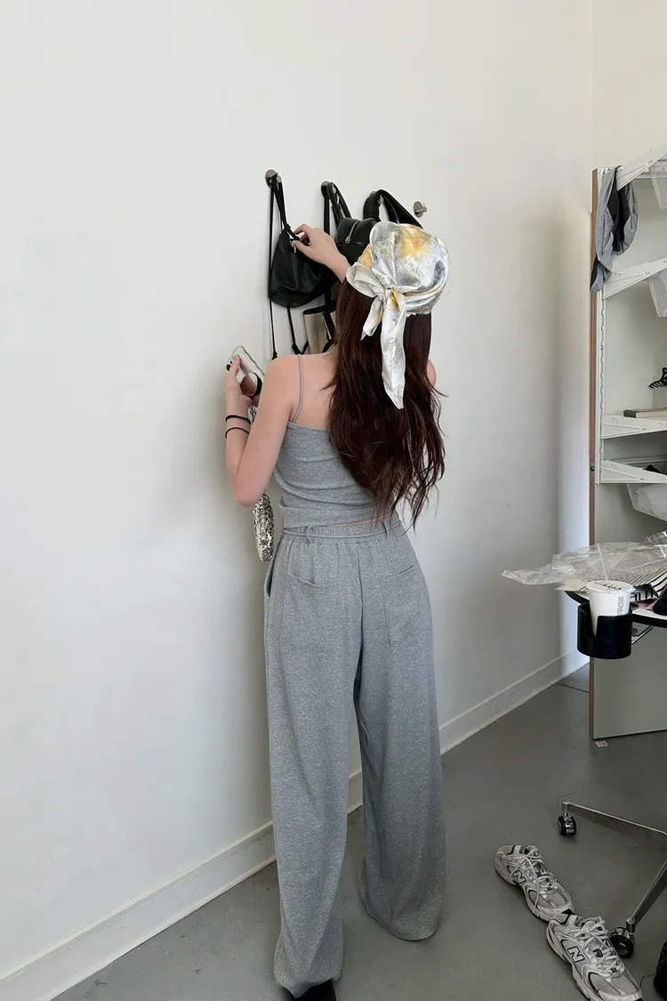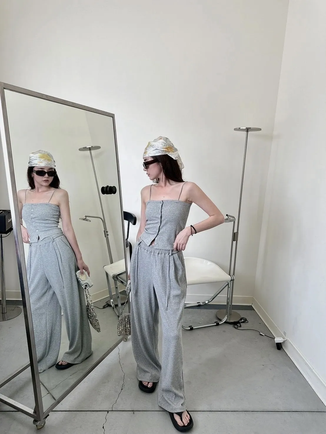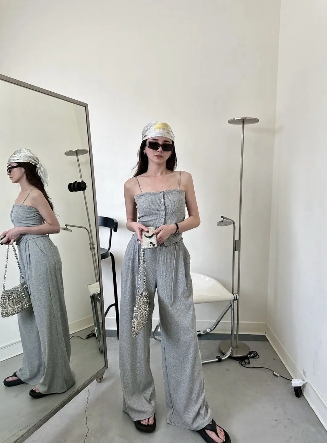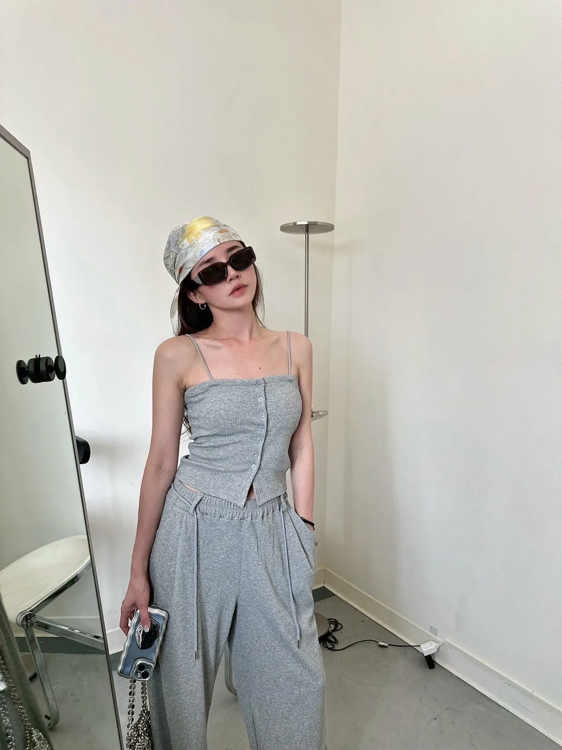 灰色 又帥又辣!細肩平口bra top+長褲SET