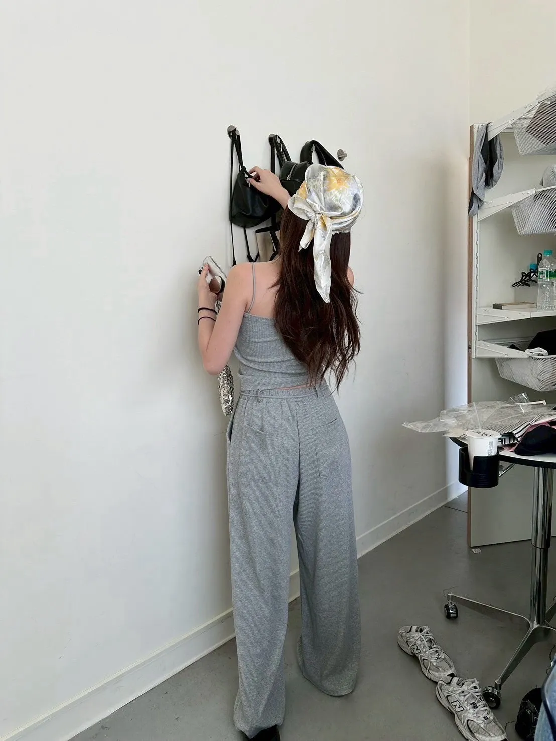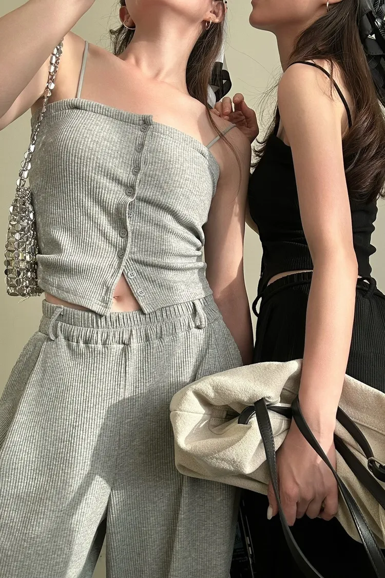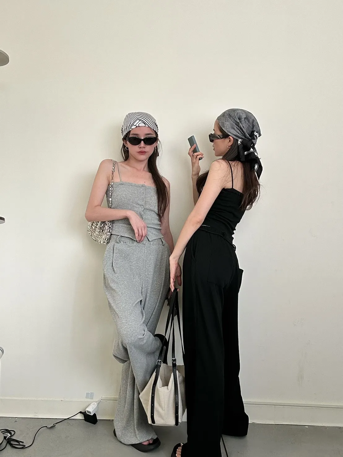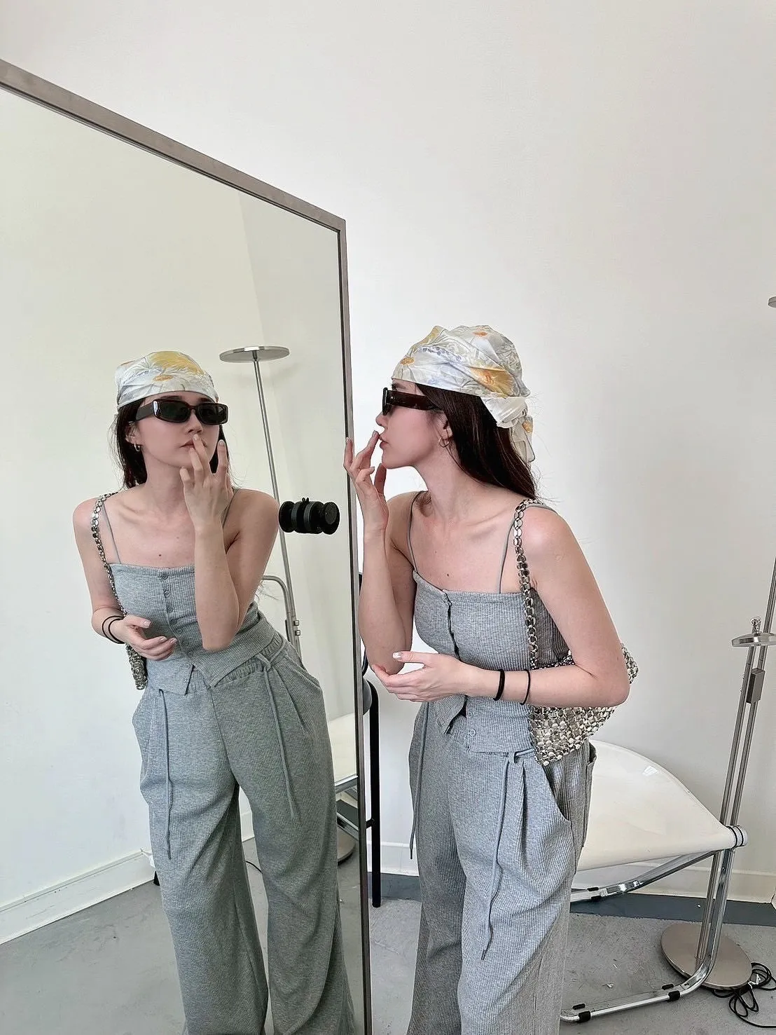 灰色 又帥又辣!細肩平口bra top+長褲SET