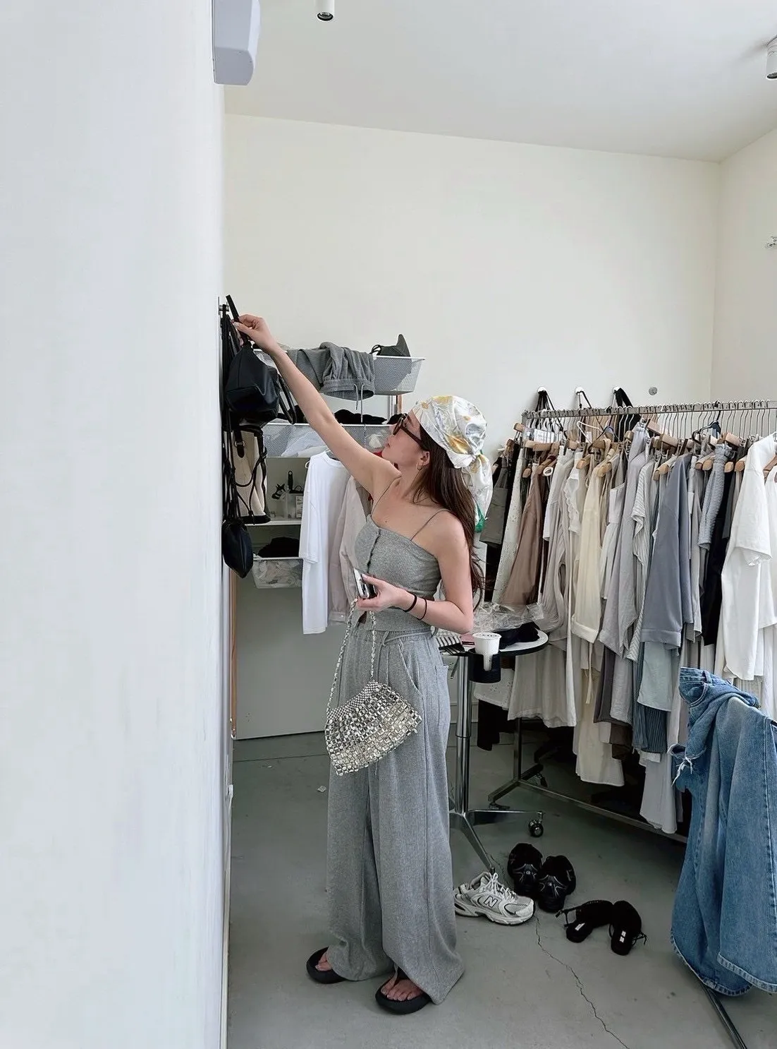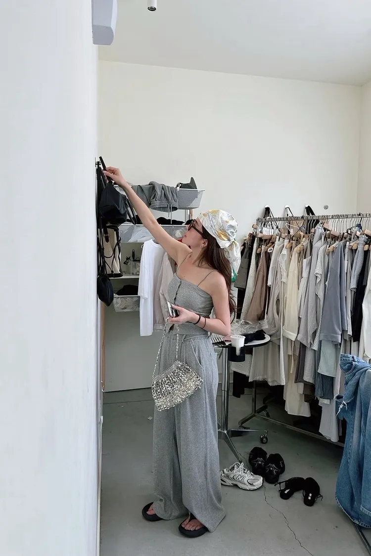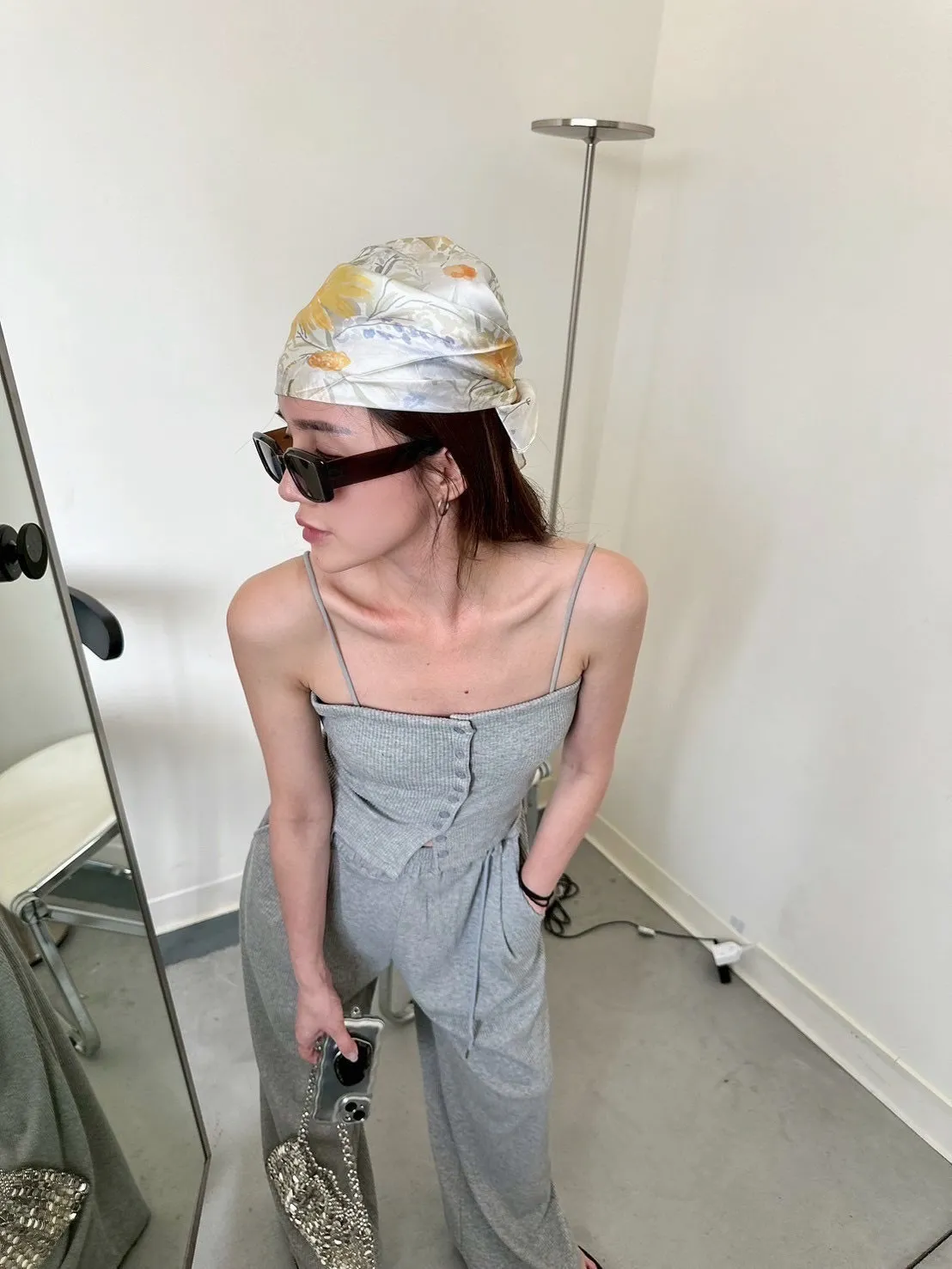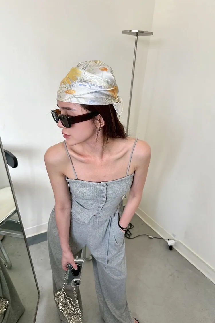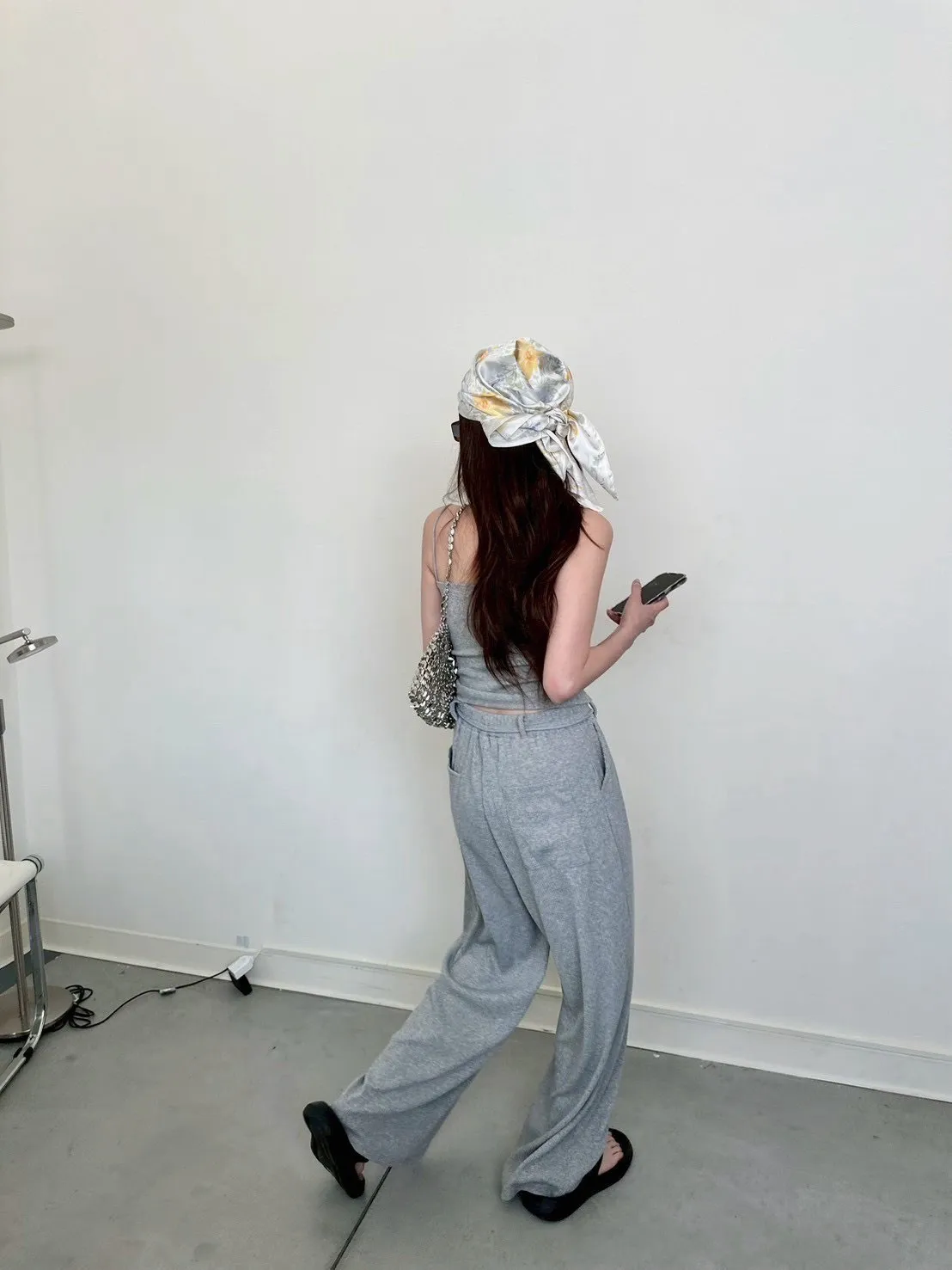 灰色 又帥又辣!細肩平口bra top+長褲SET