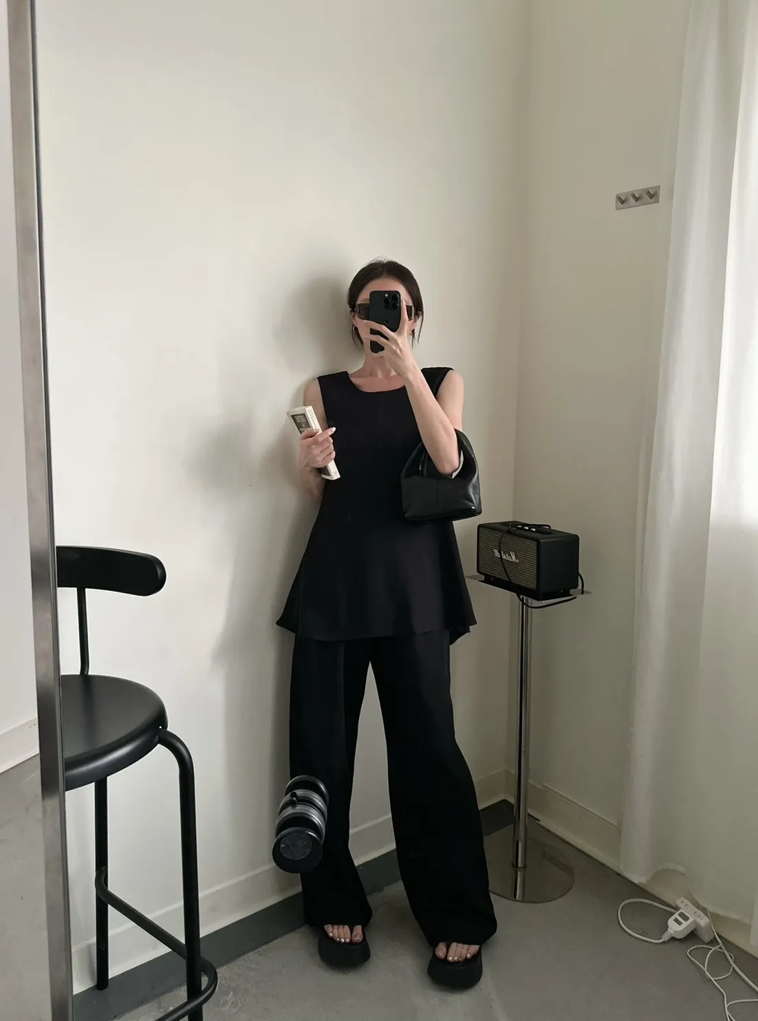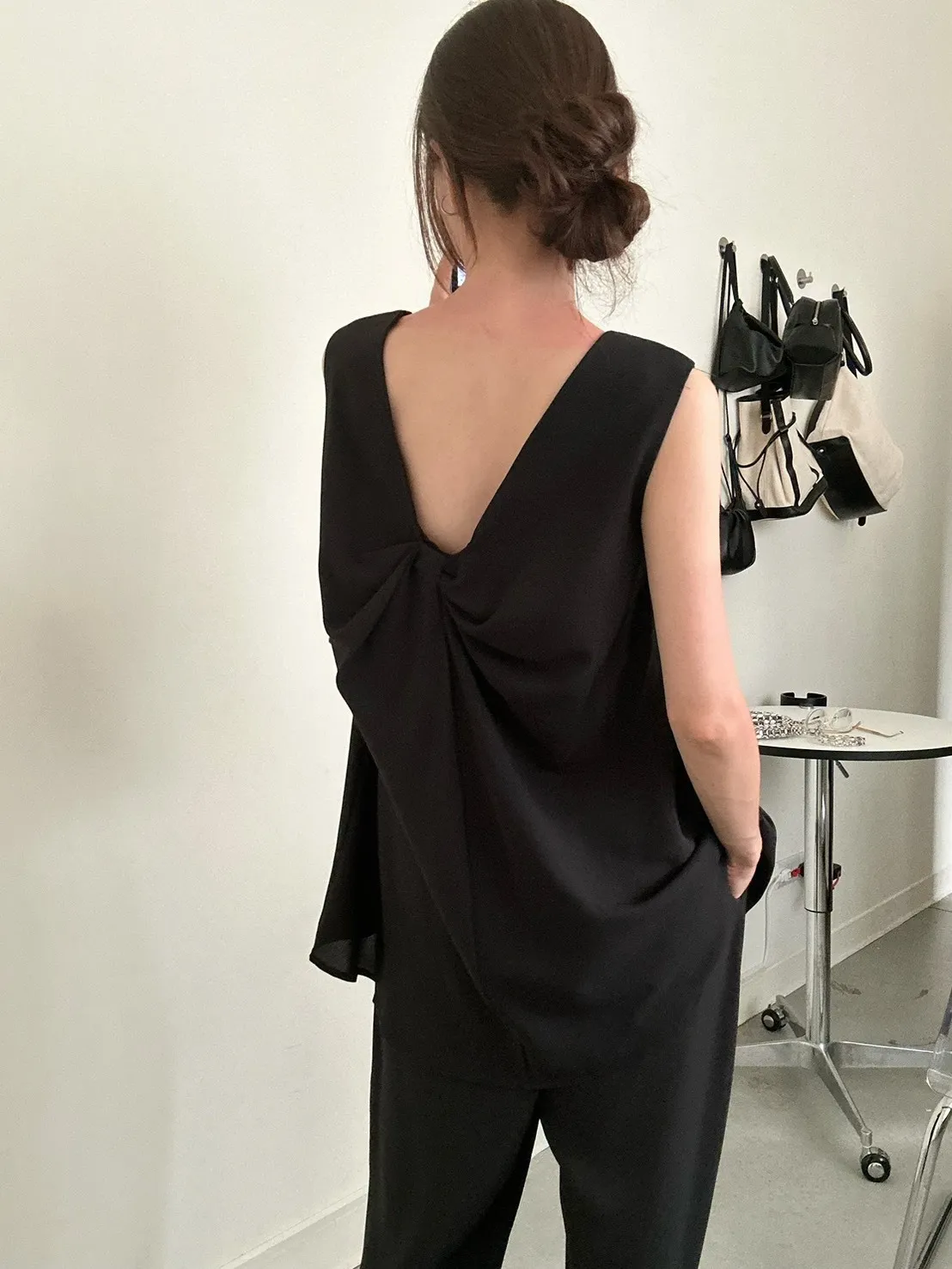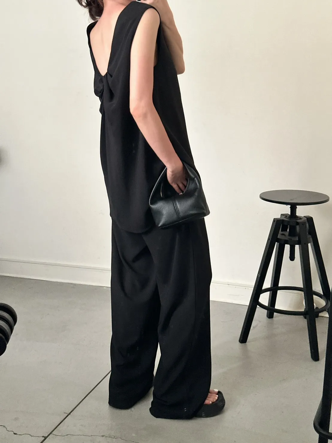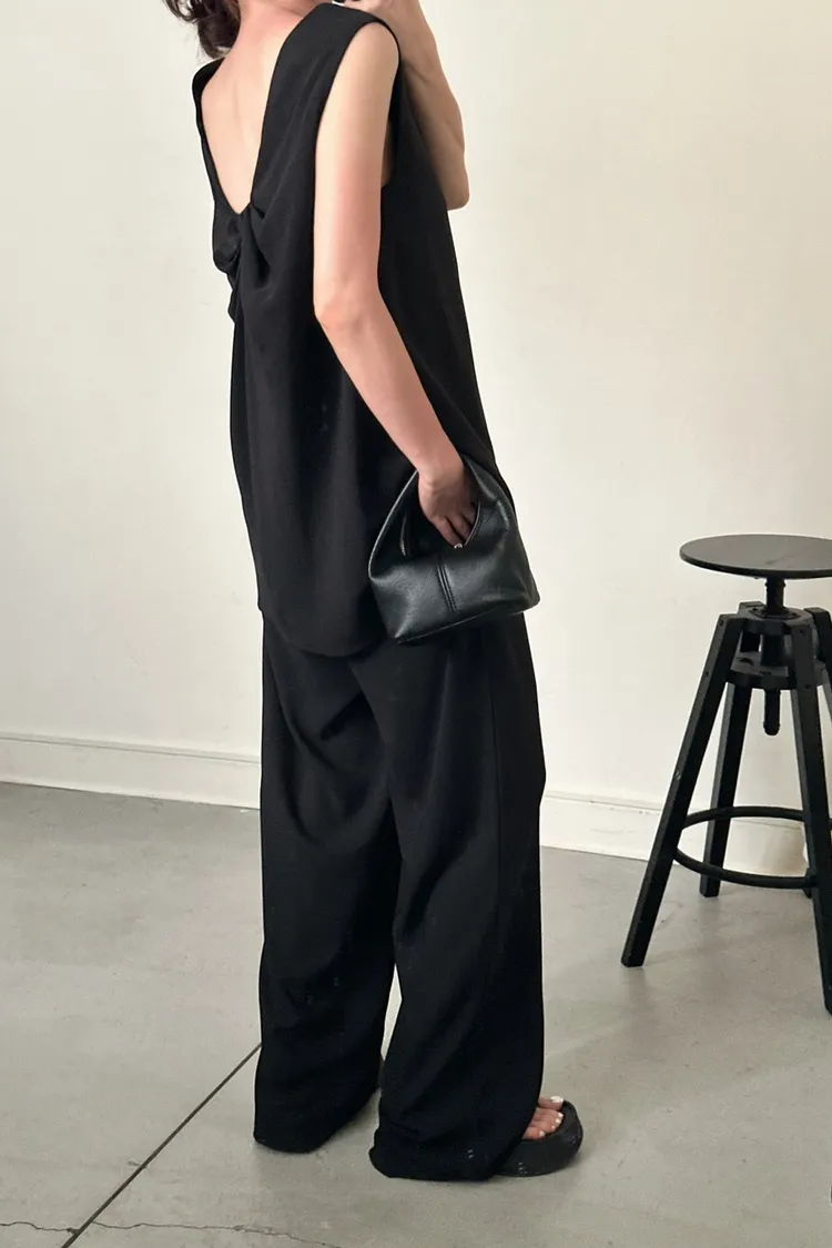 (現貨)黑色 極美自留!高磅雪紡紗後扭背心+長褲SET