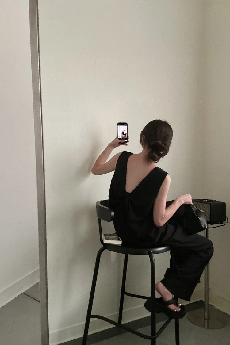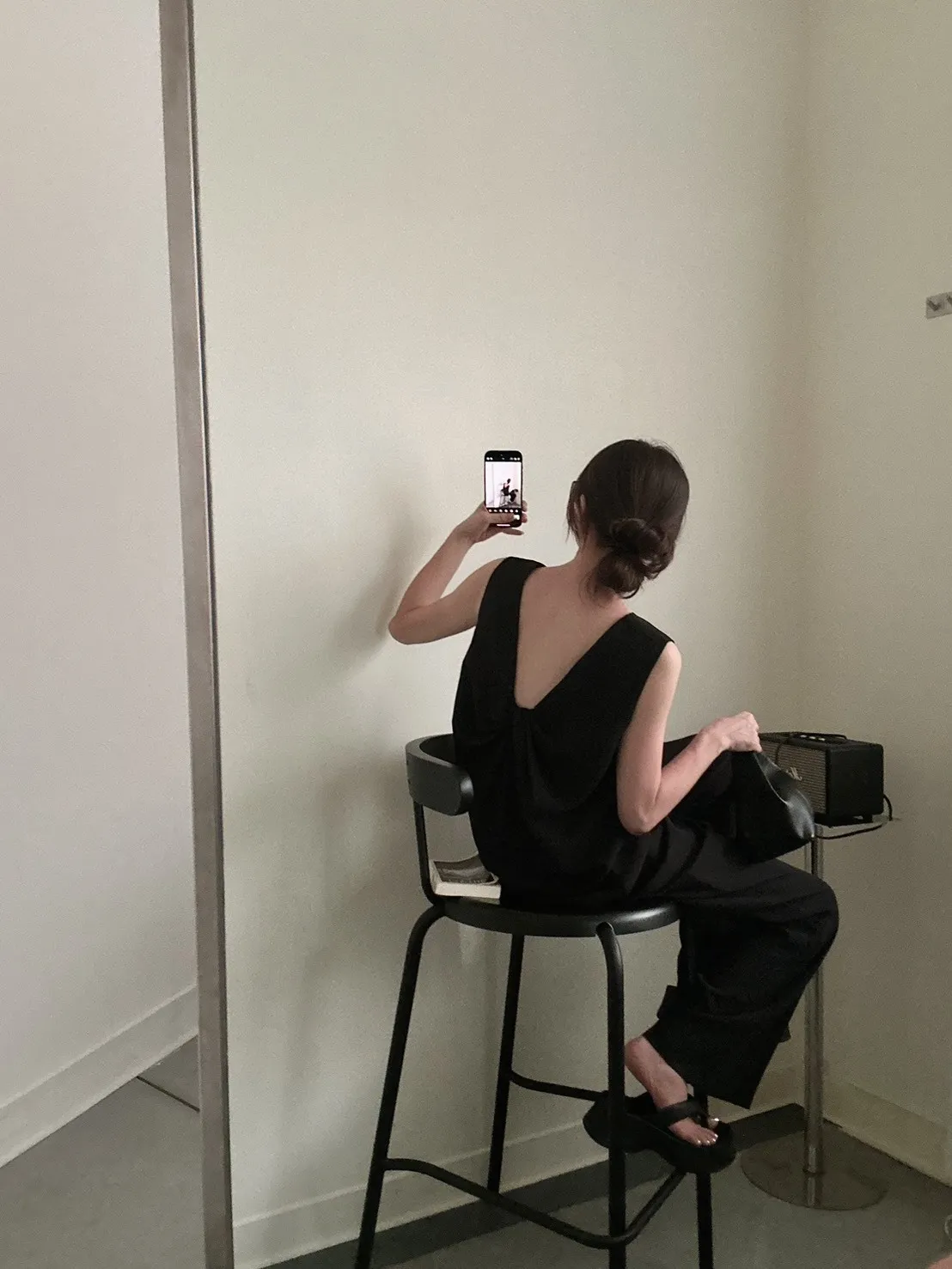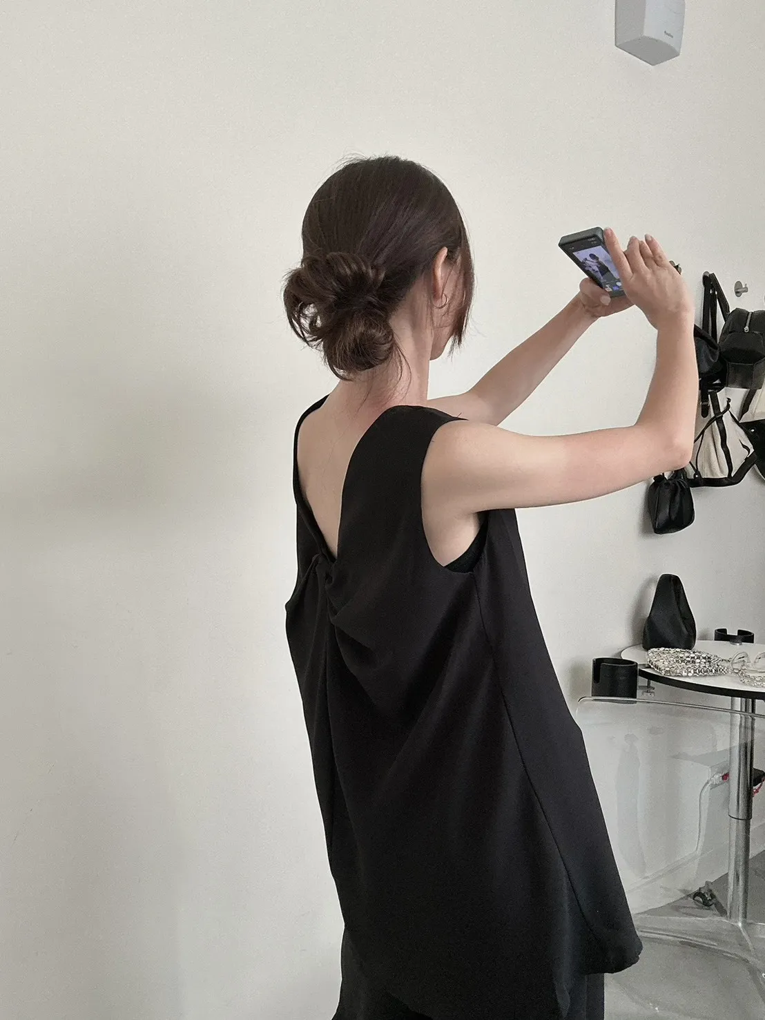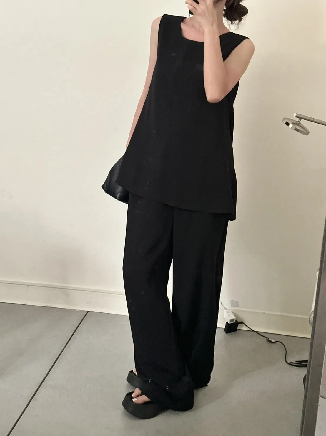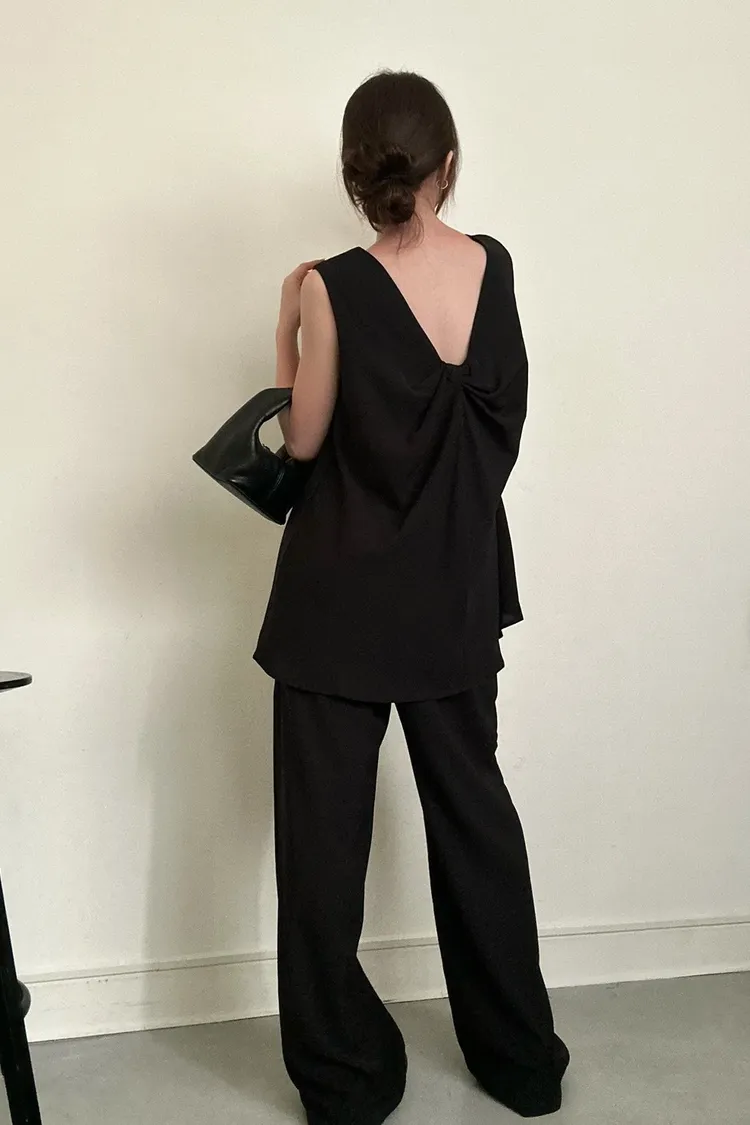 (現貨)黑色 極美自留!高磅雪紡紗後扭背心+長褲SET