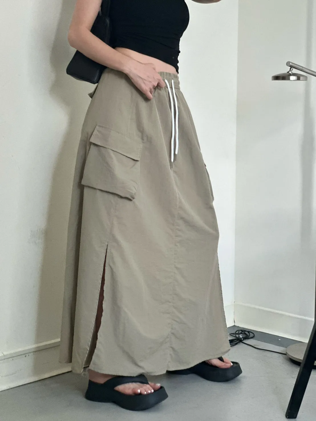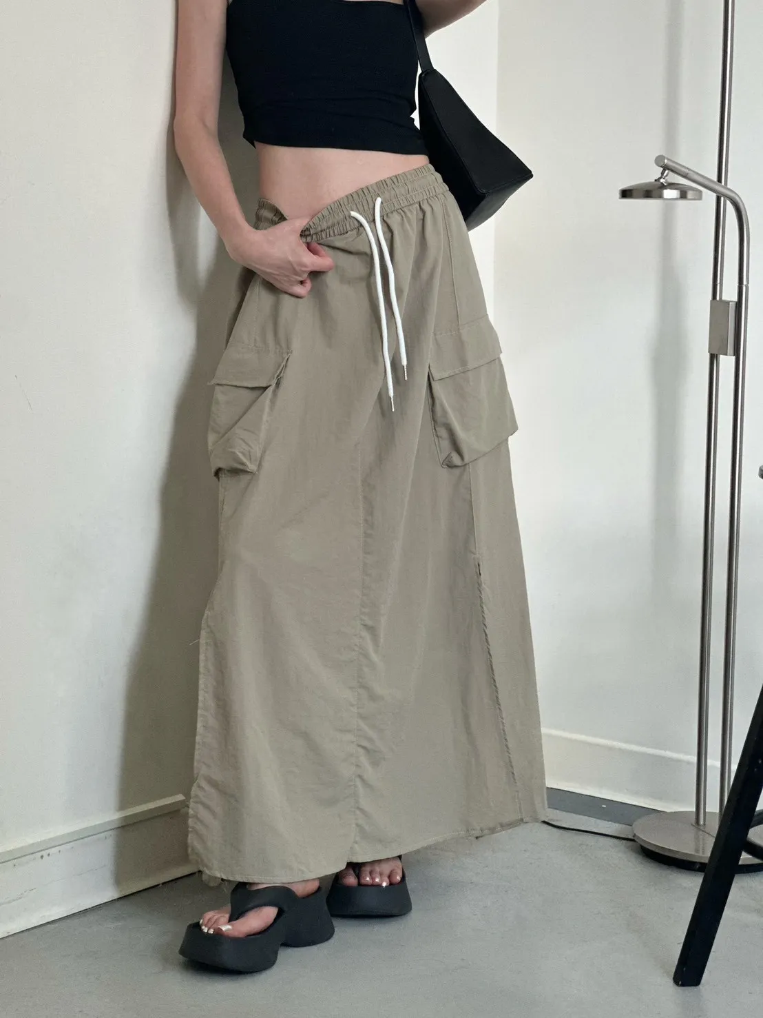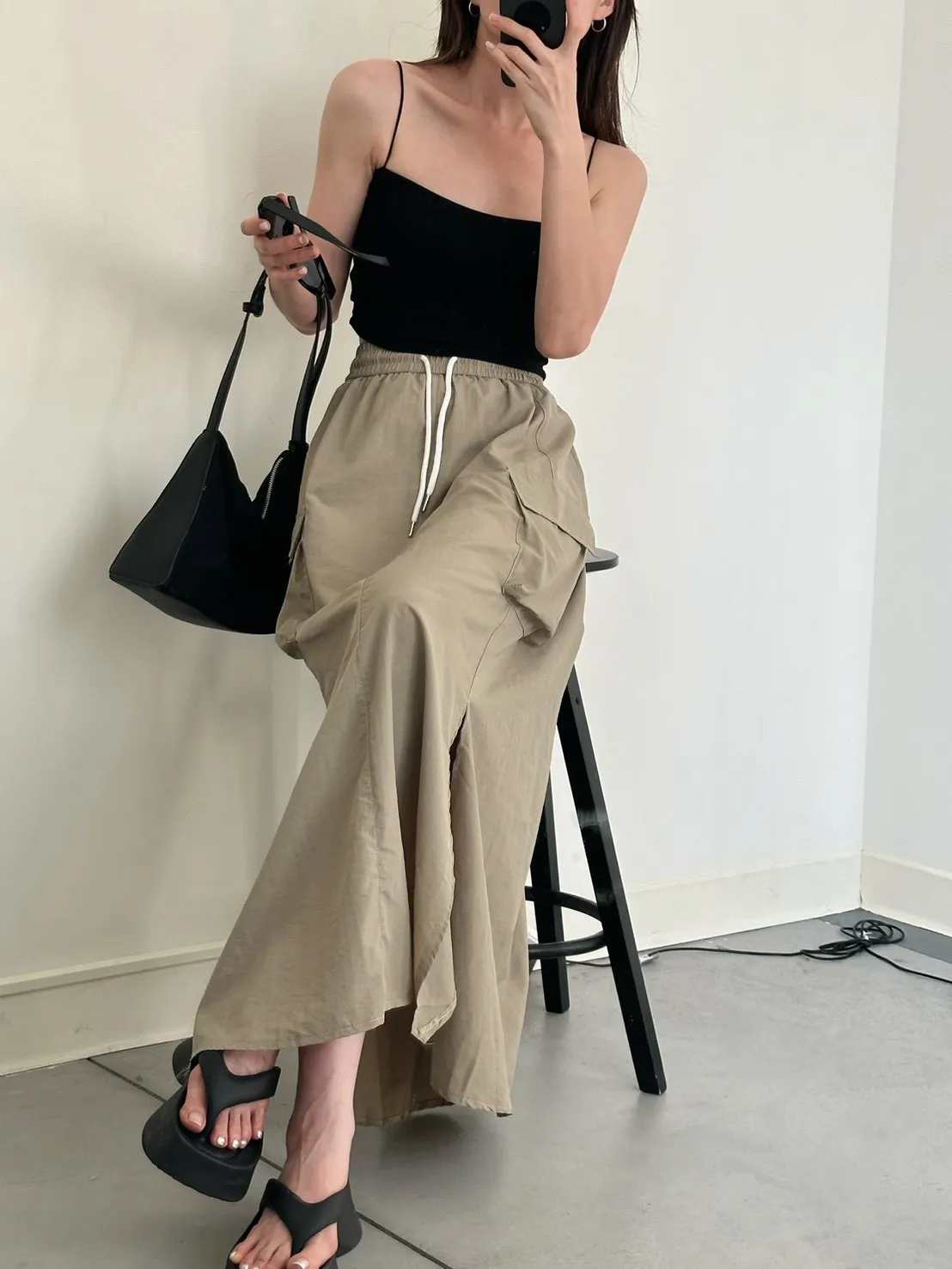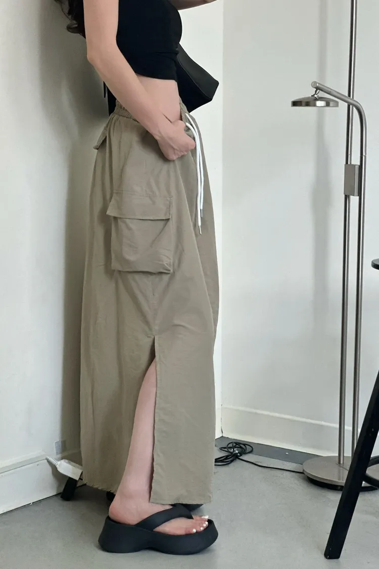 卡其色 主推自留!側開岔抽繩刷刷裙