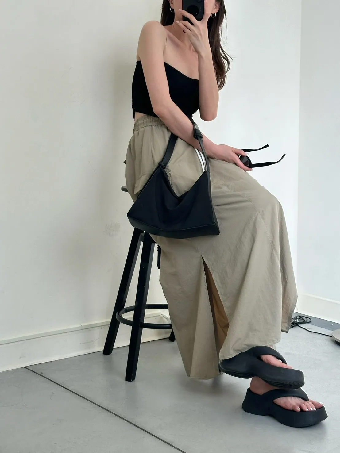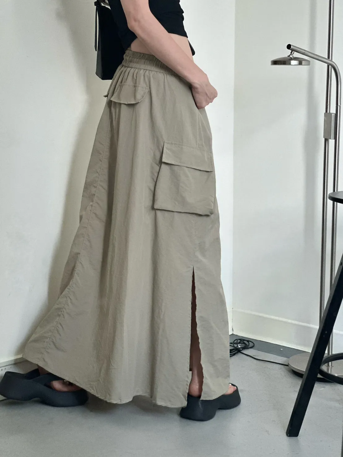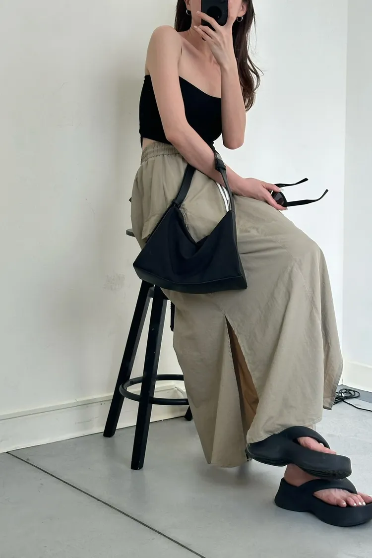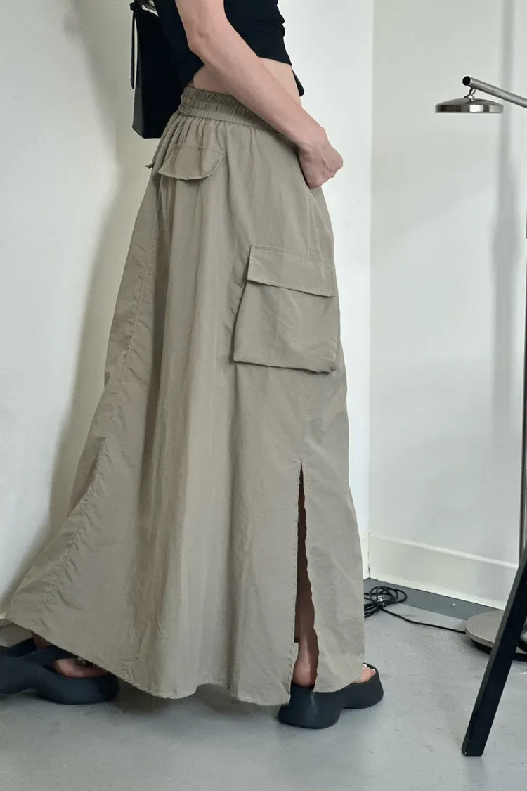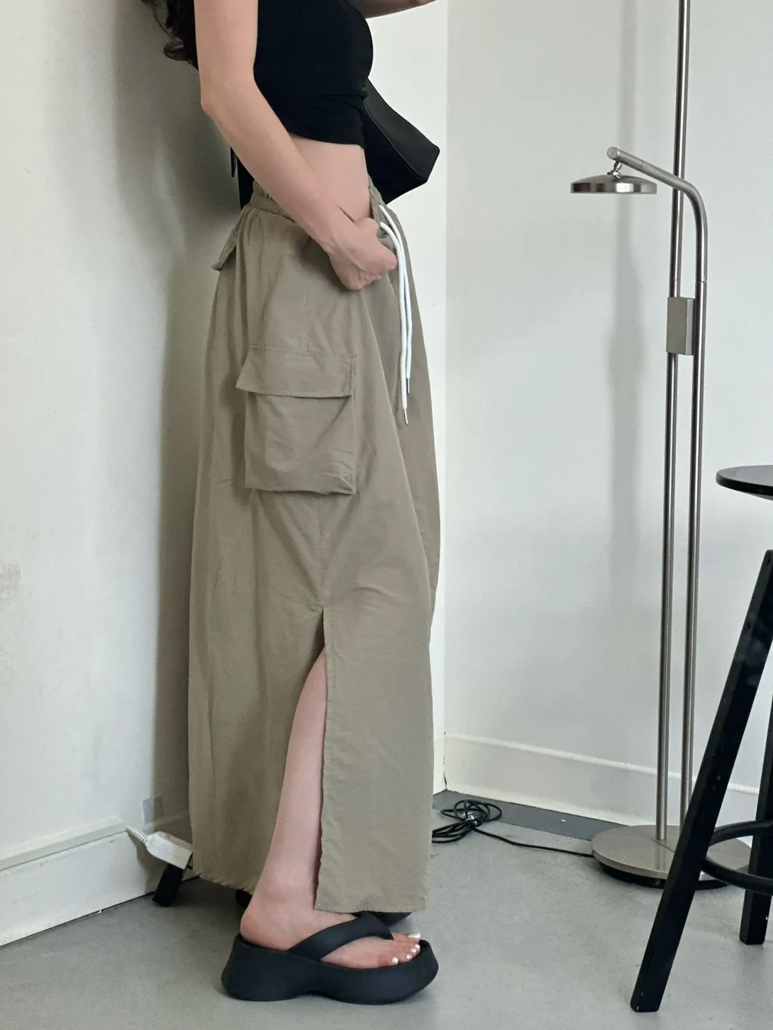 卡其色 主推自留!側開岔抽繩刷刷裙