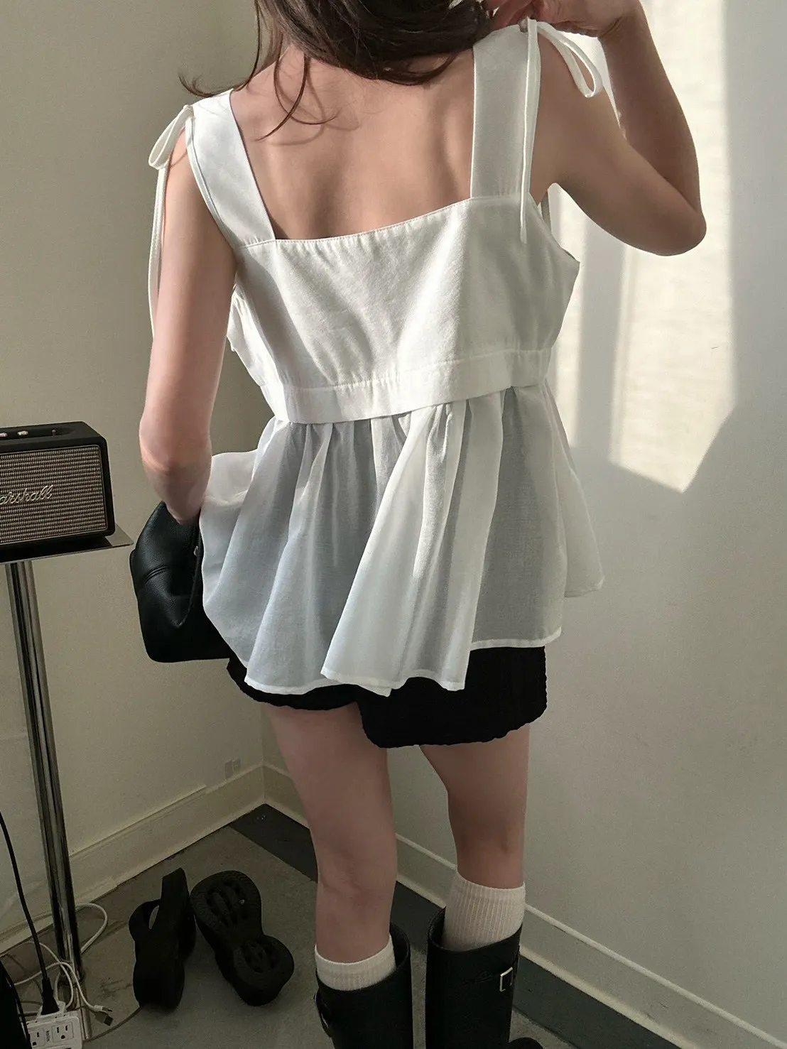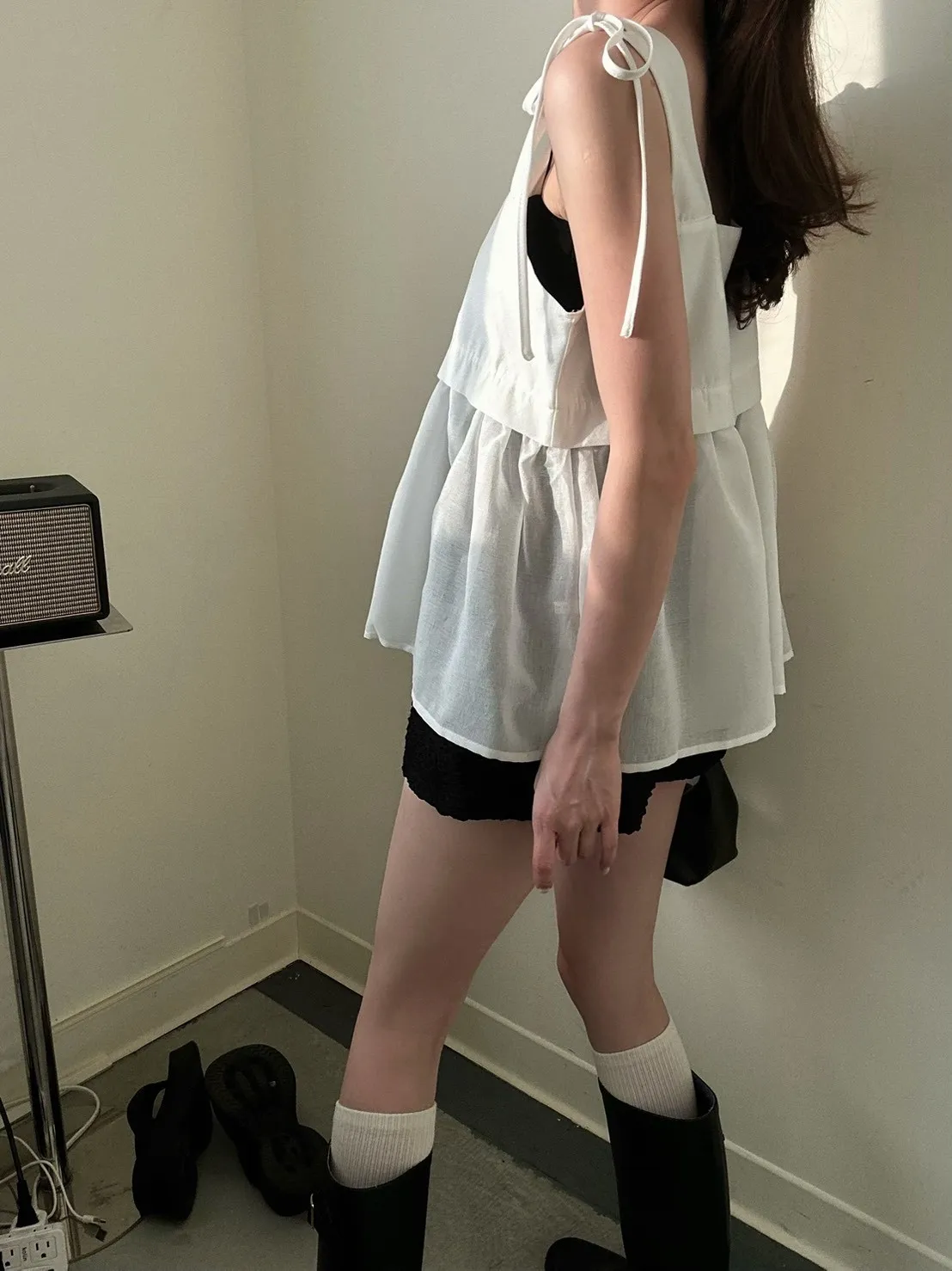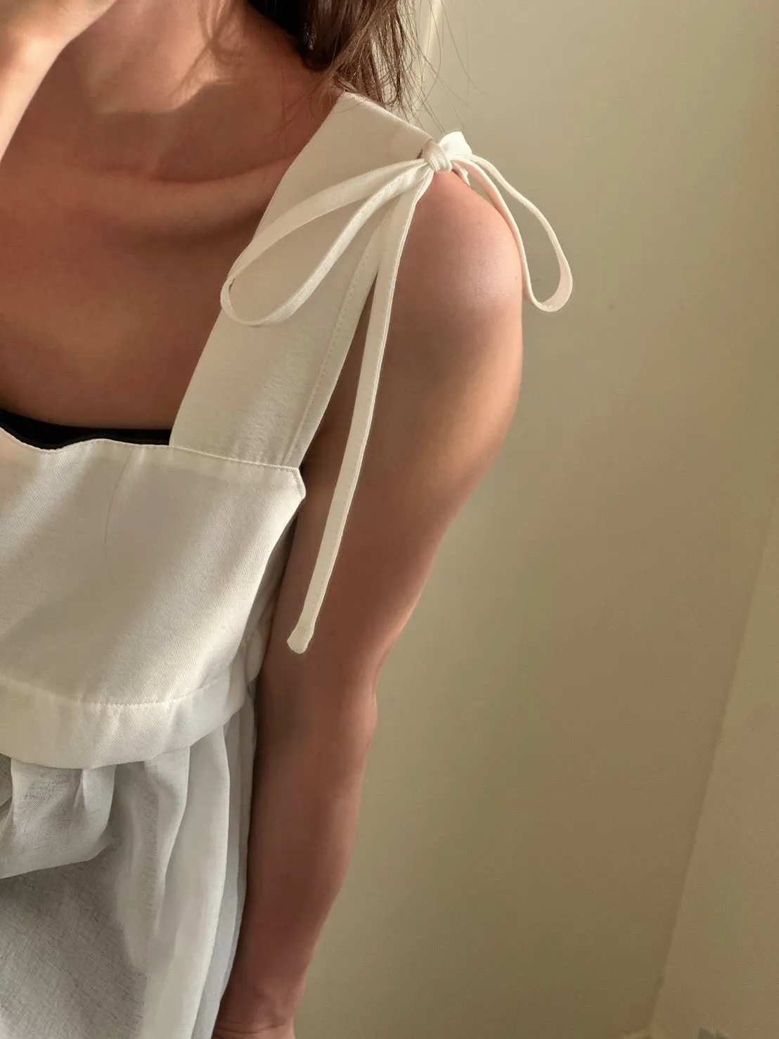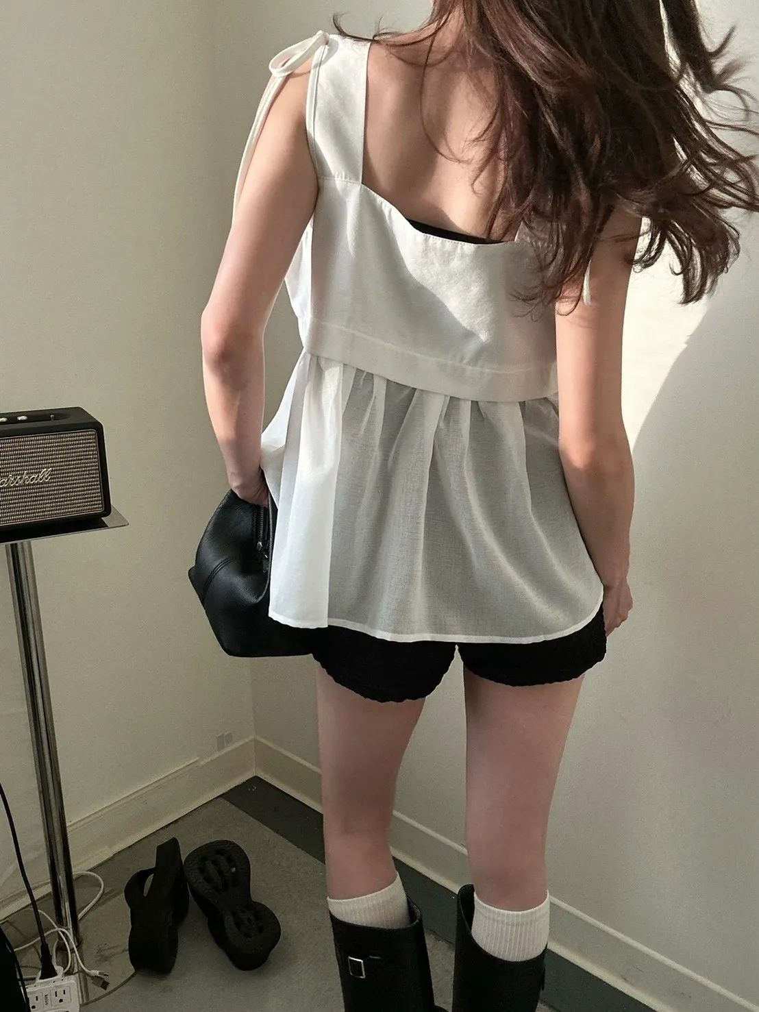 KOREA 白色 可愛到尖叫!寬肩綁結下傘背心