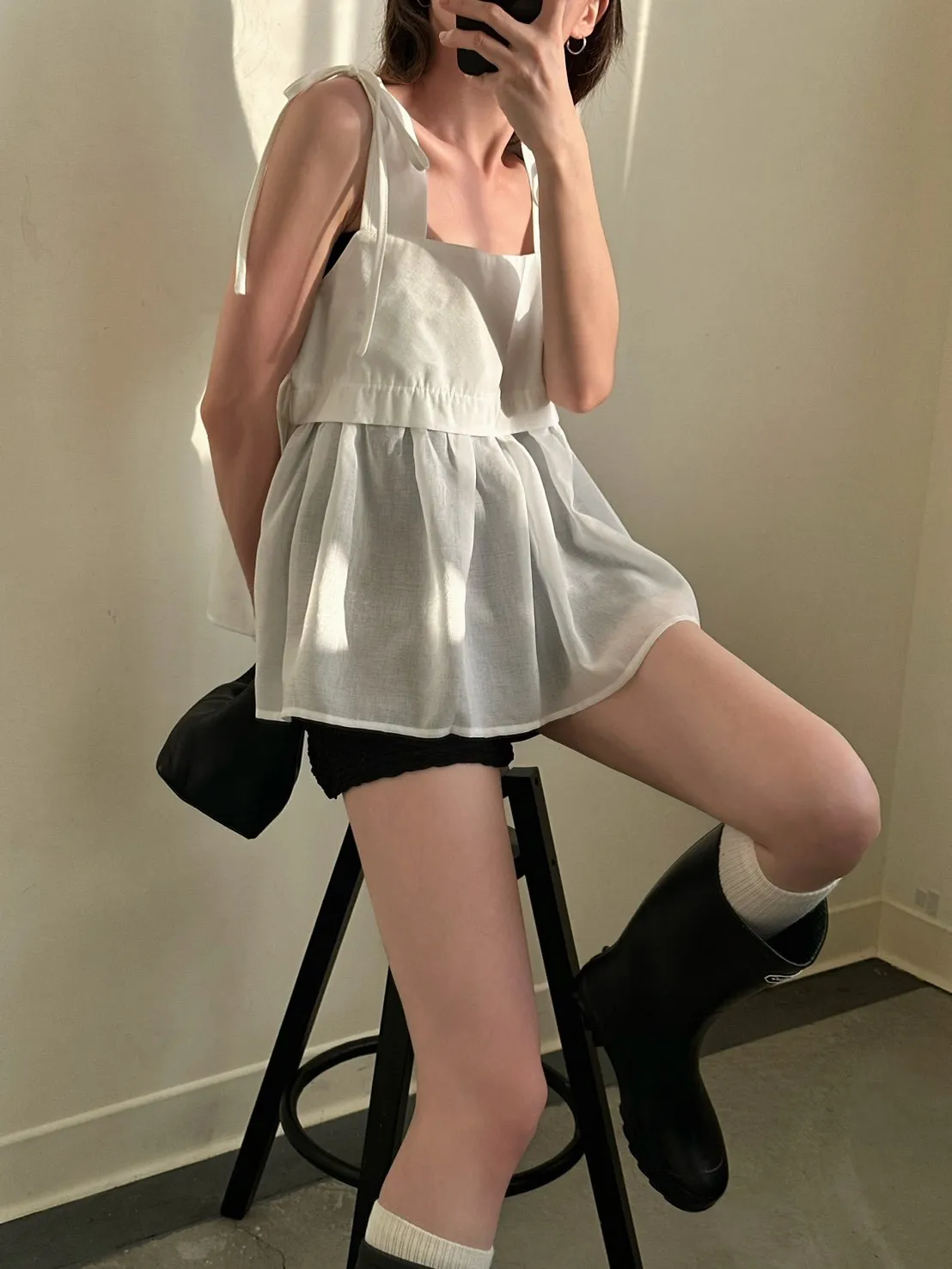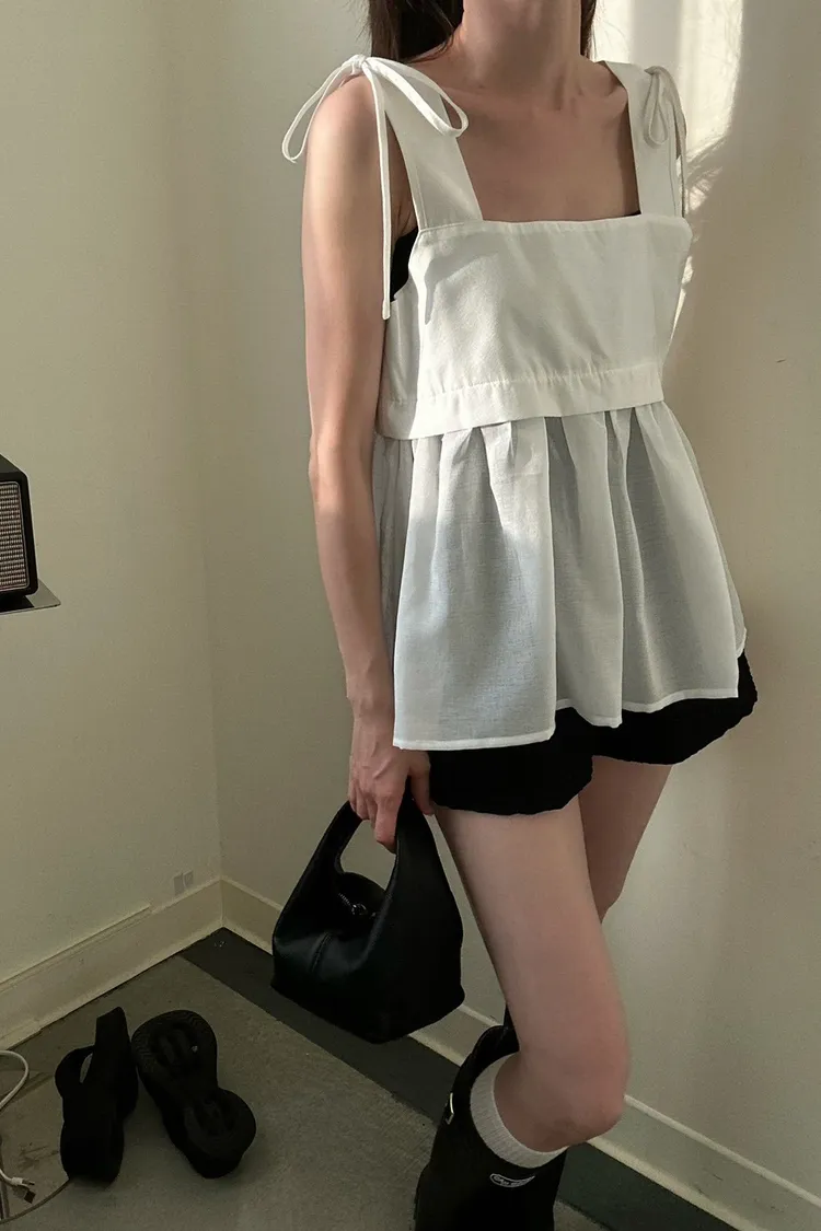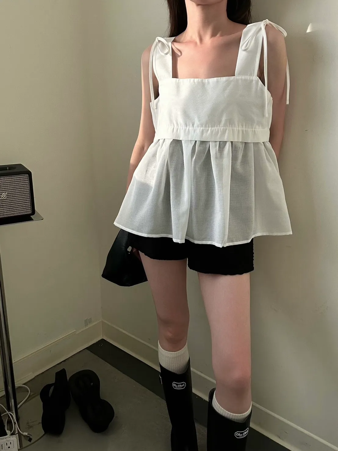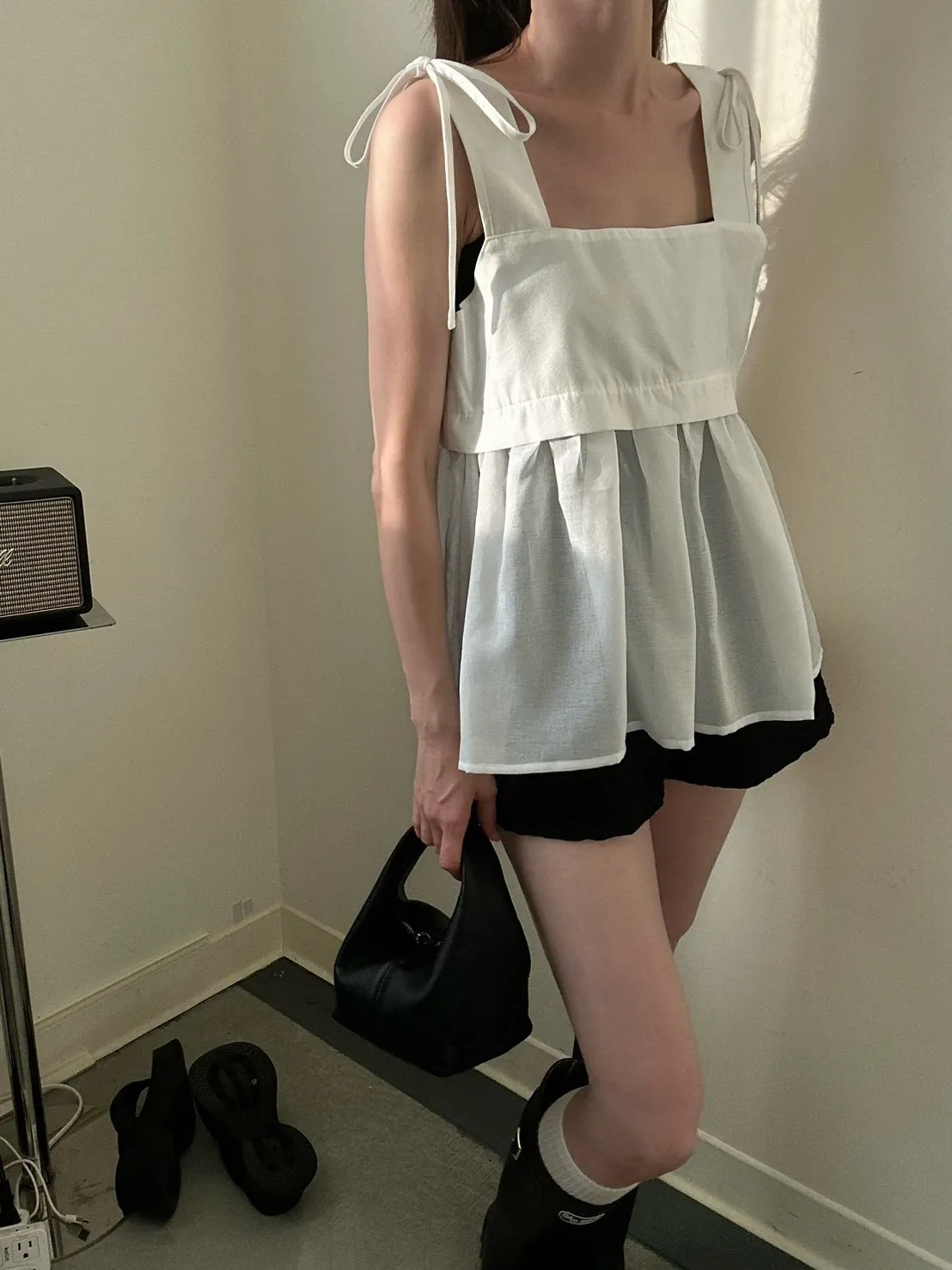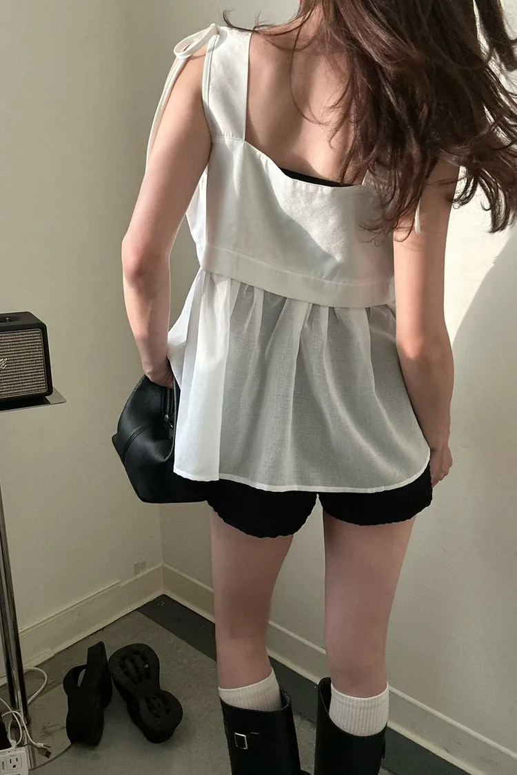 KOREA 白色 可愛到尖叫!寬肩綁結下傘背心