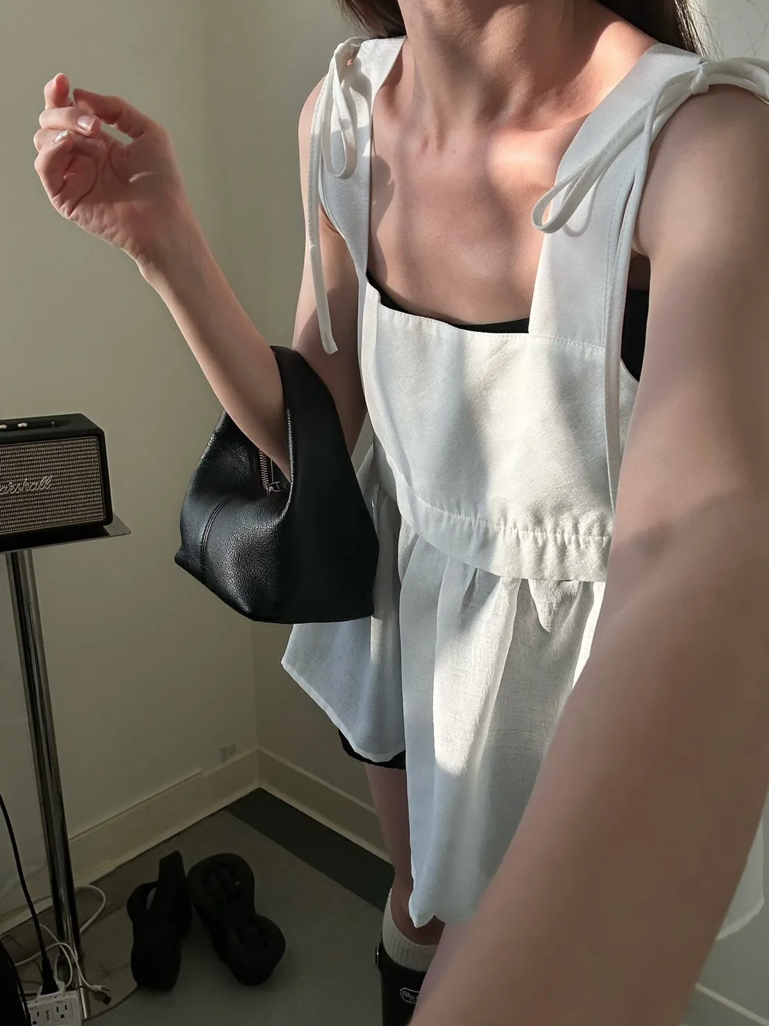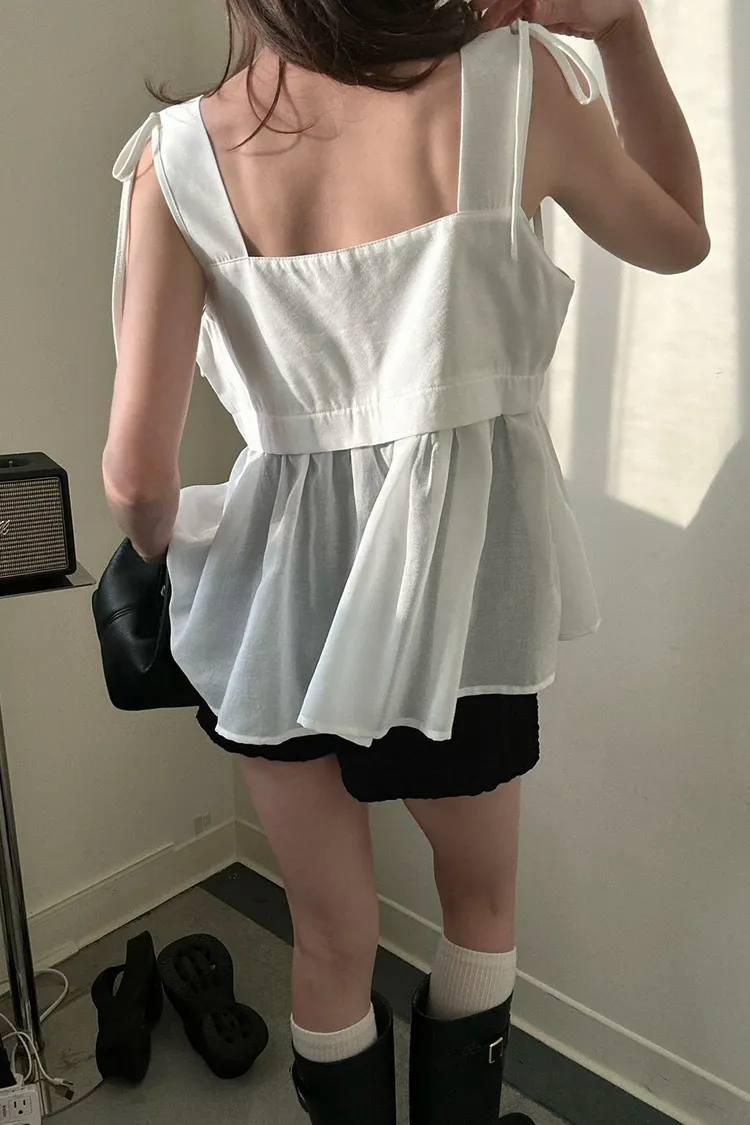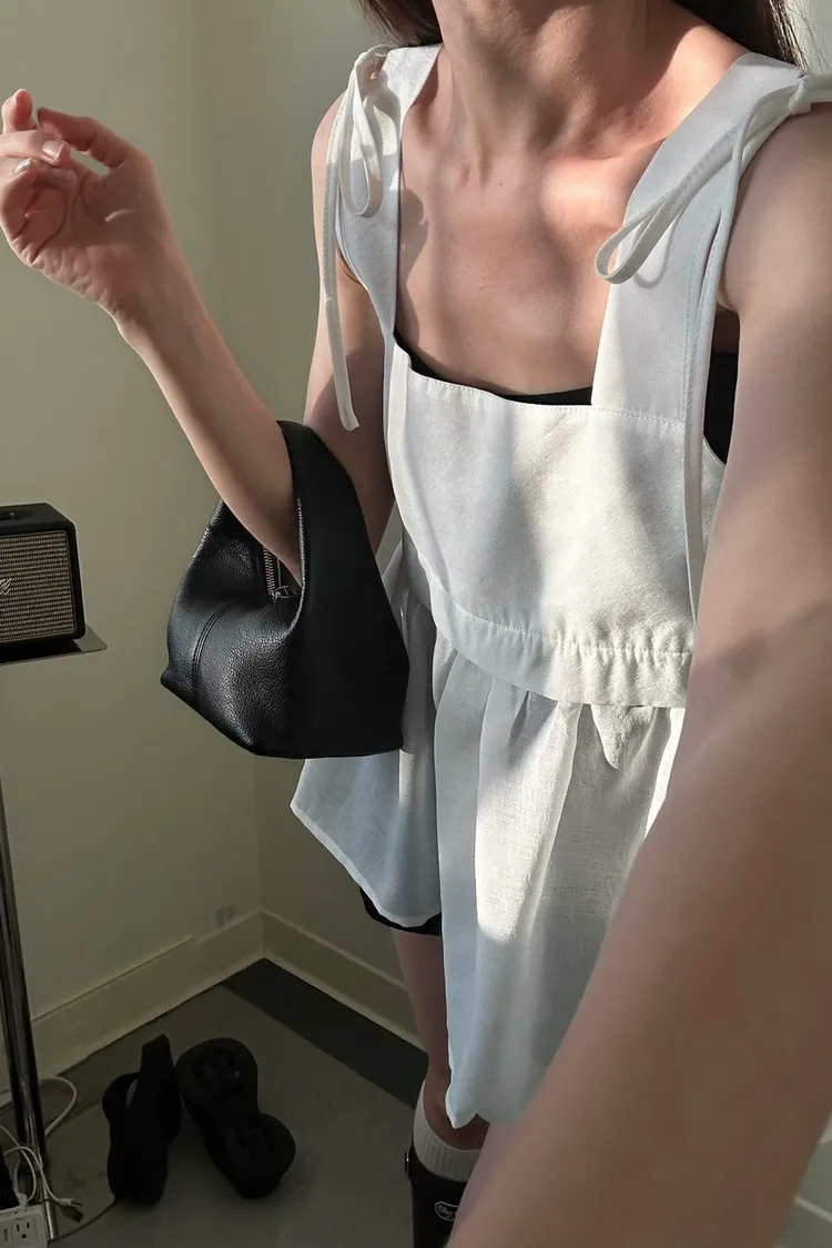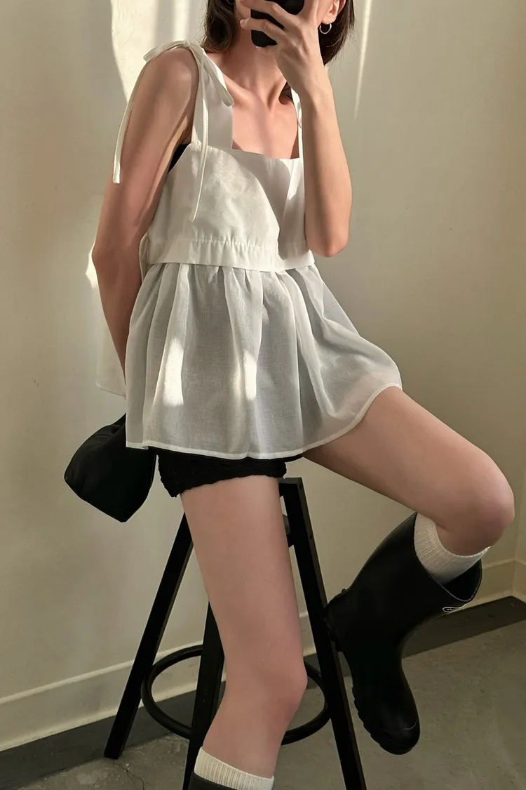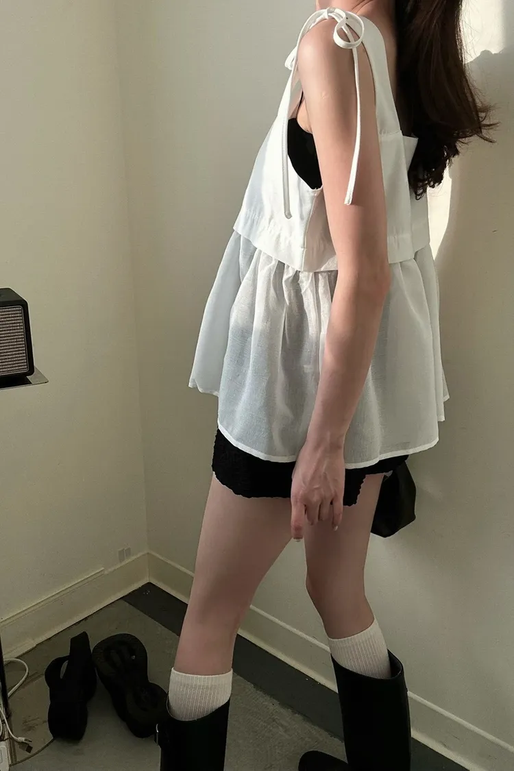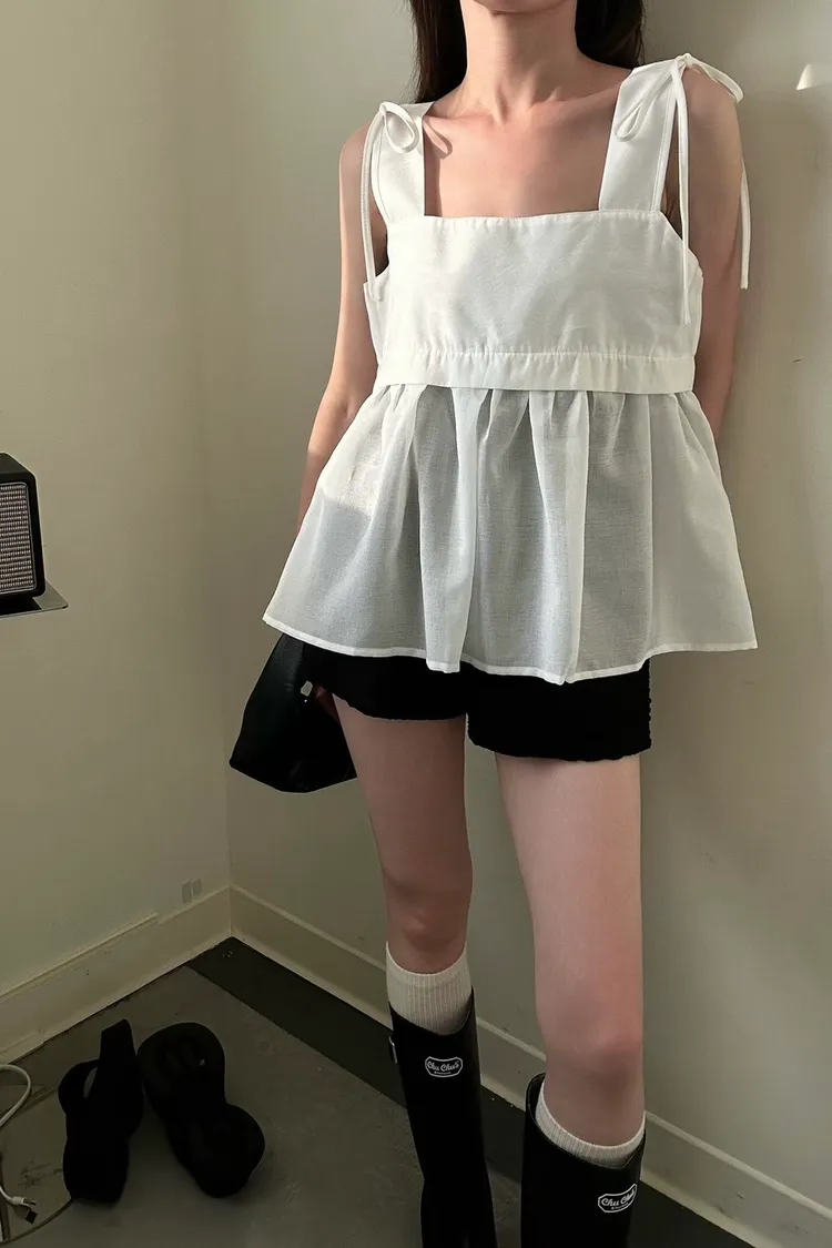 KOREA 白色 可愛到尖叫!寬肩綁結下傘背心