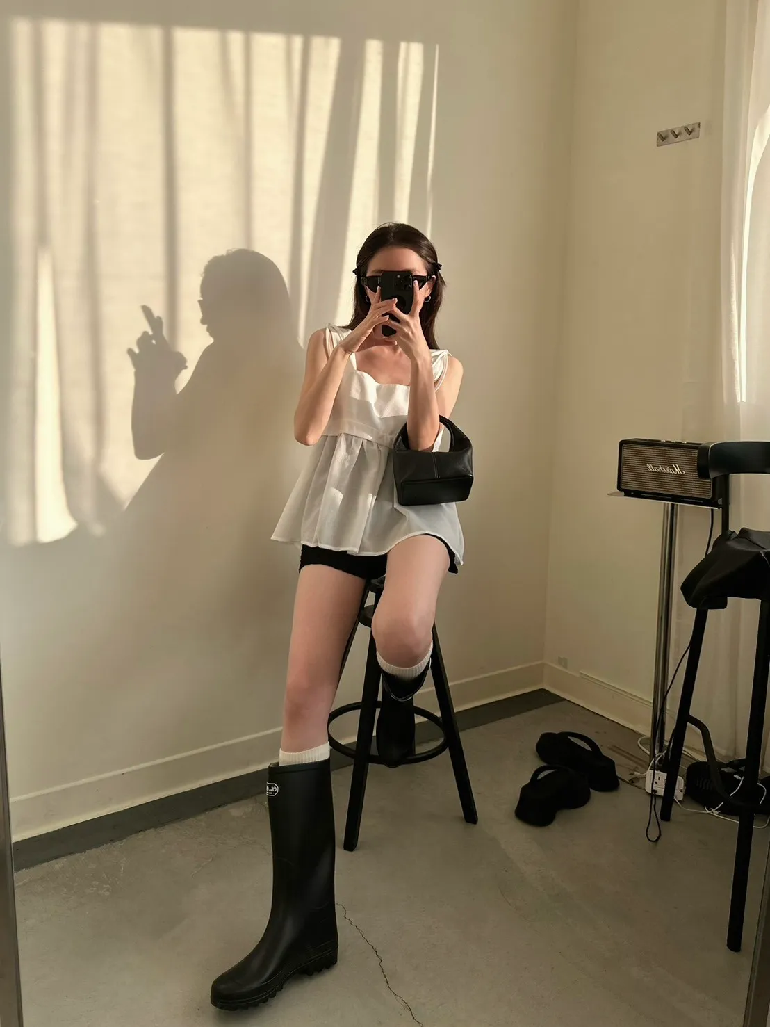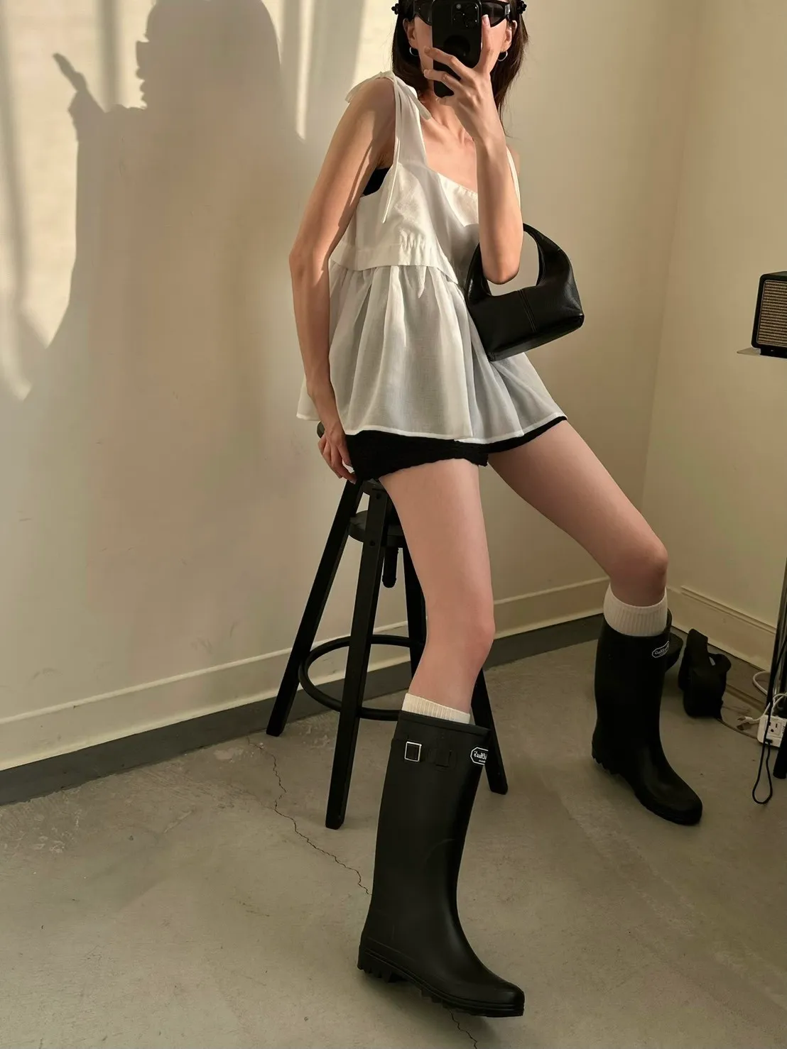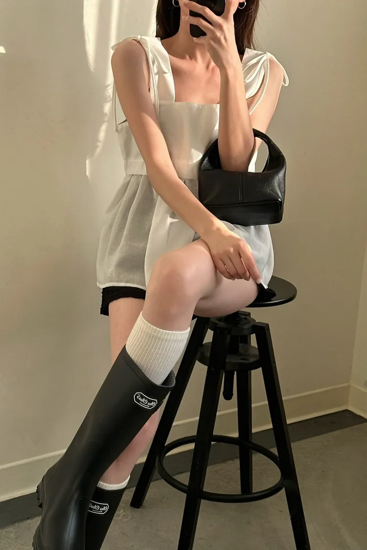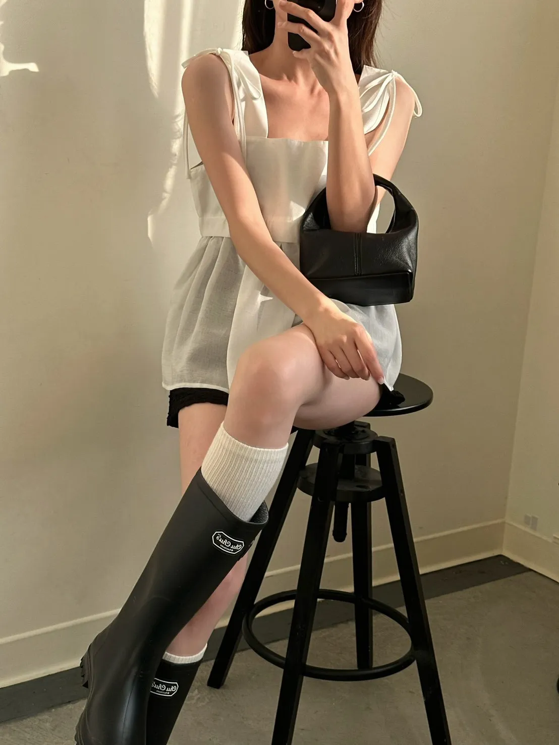KOREA 白色 可愛到尖叫!寬肩綁結下傘背心