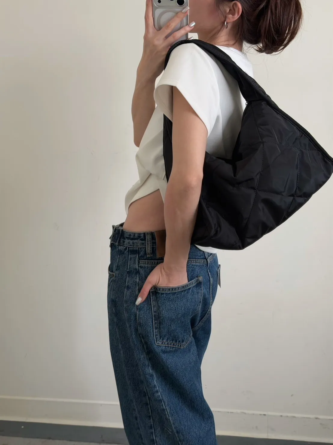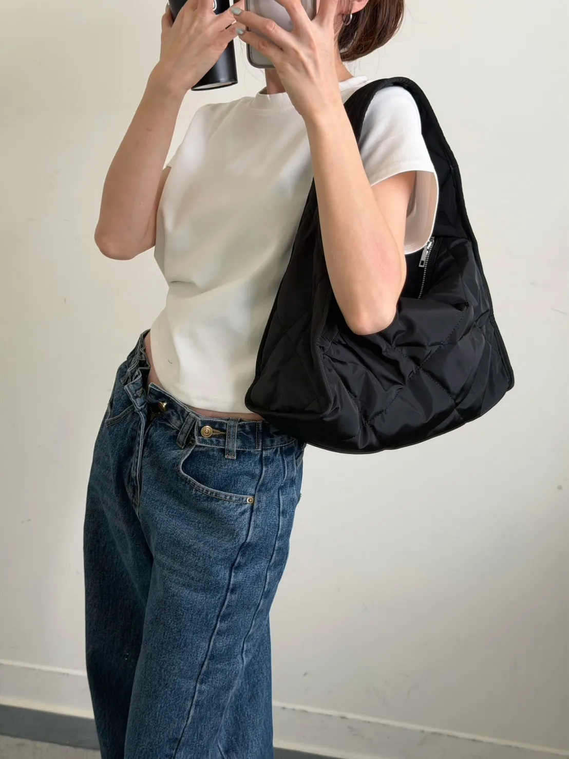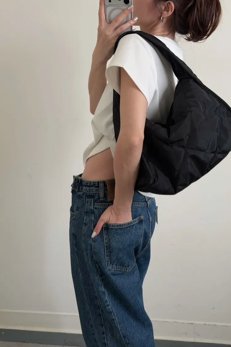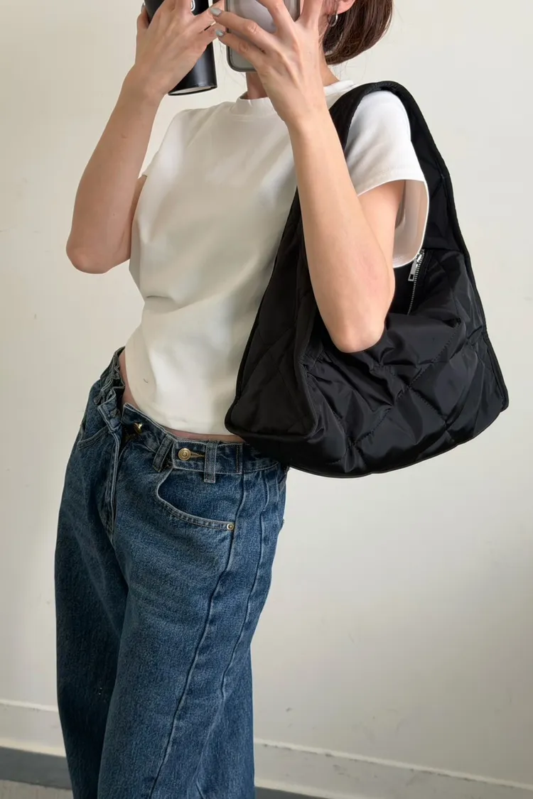 黑色 太帥了!寬單肩菱格紋包