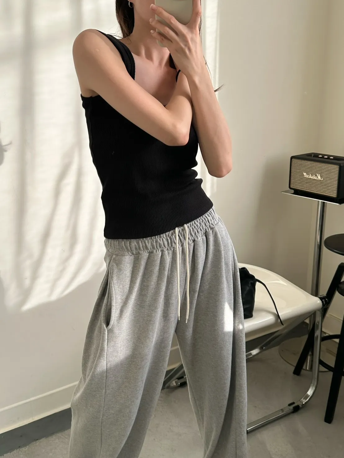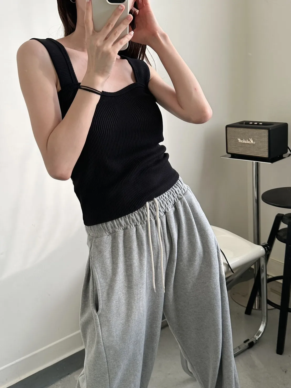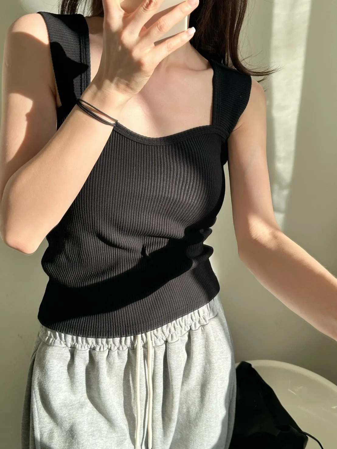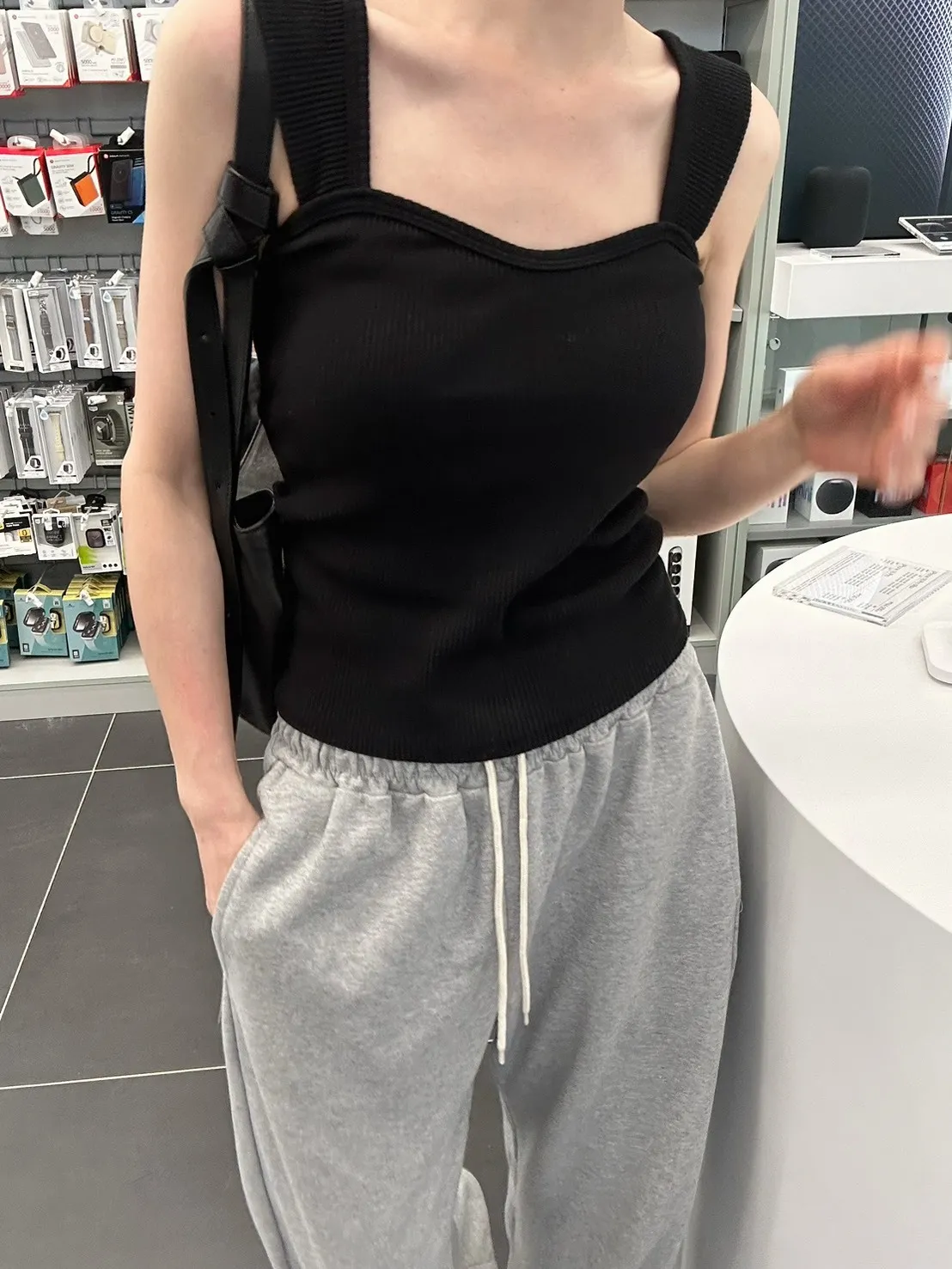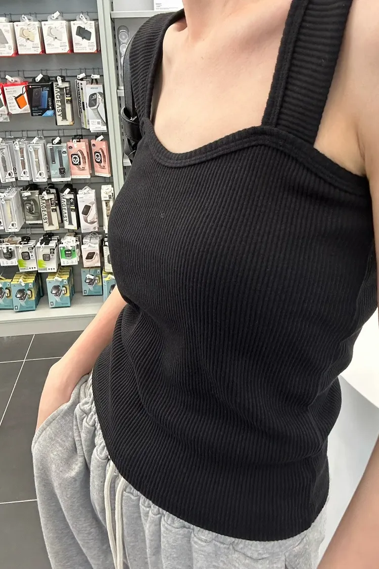 (現貨)黑色 極美自留!桃心領羅紋超彈背心