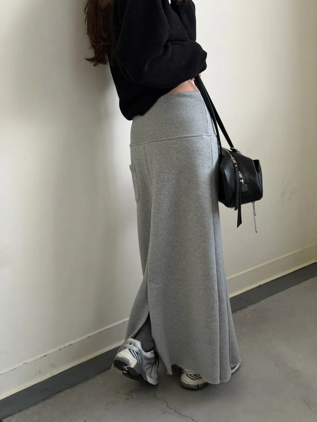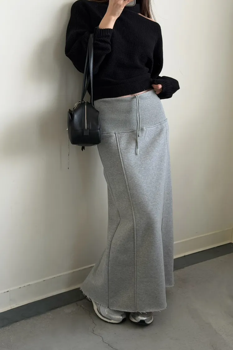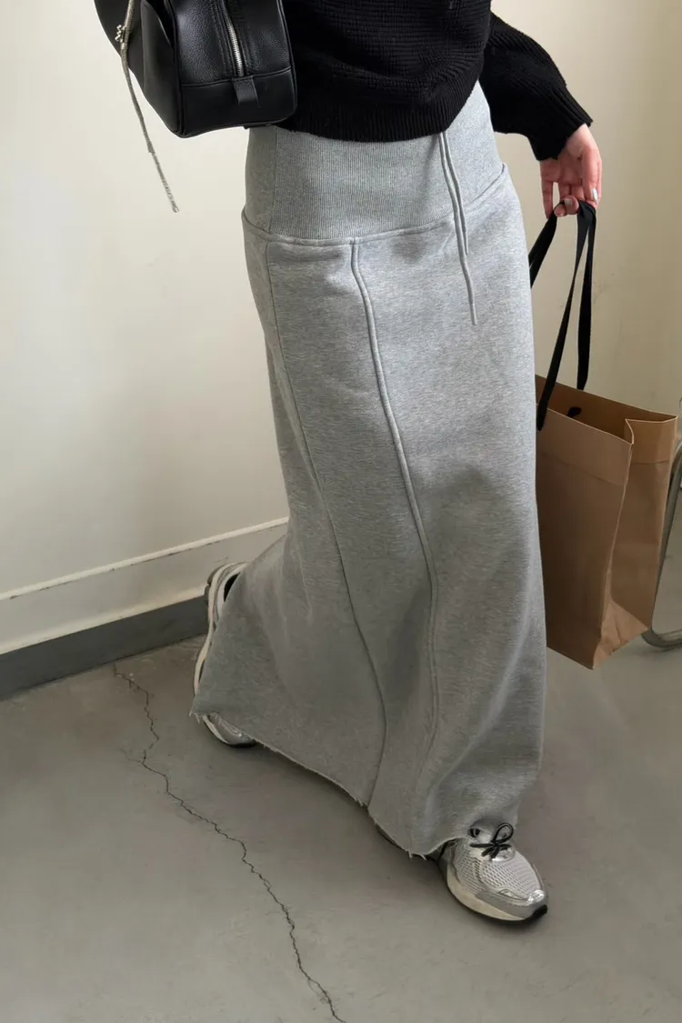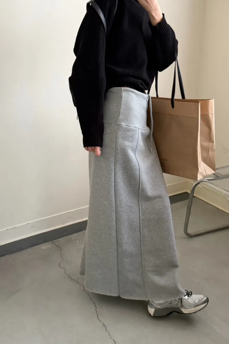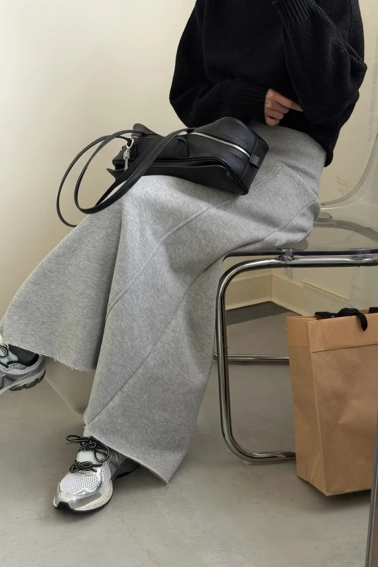 灰色 美到無極限!寬羅紋壓線後開岔裙