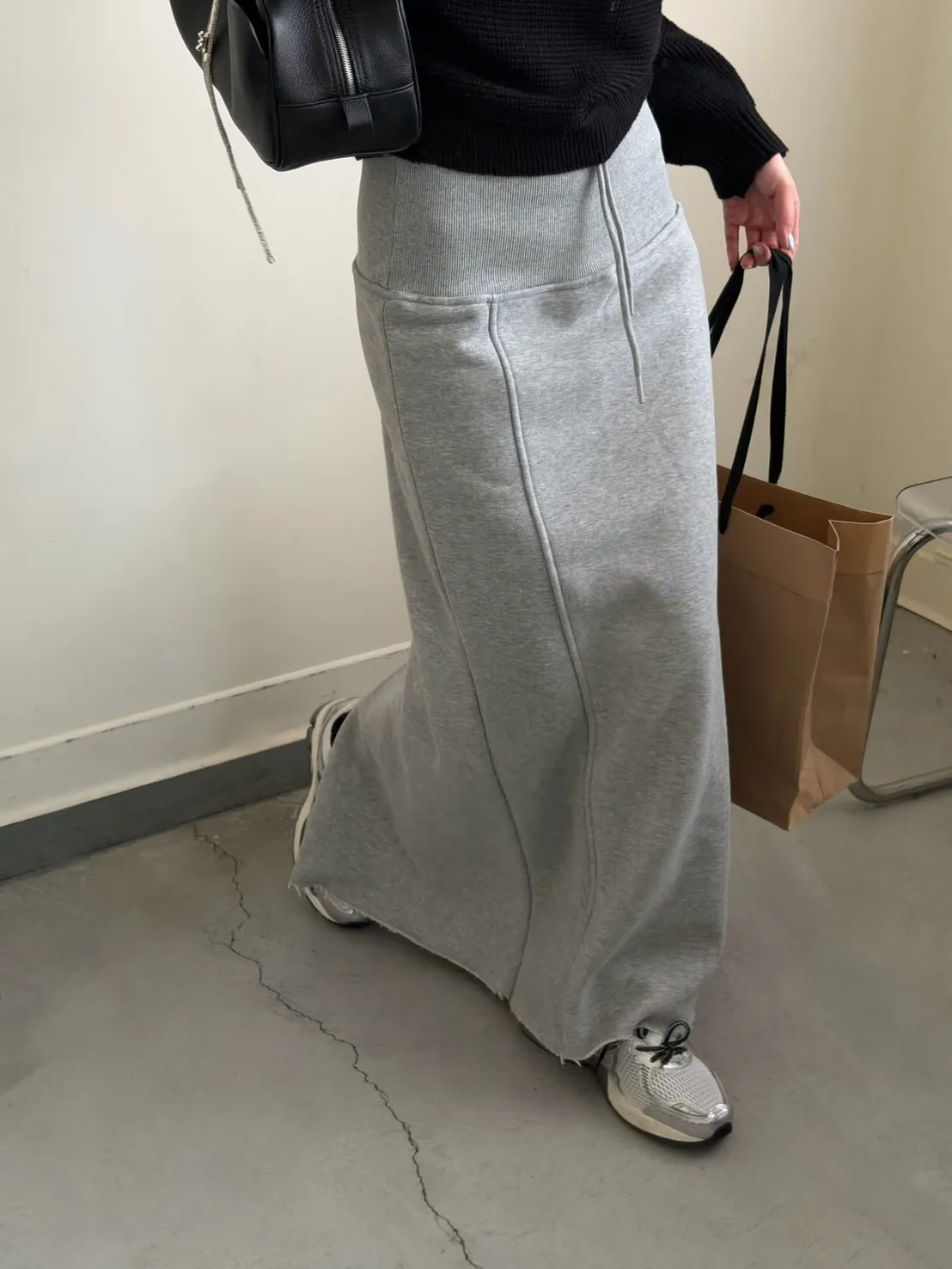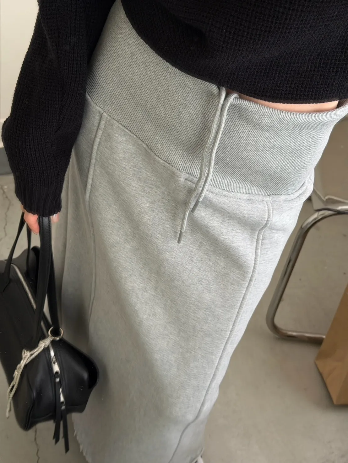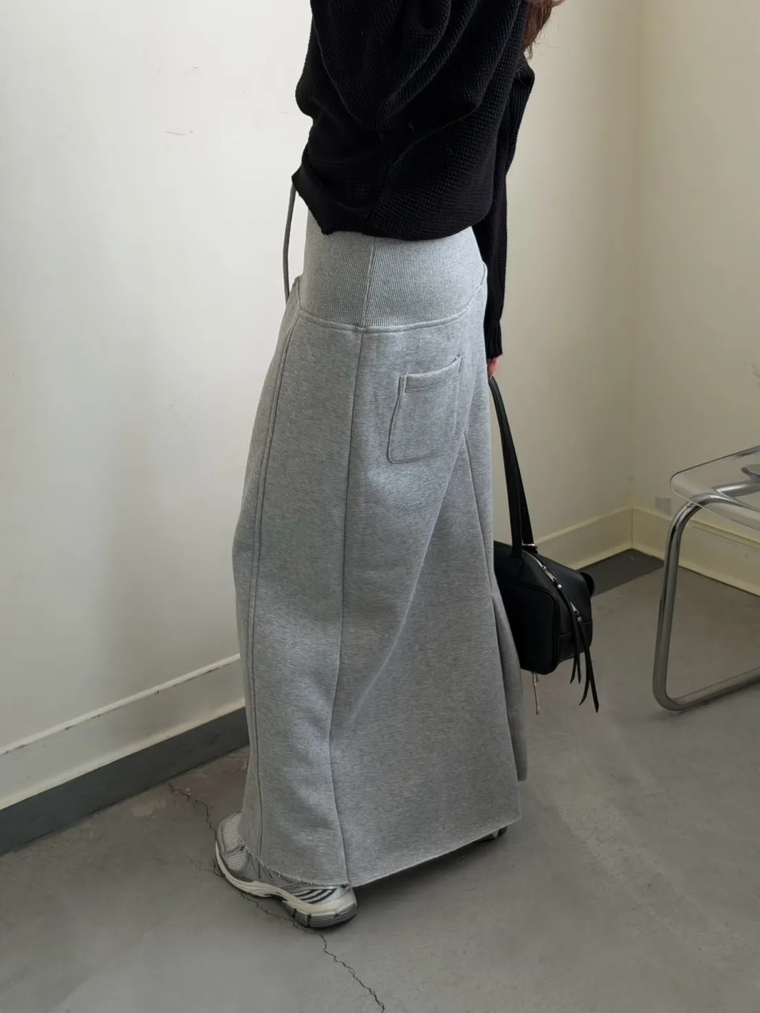 灰色 美到無極限!寬羅紋壓線後開岔裙