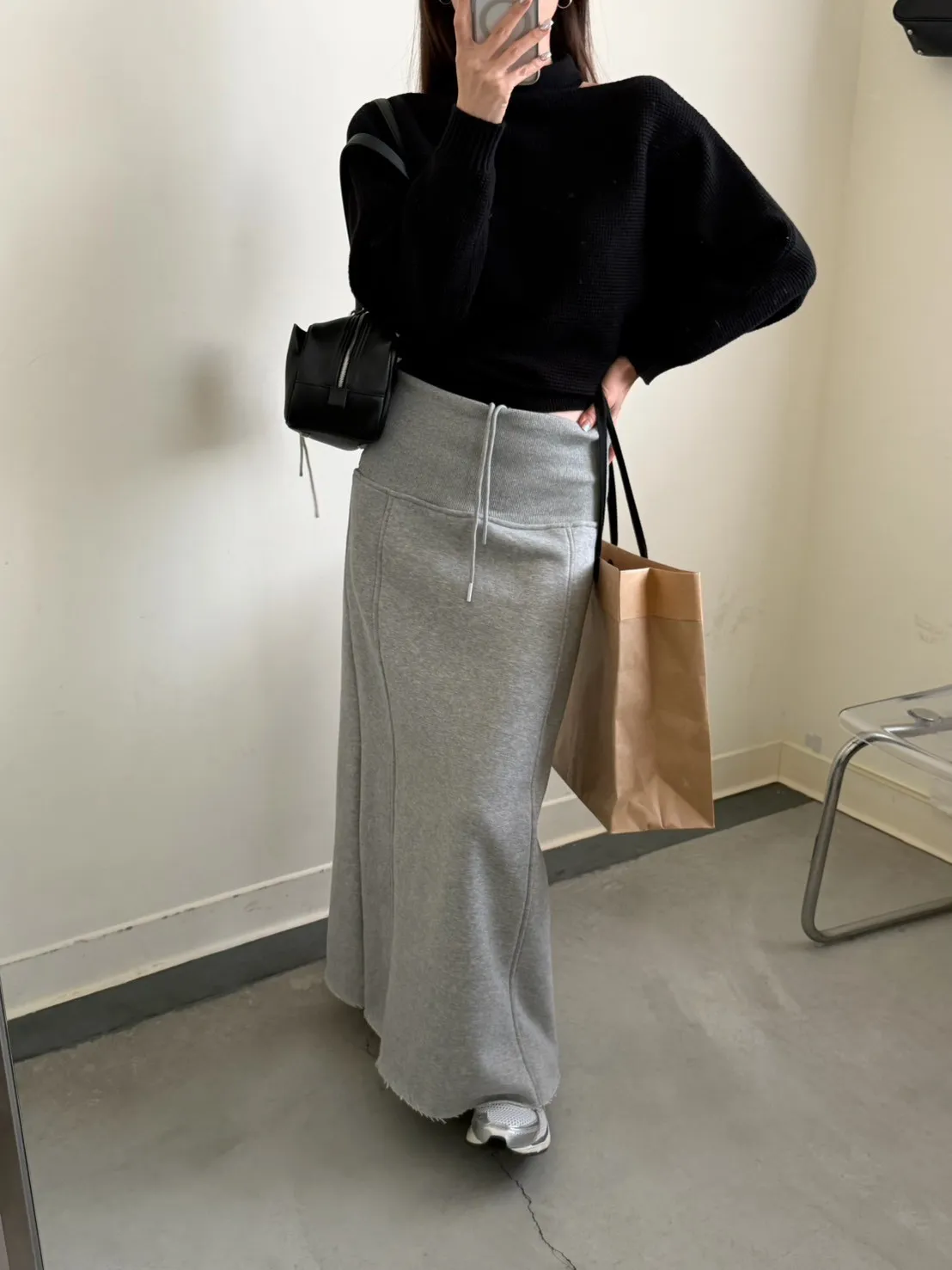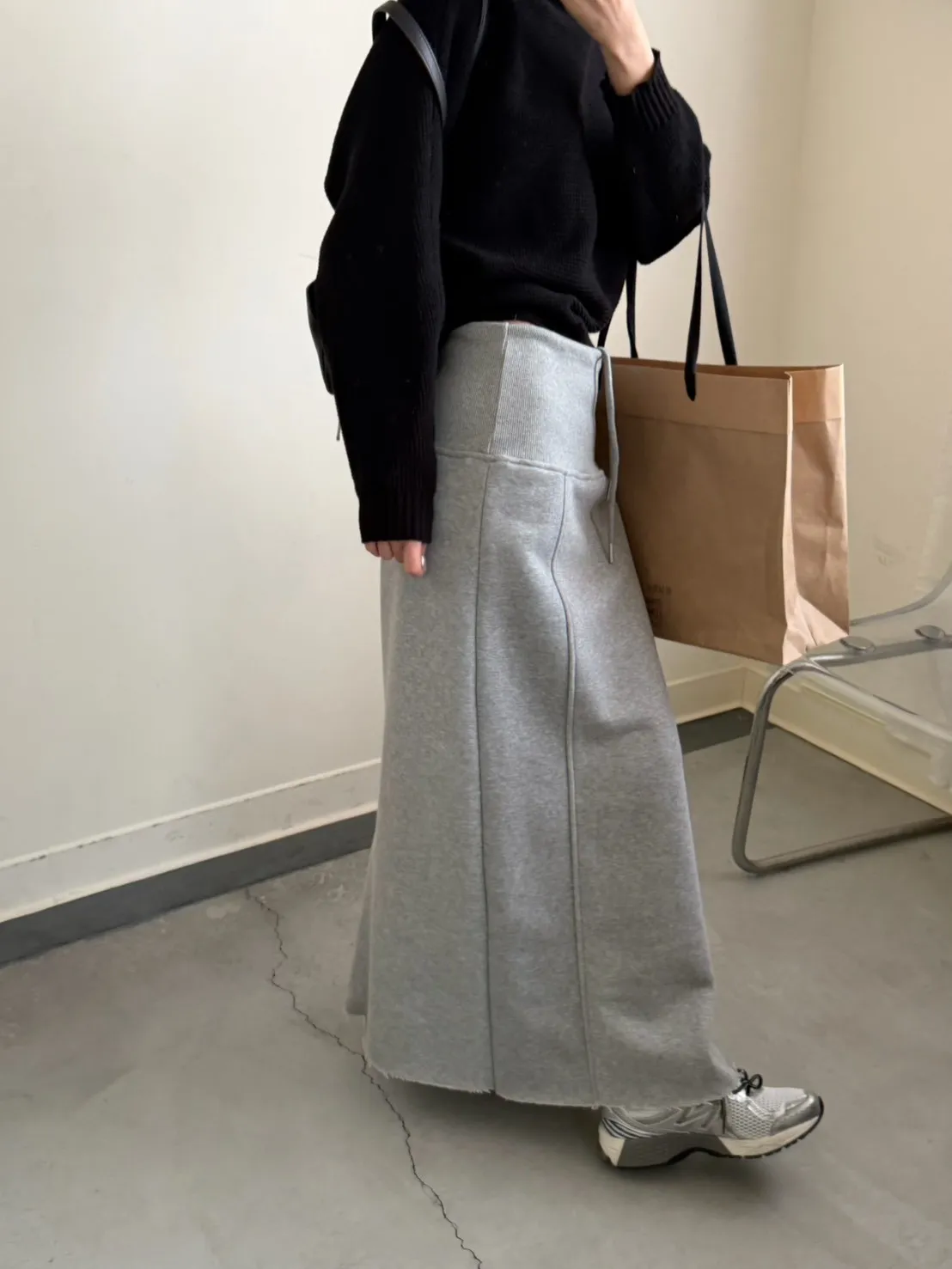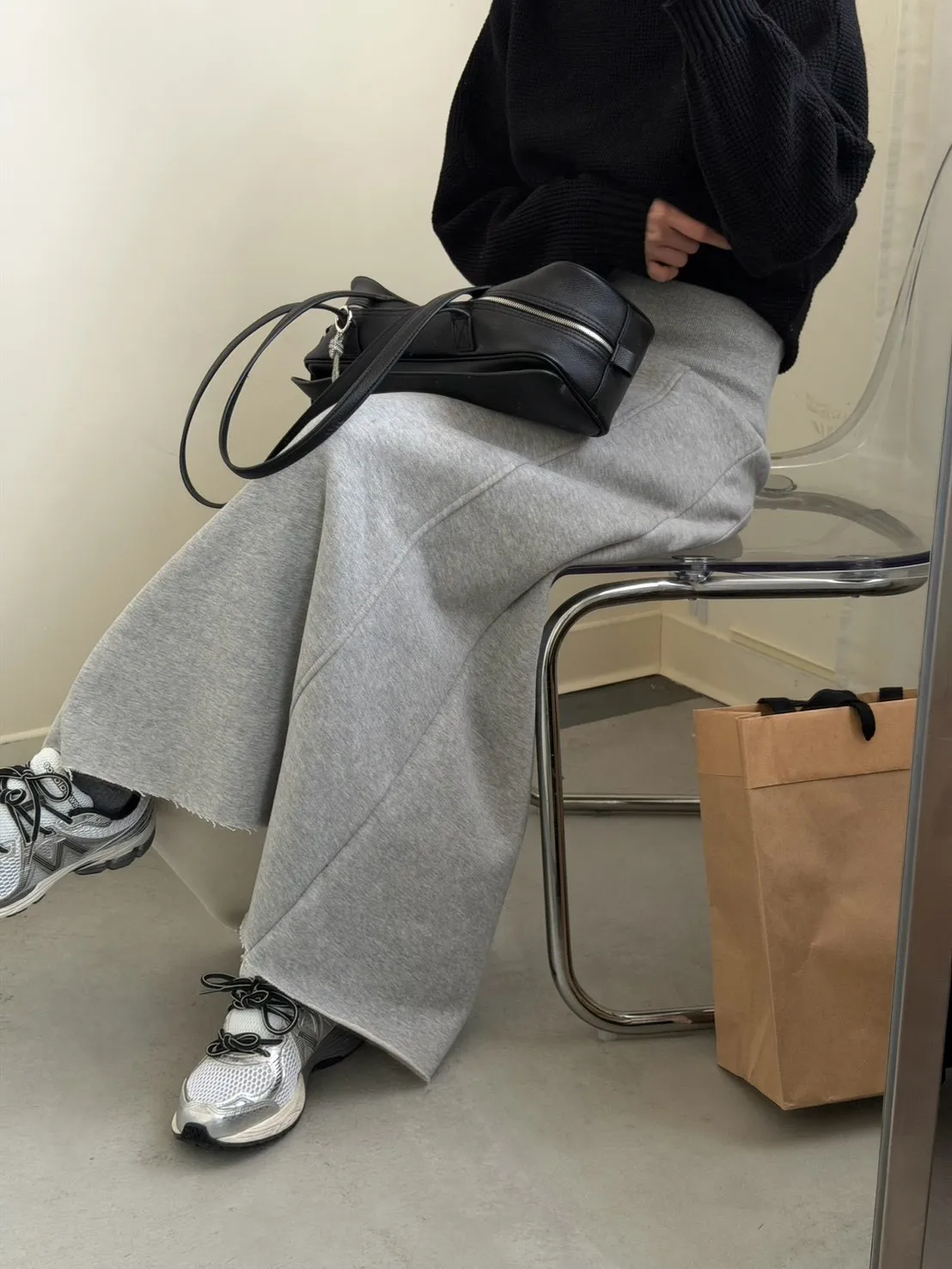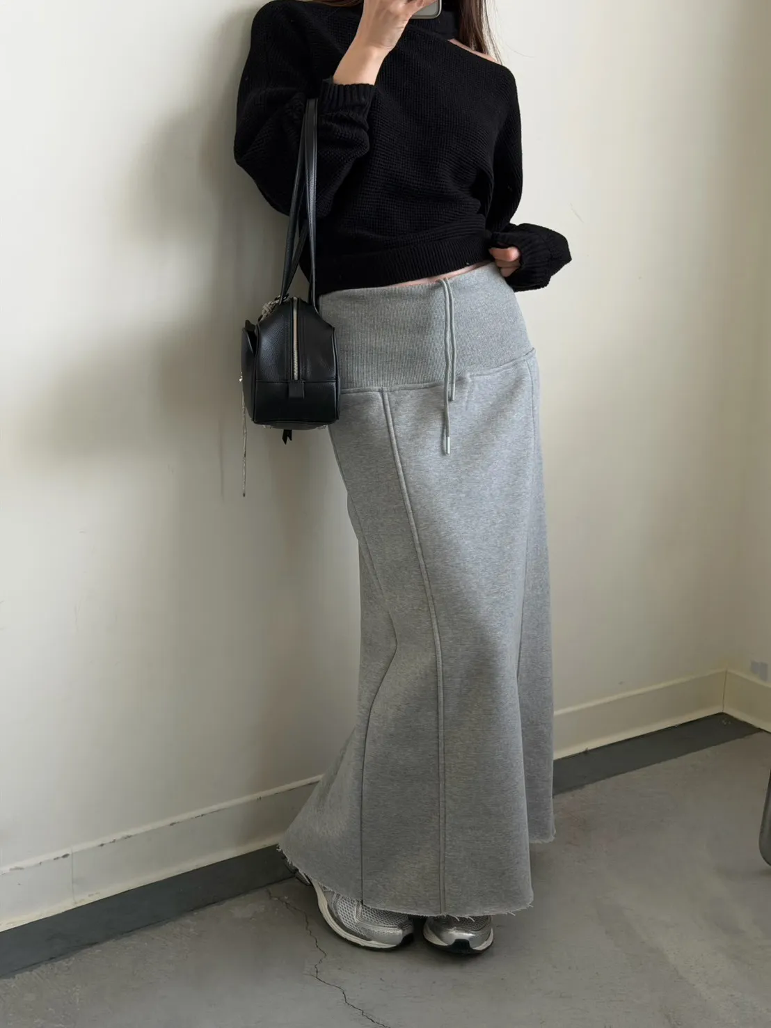 灰色 美到無極限!寬羅紋壓線後開岔裙