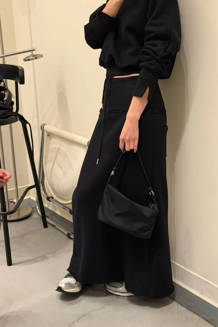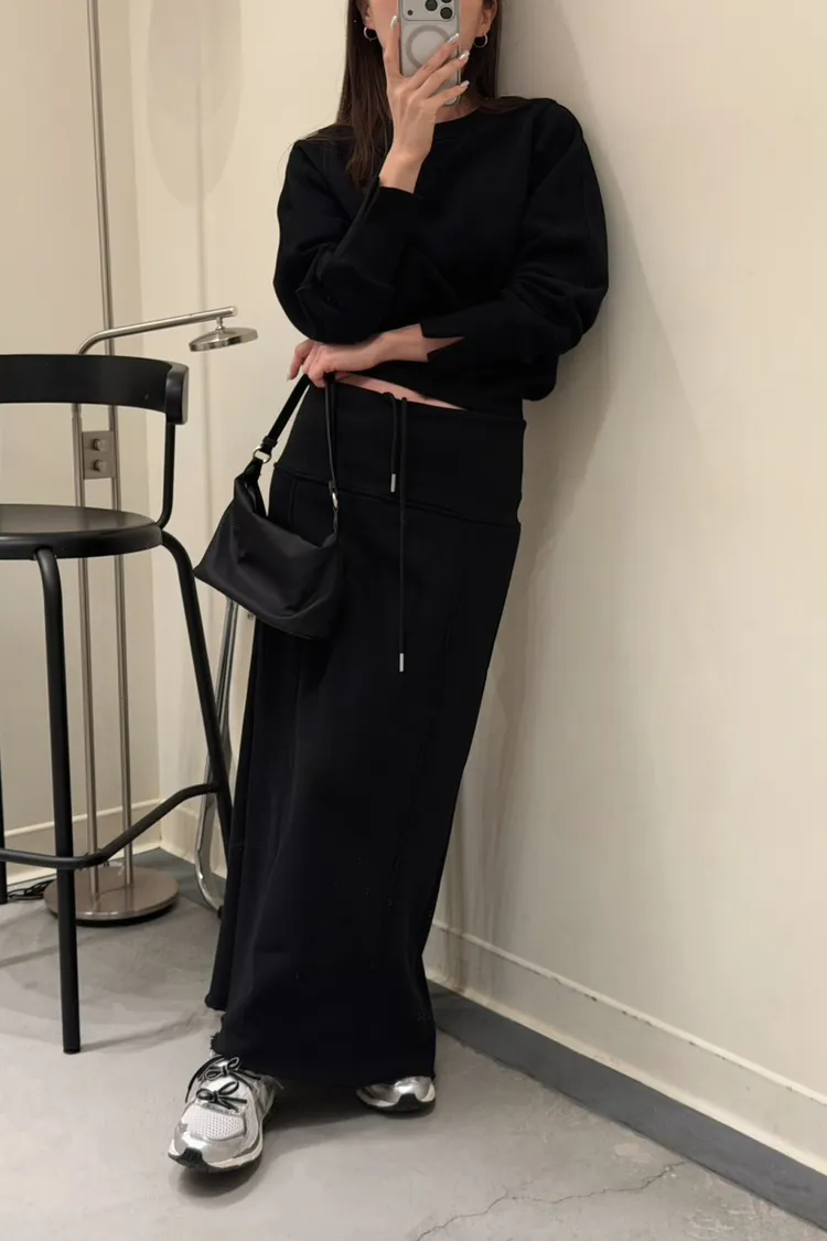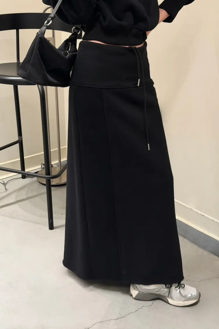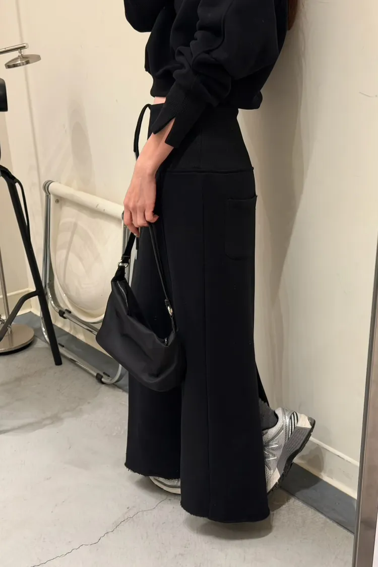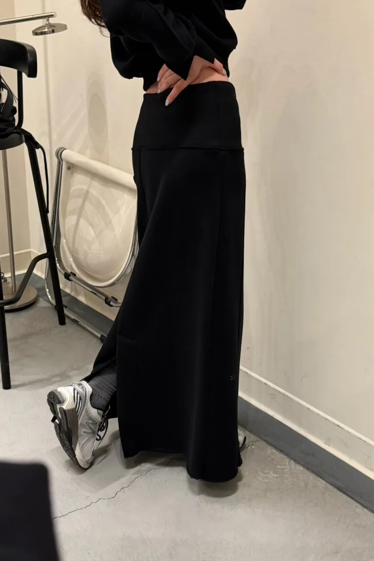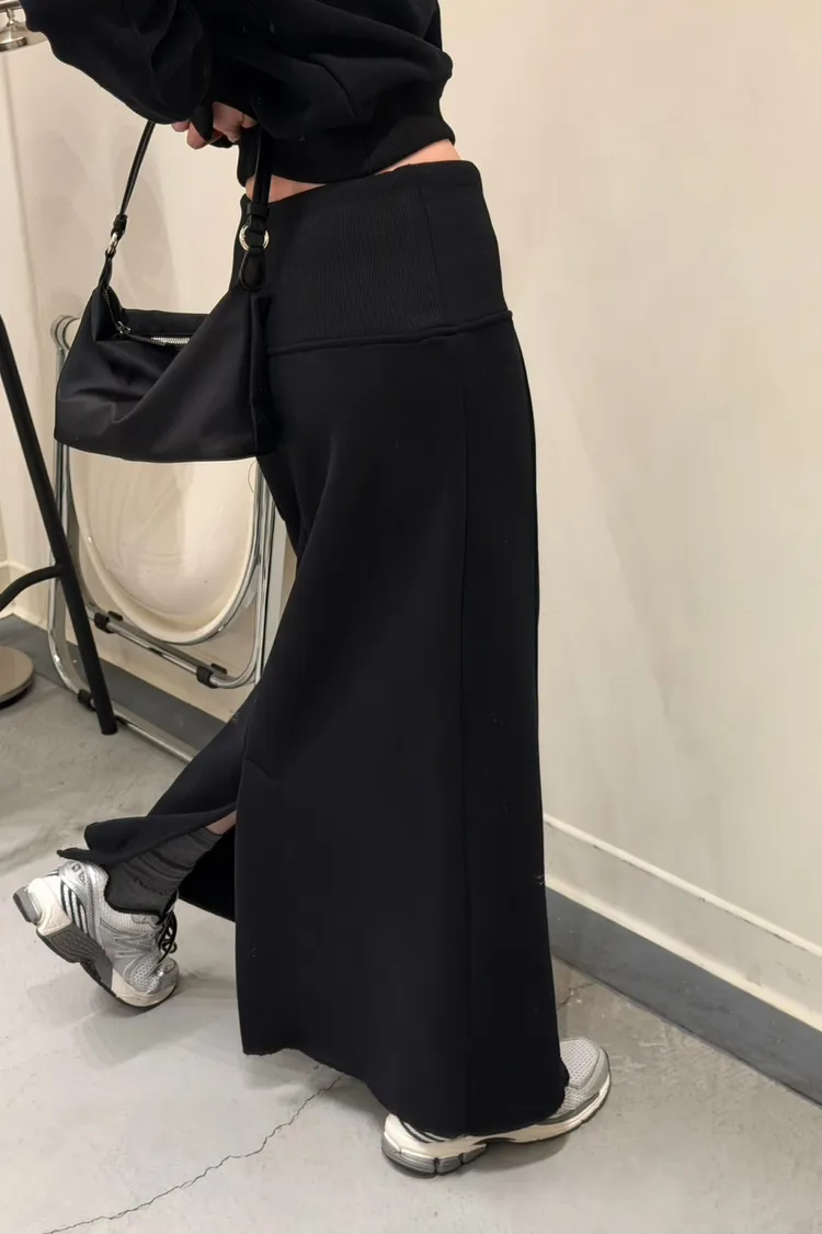 黑色 美到無極限!寬羅紋壓線後開岔裙(內刷絨)