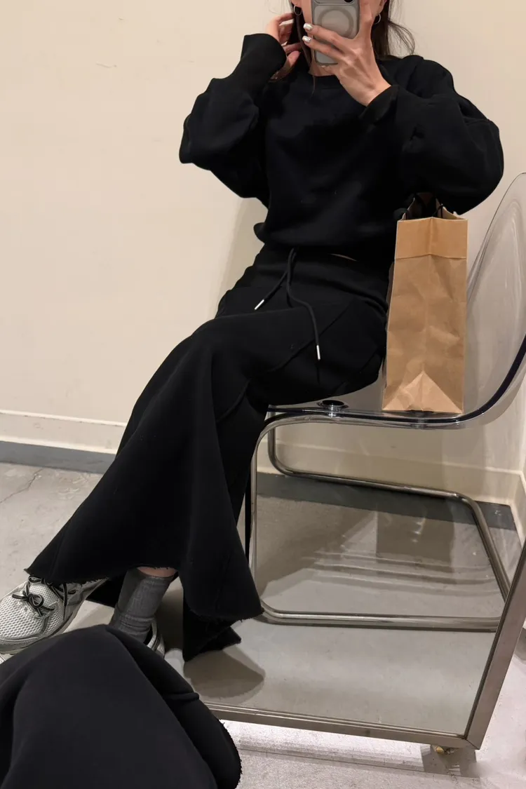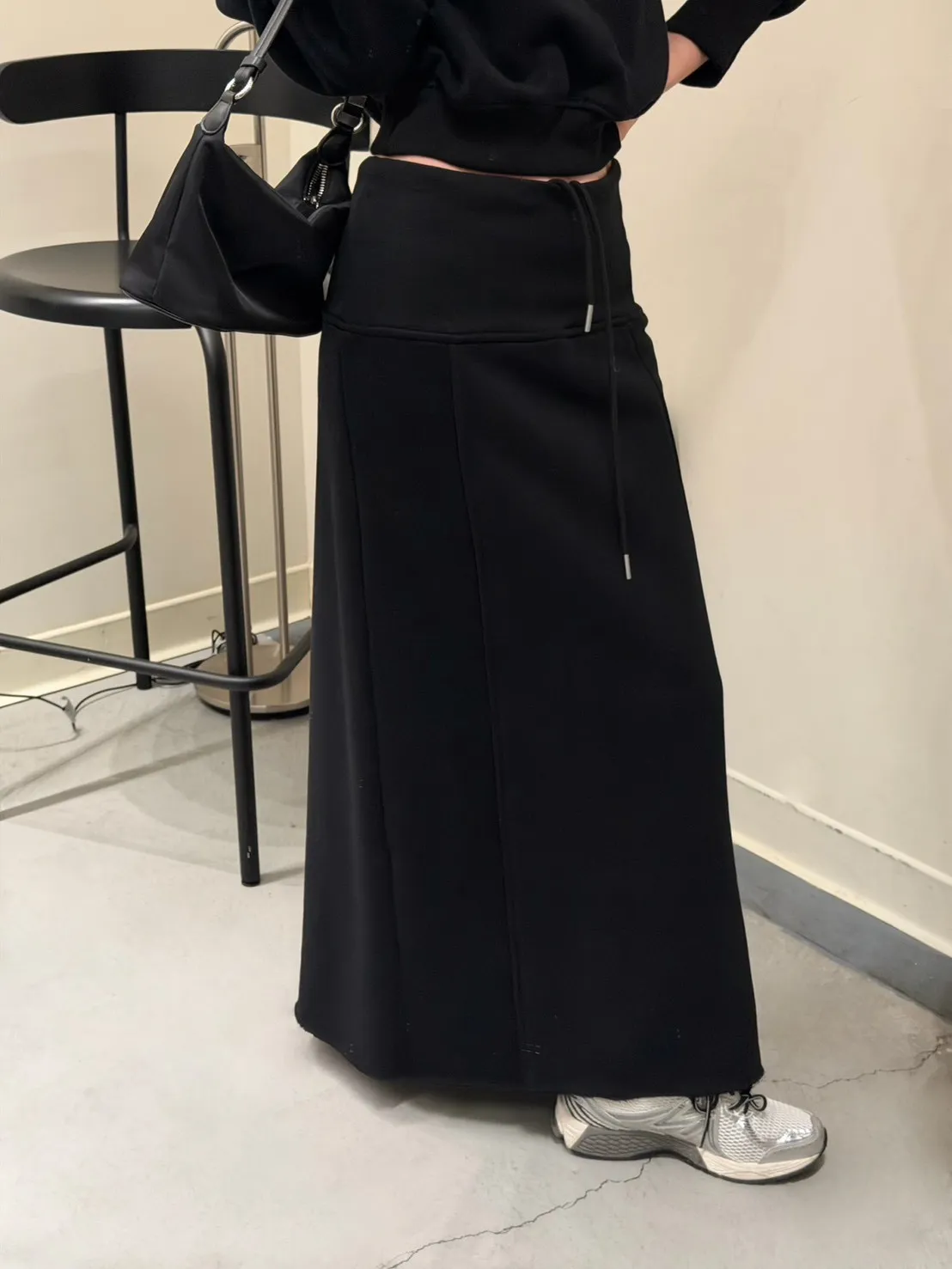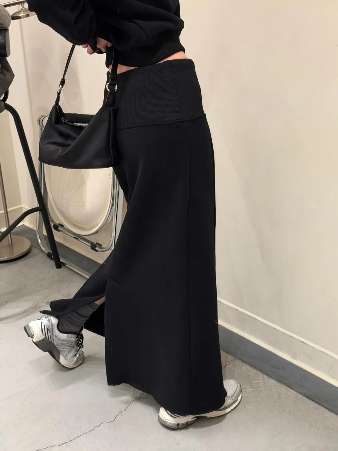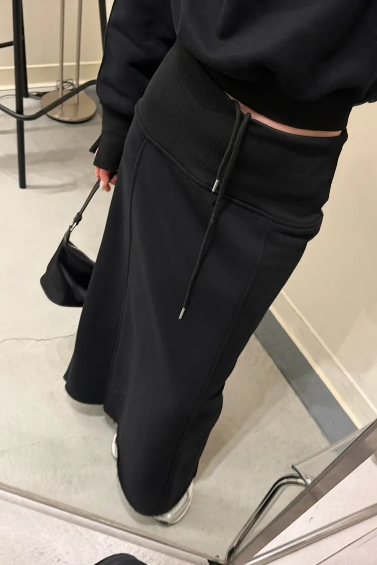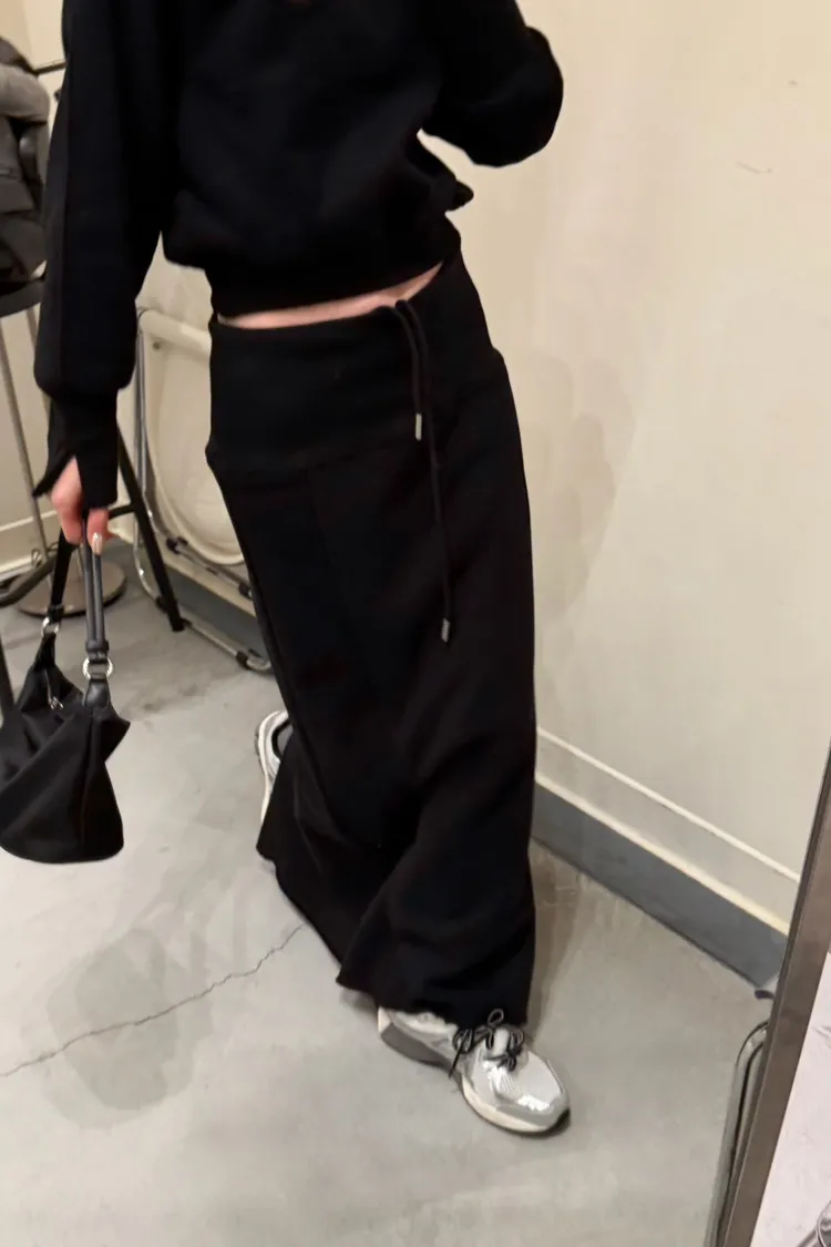 黑色 美到無極限!寬羅紋壓線後開岔裙(內刷絨)