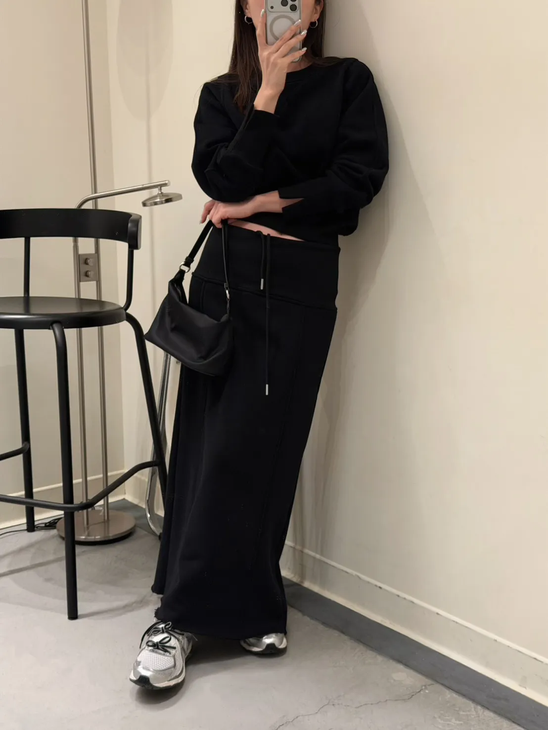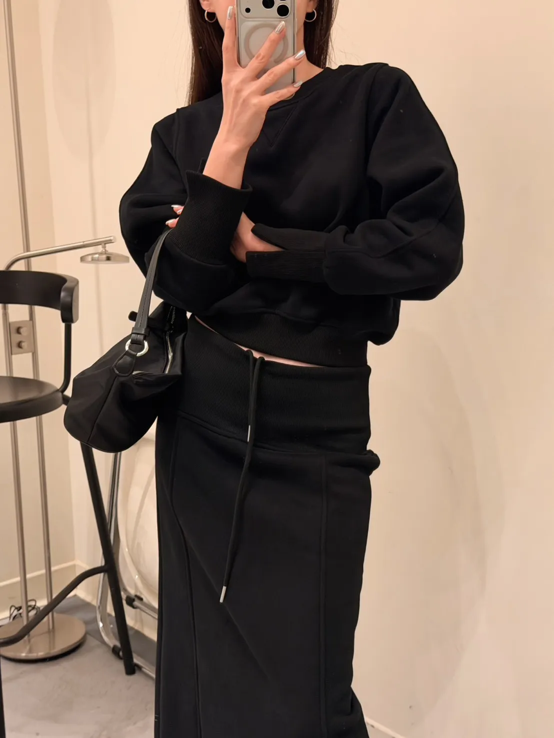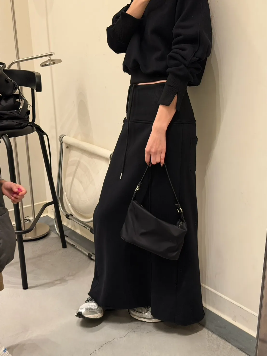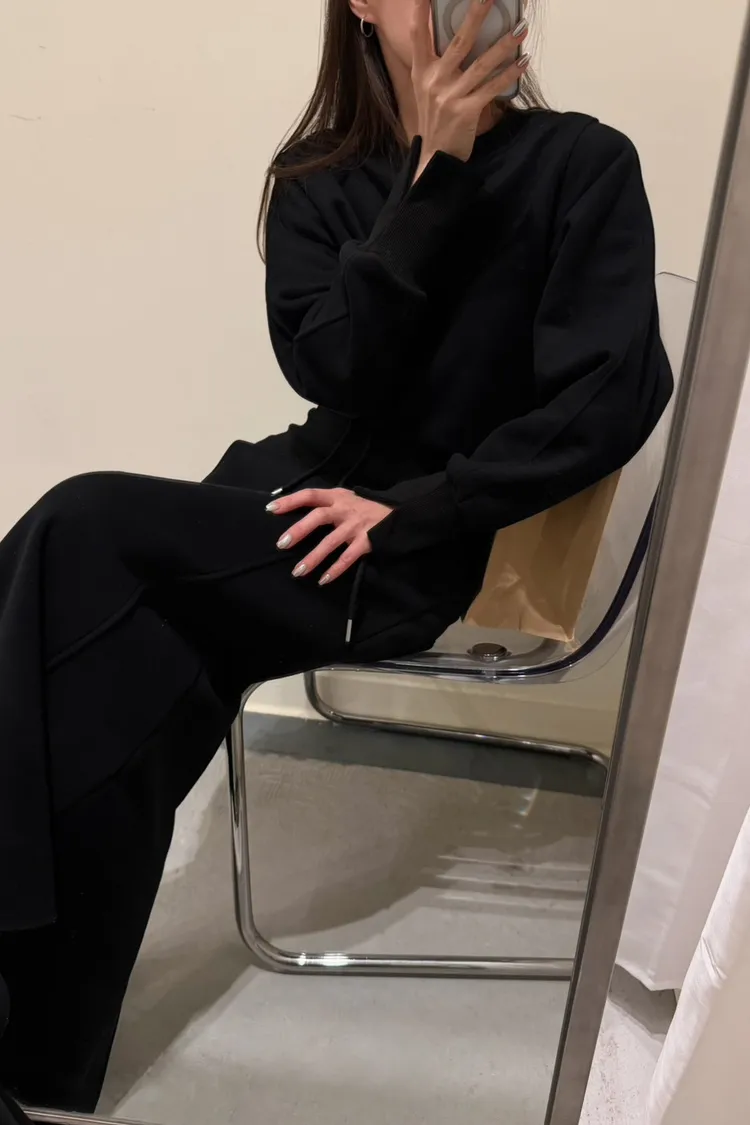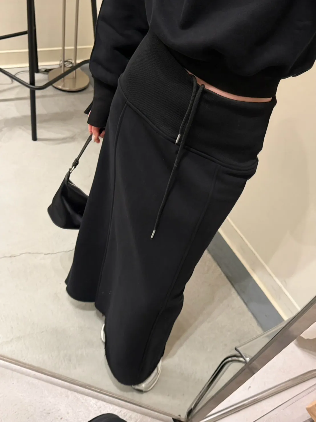 黑色 美到無極限!寬羅紋壓線後開岔裙(內刷絨)