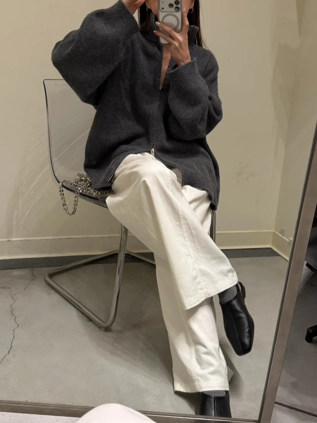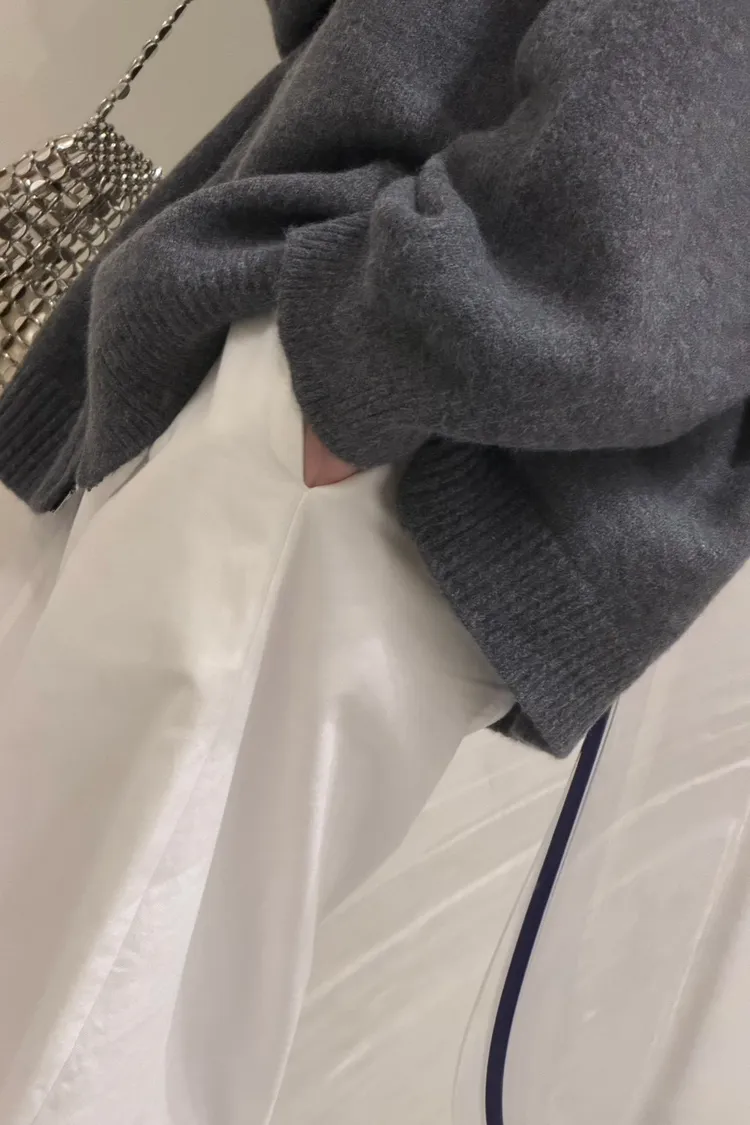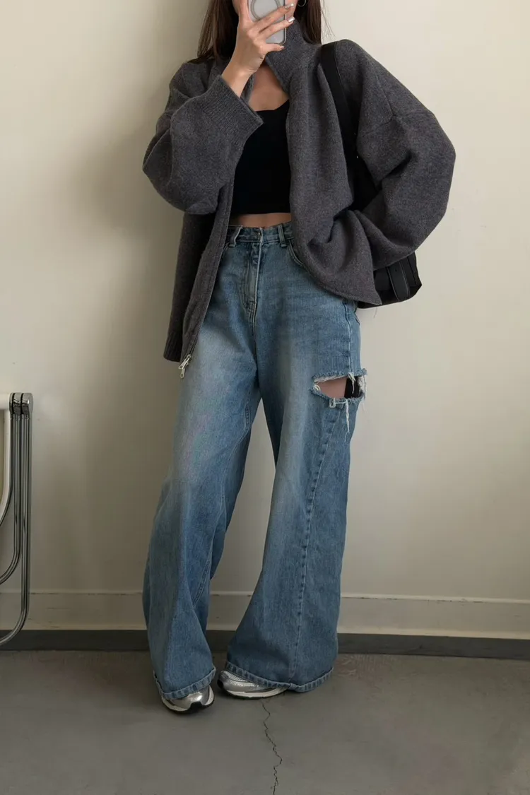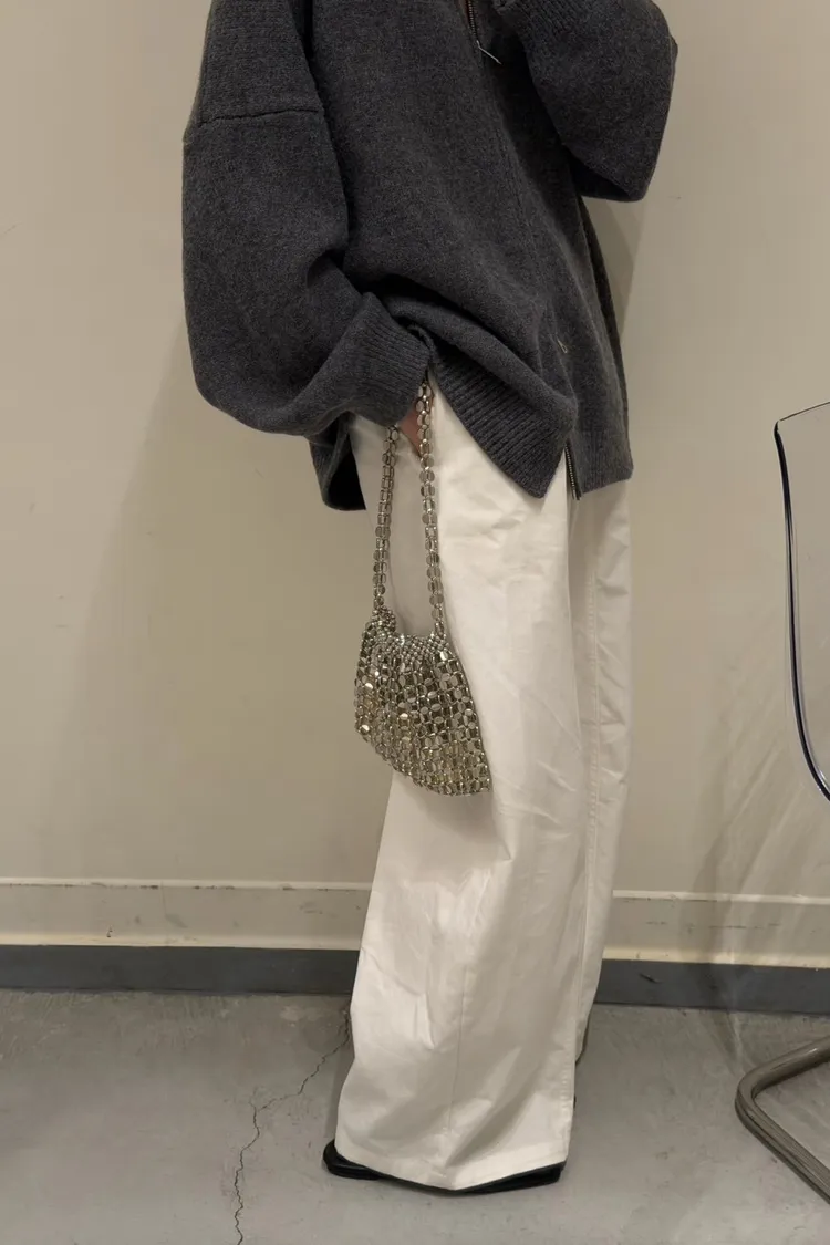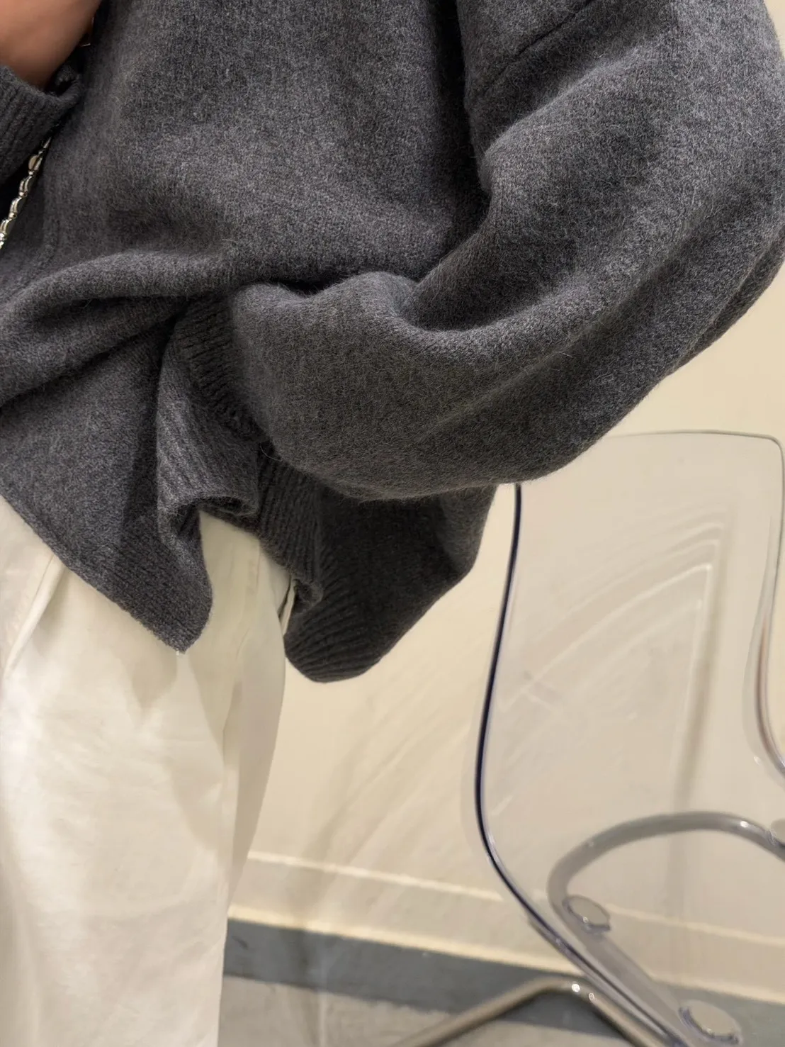 花灰色 極美!雙向拉鍊高磅針織外套