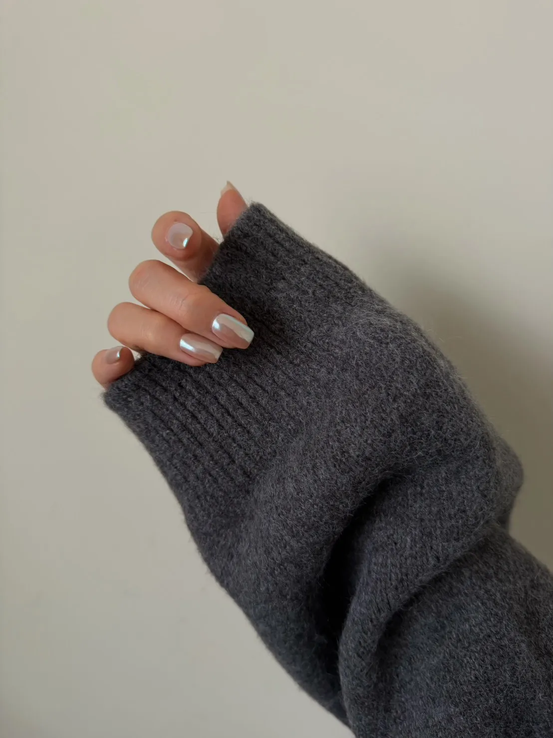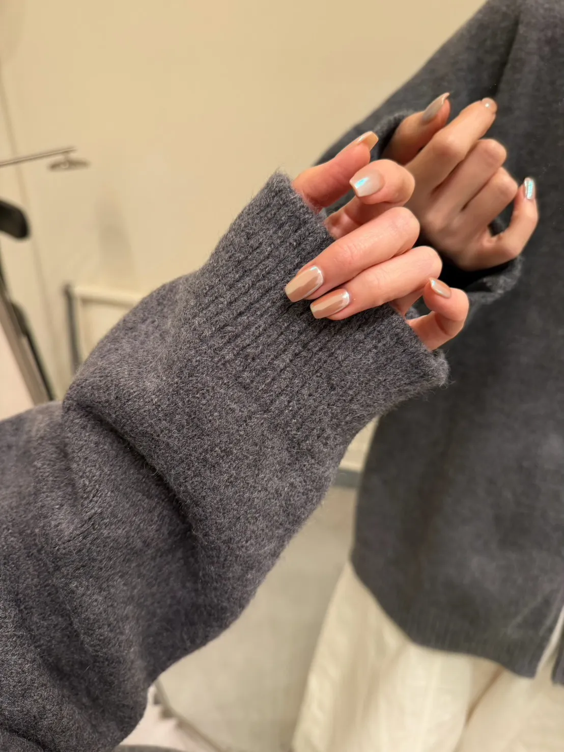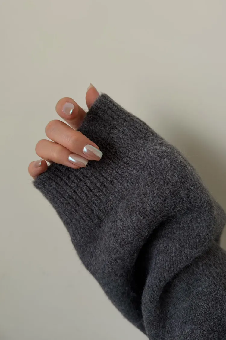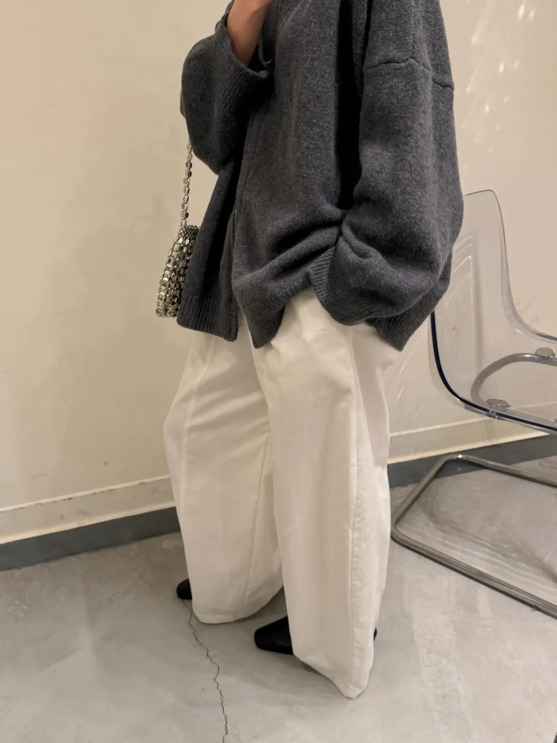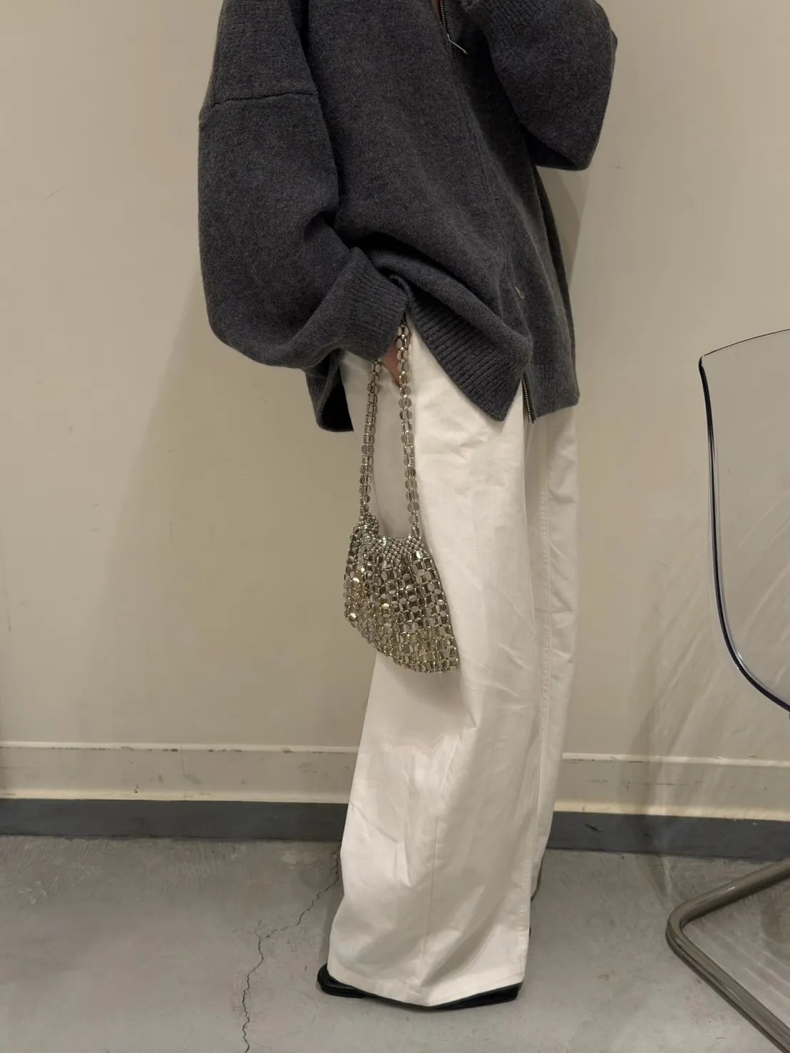 花灰色 極美!雙向拉鍊高磅針織外套