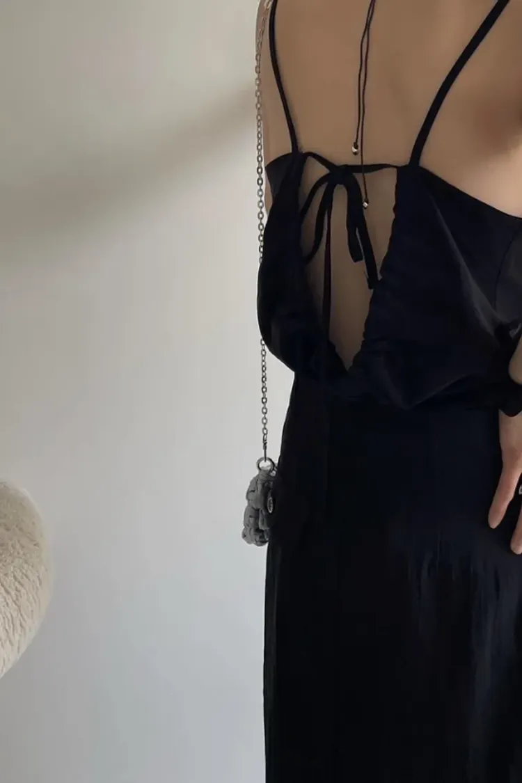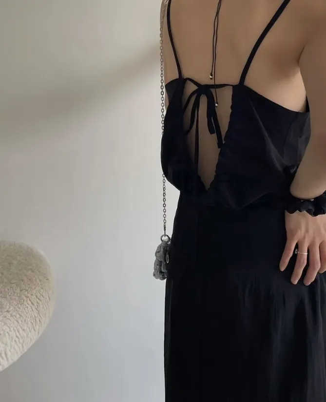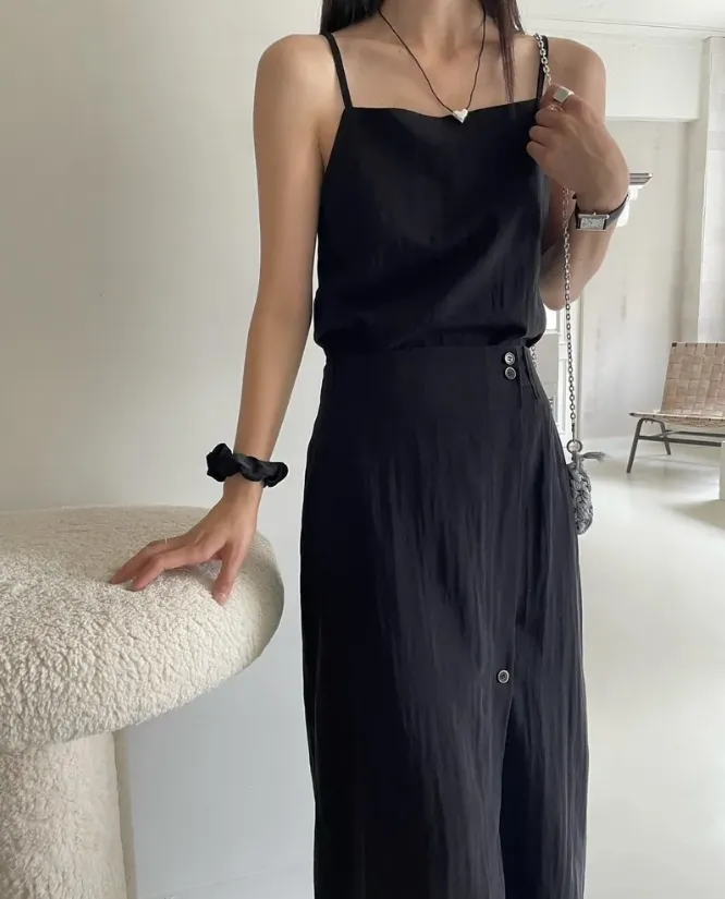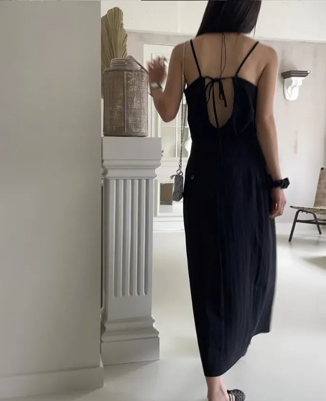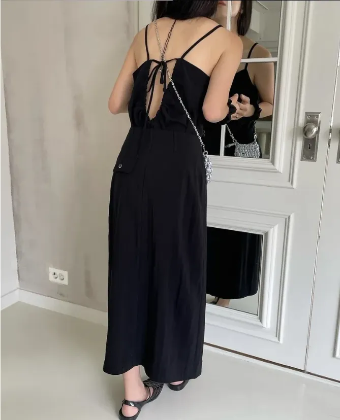 KOREA(現貨)黑色 U型抽繩細肩美背背心