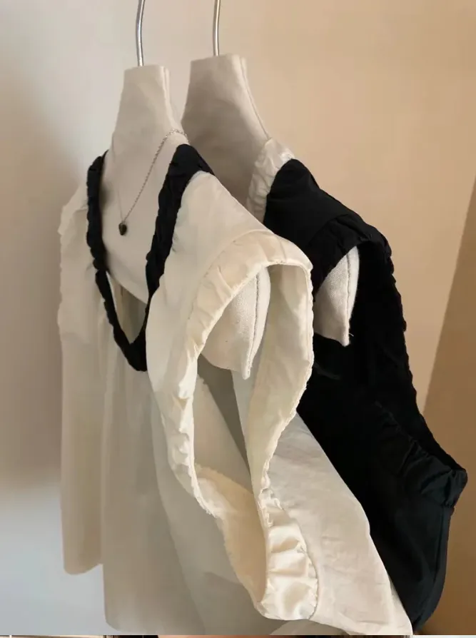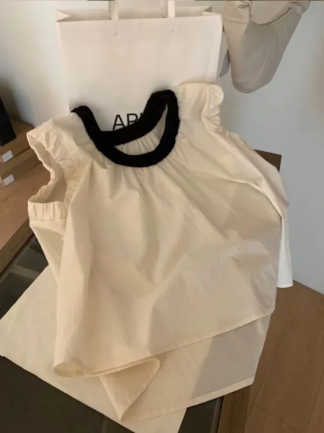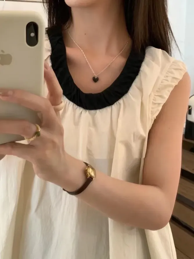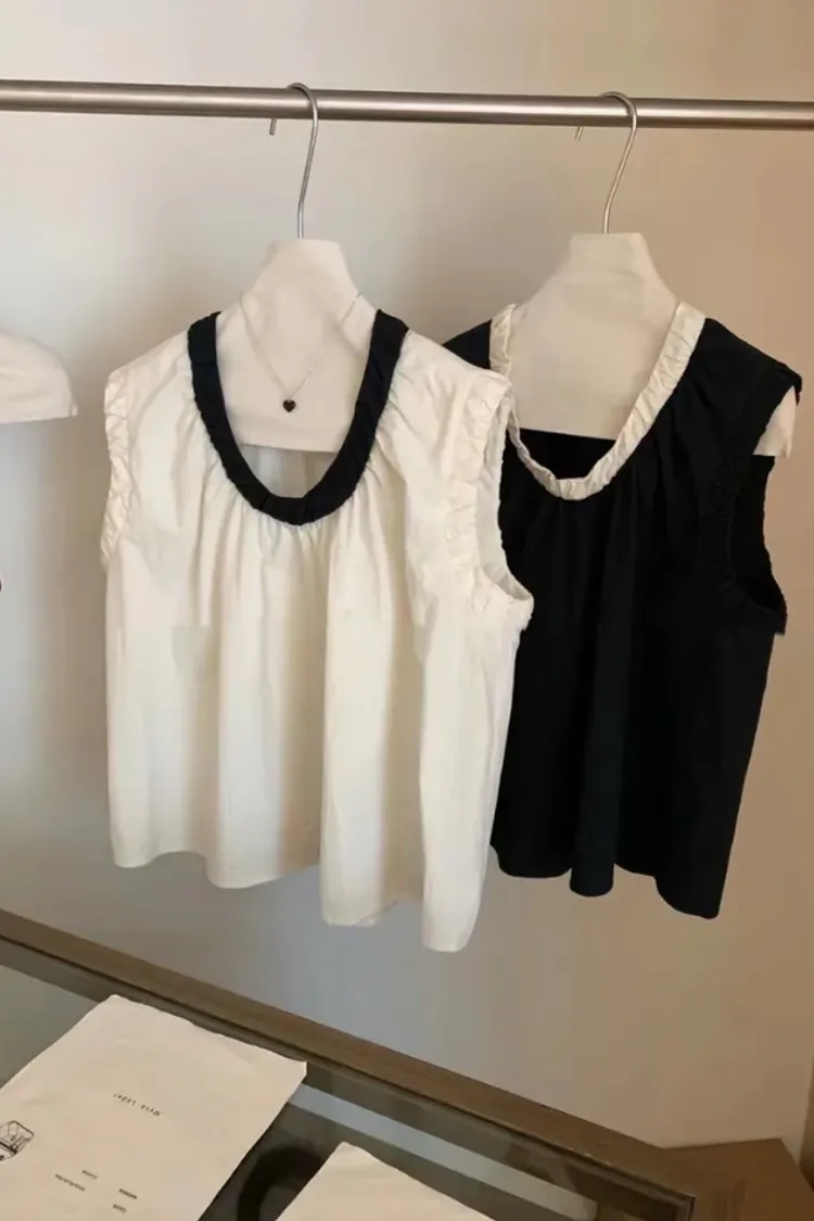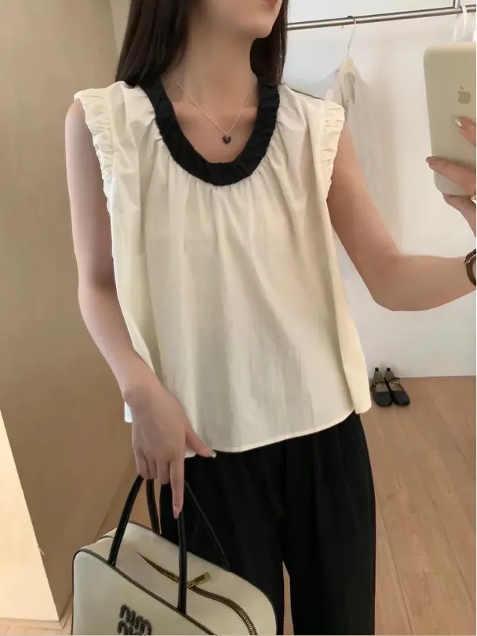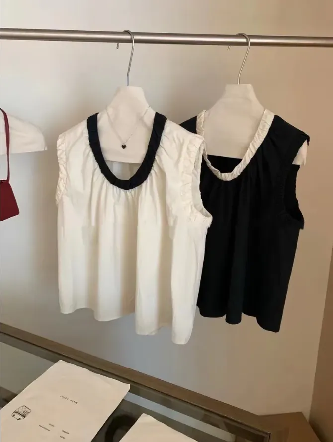 (現貨) 2色 領撞色襯衫料背心