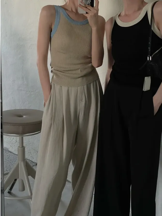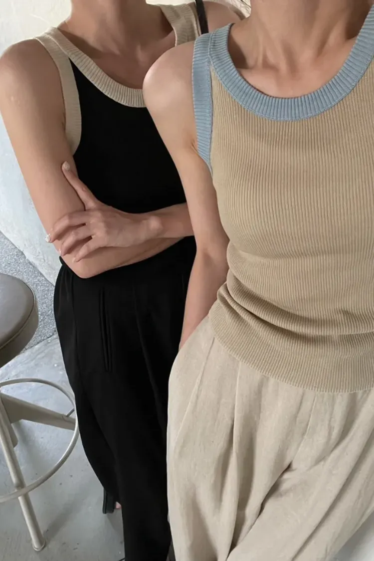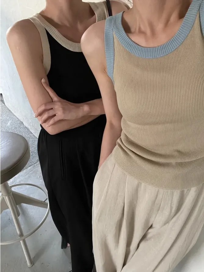 (現貨) 滾水藍邊 涼感砂質撞色針織背心