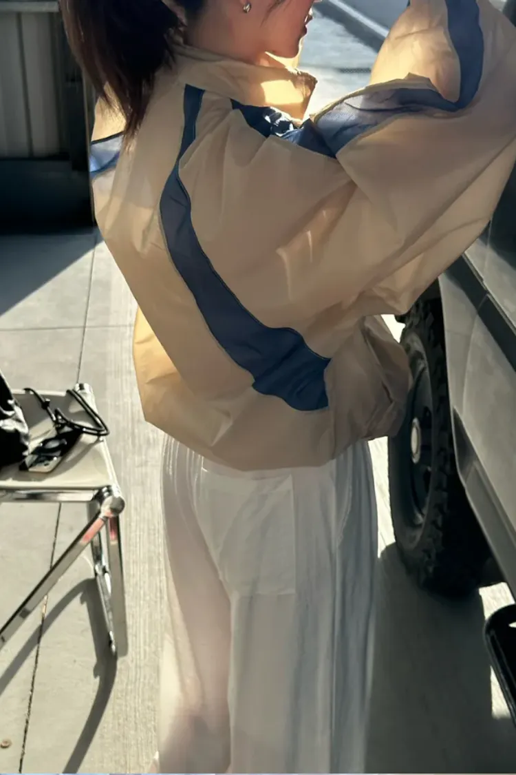 (現貨) 淡奶油 透感拼接袖外套