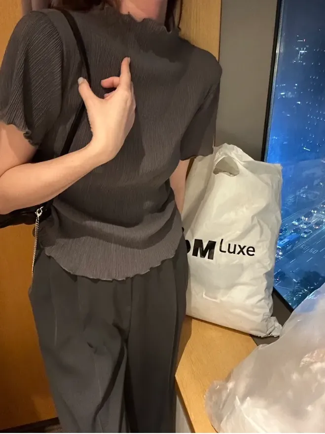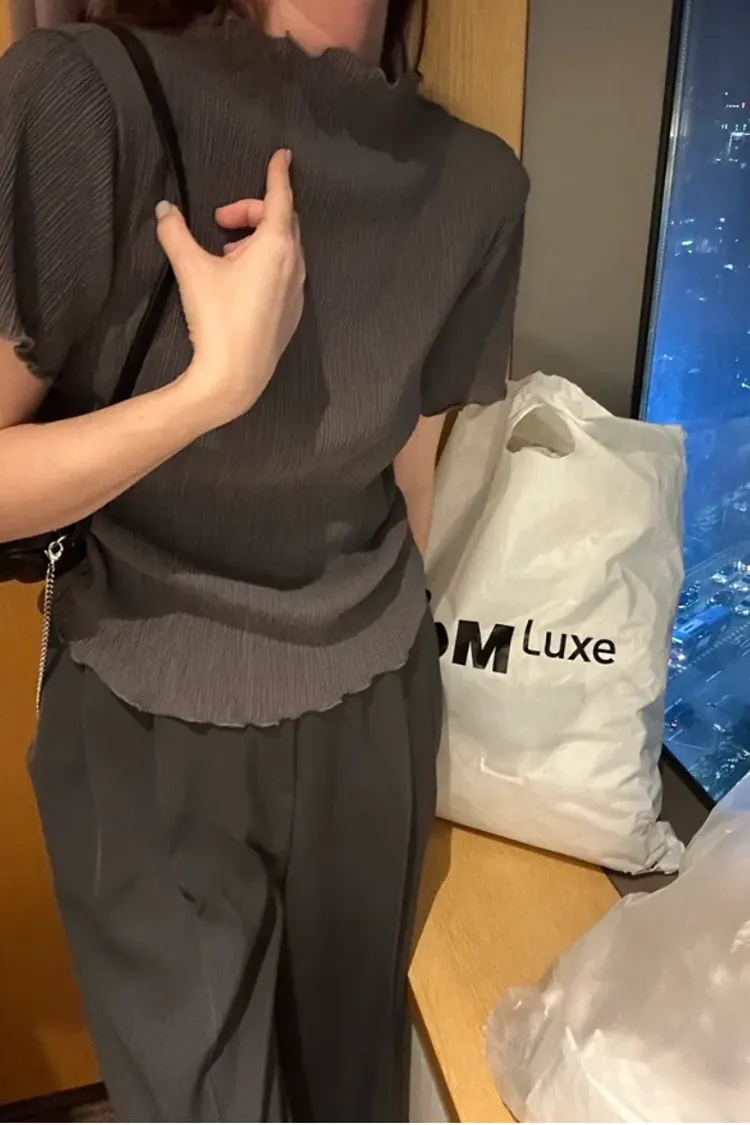 KOREA 灰色 極美雪紡紗皺褶短袖tee