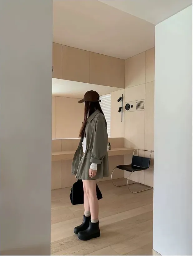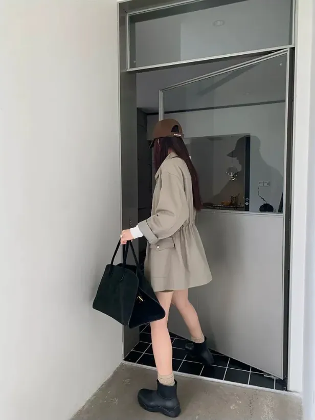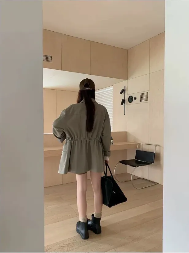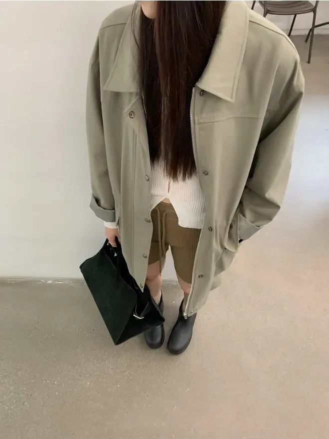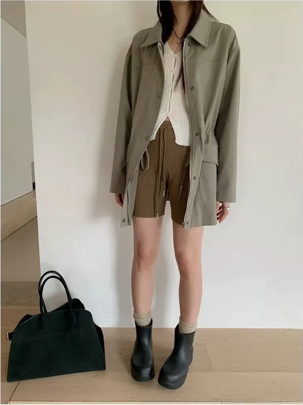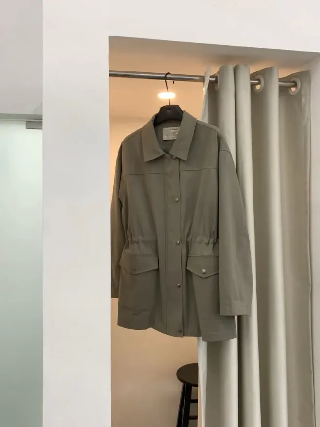 (現貨)霧灰綠色 高質感通勤風衣外套