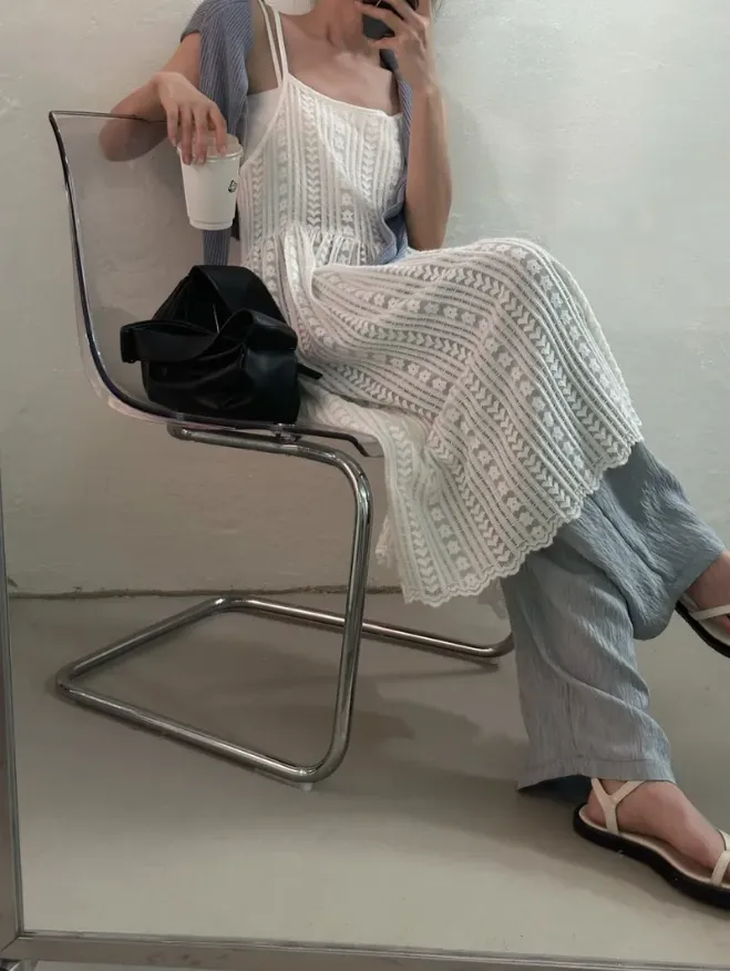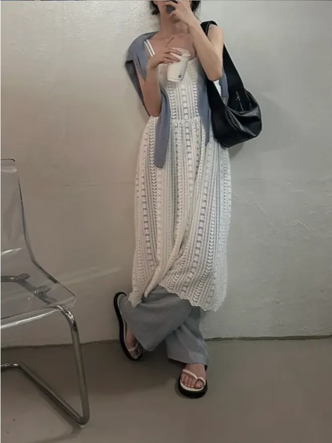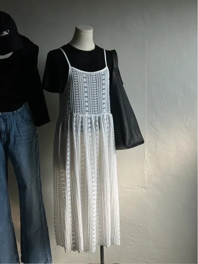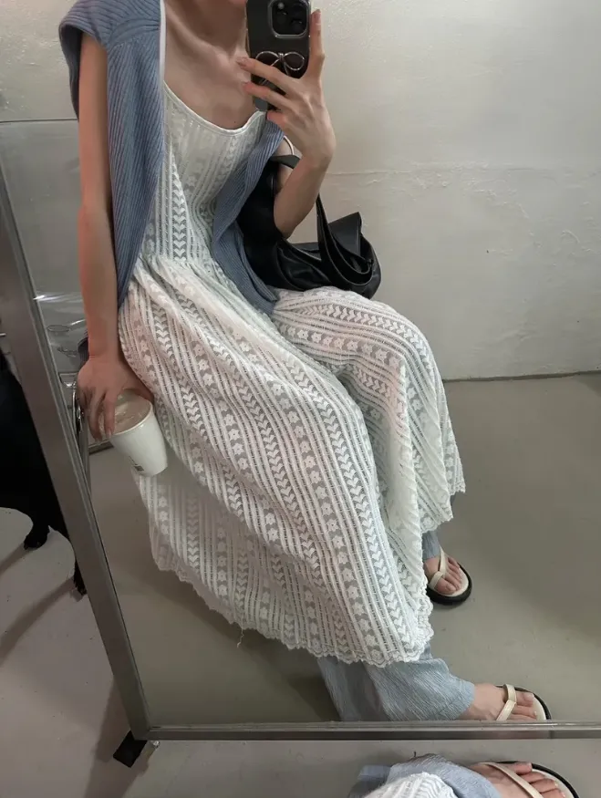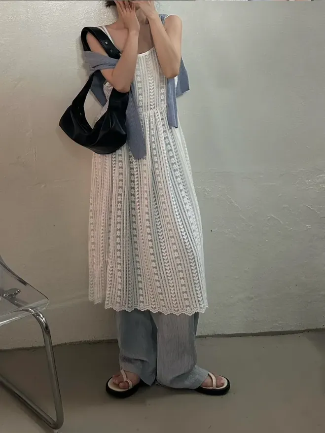 KOREA(現貨)細肩帶蕾絲背心罩衫洋