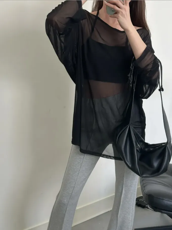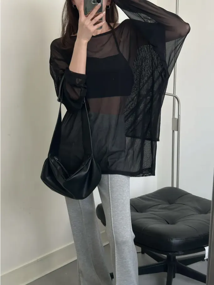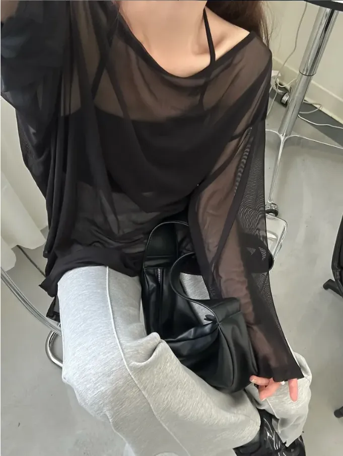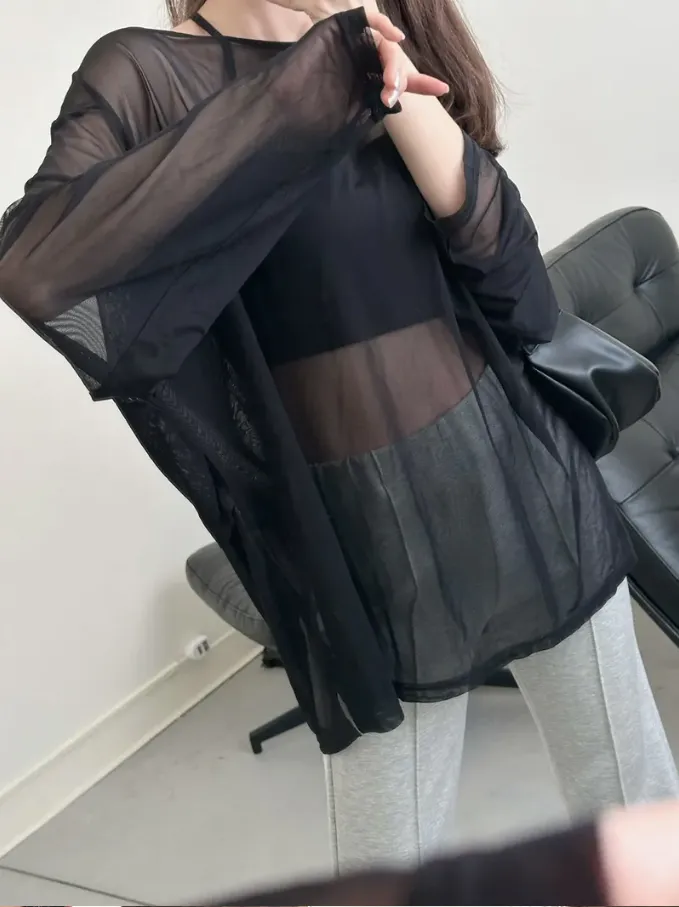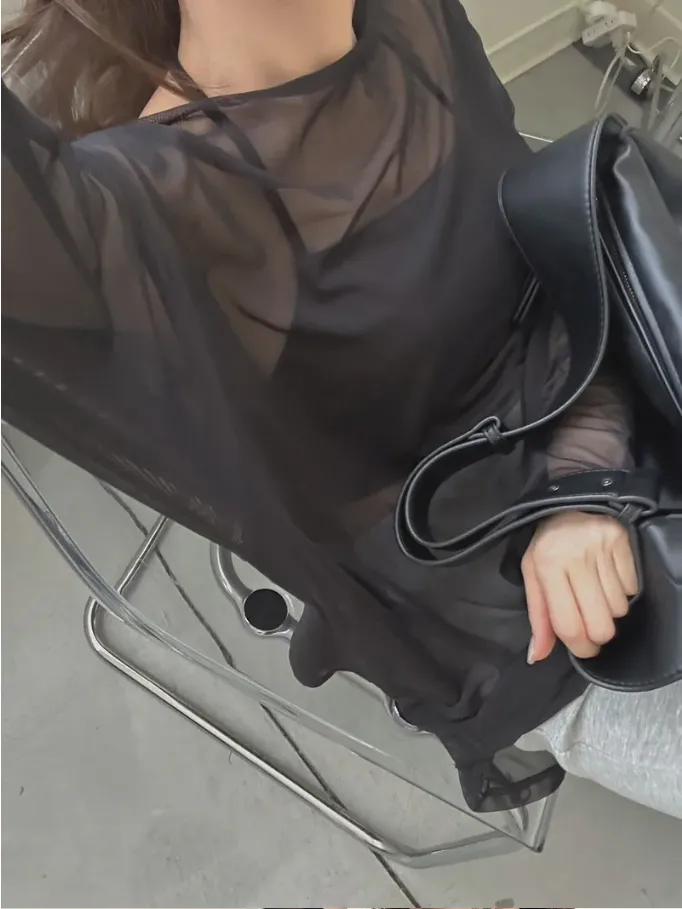 (現貨)KOREA 黑色 主推!!涼感絲滑透紗設計tee