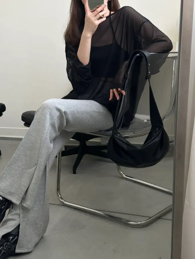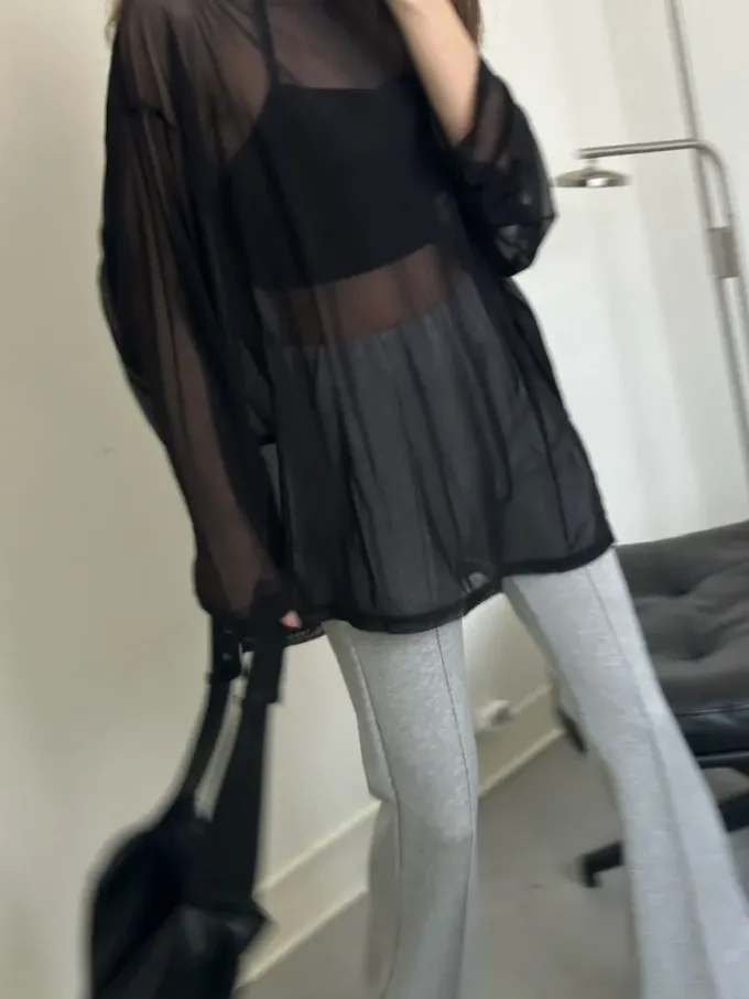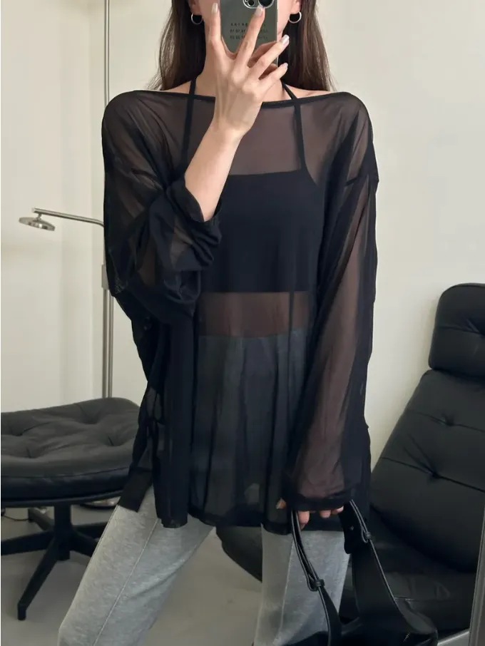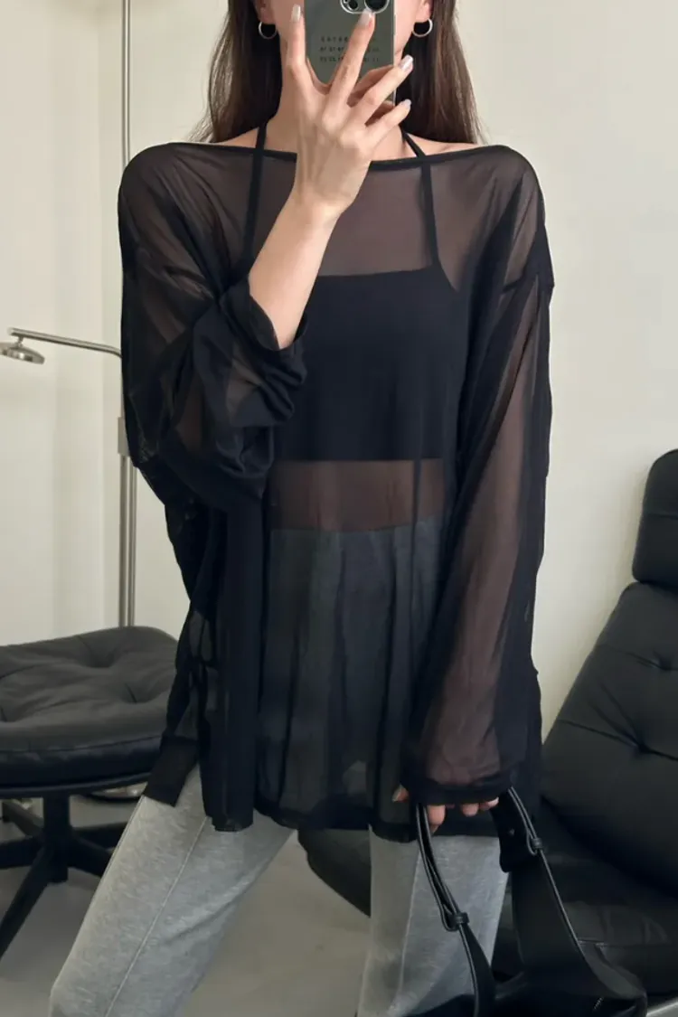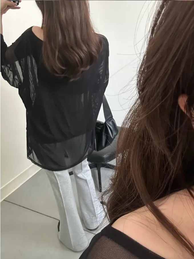 (現貨)KOREA 黑色 主推!!涼感絲滑透紗設計tee