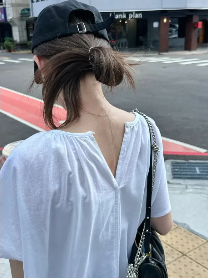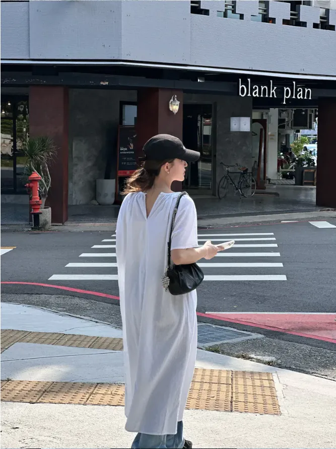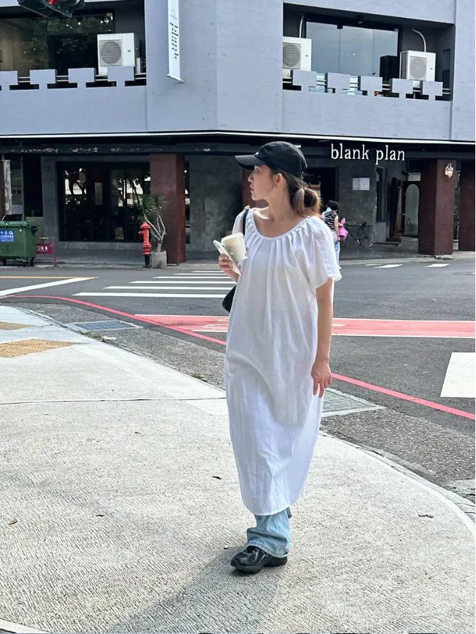 SALE!!(現貨) 白色 領壓折附腰帶麻料洋裝