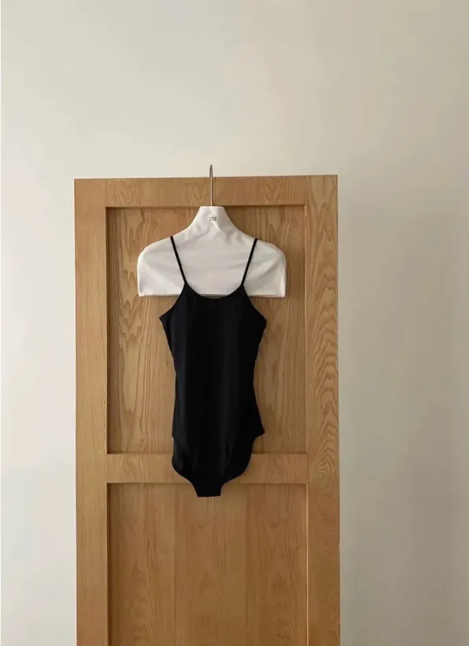 (現貨)黑色 絲滑面料附罩杯連身衣