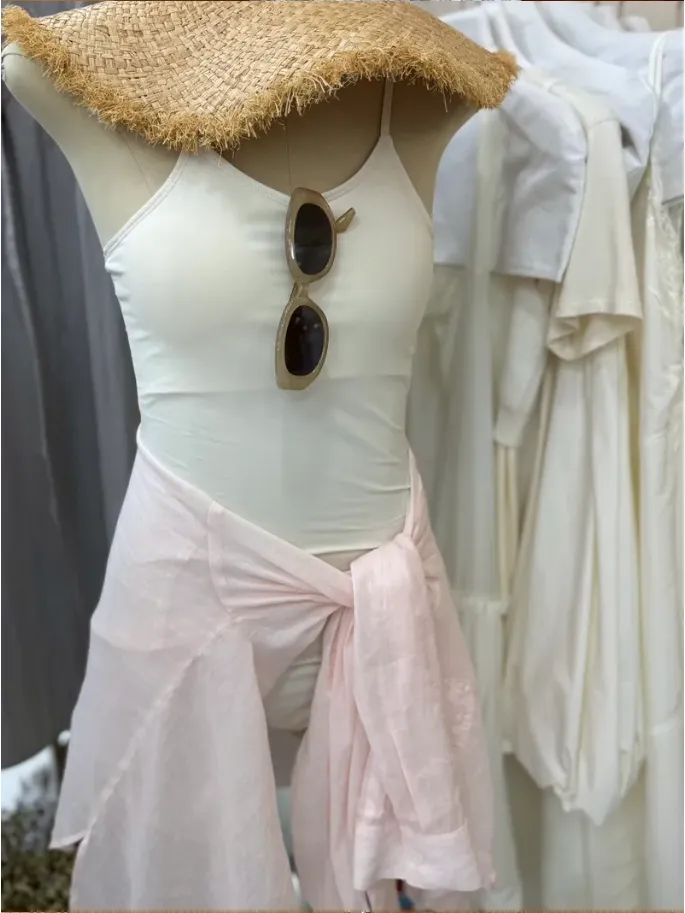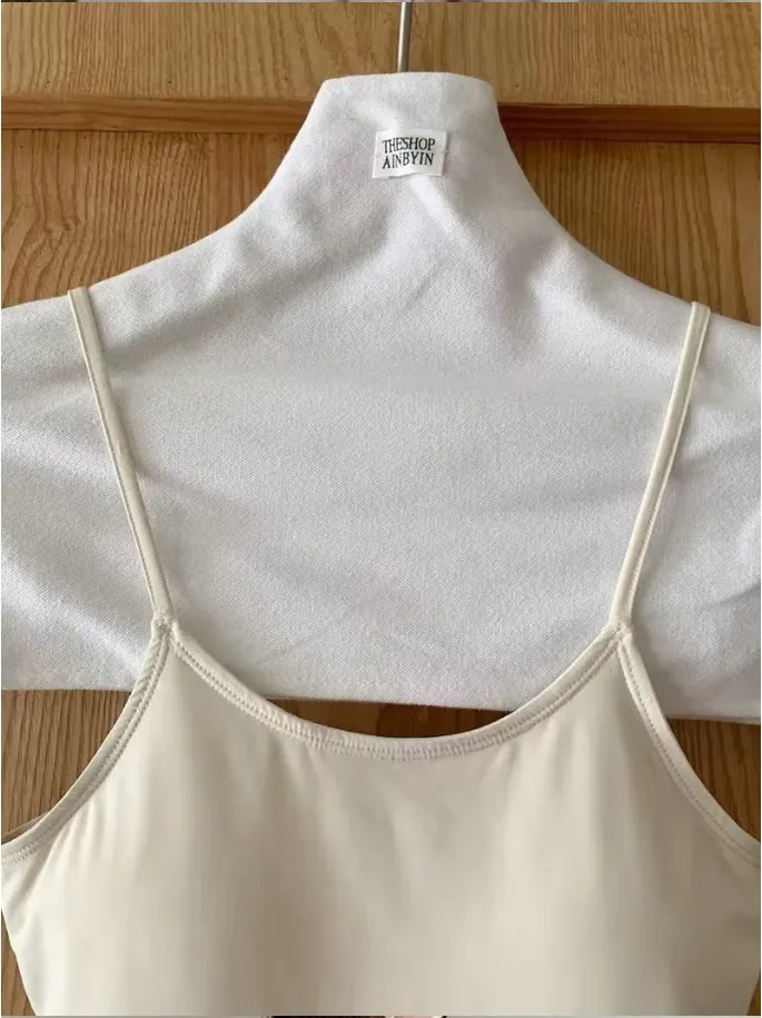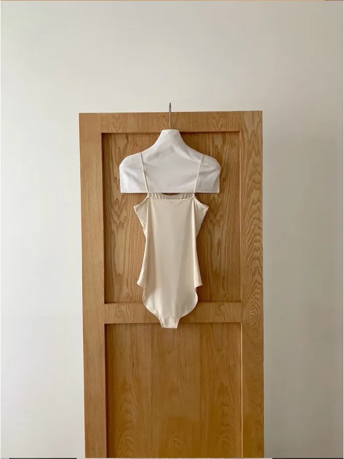 (現貨)奶油米色 絲滑面料附罩杯連身衣