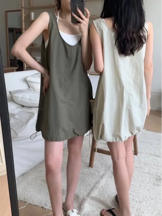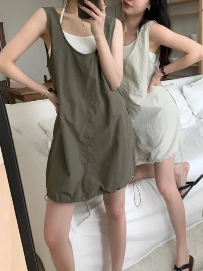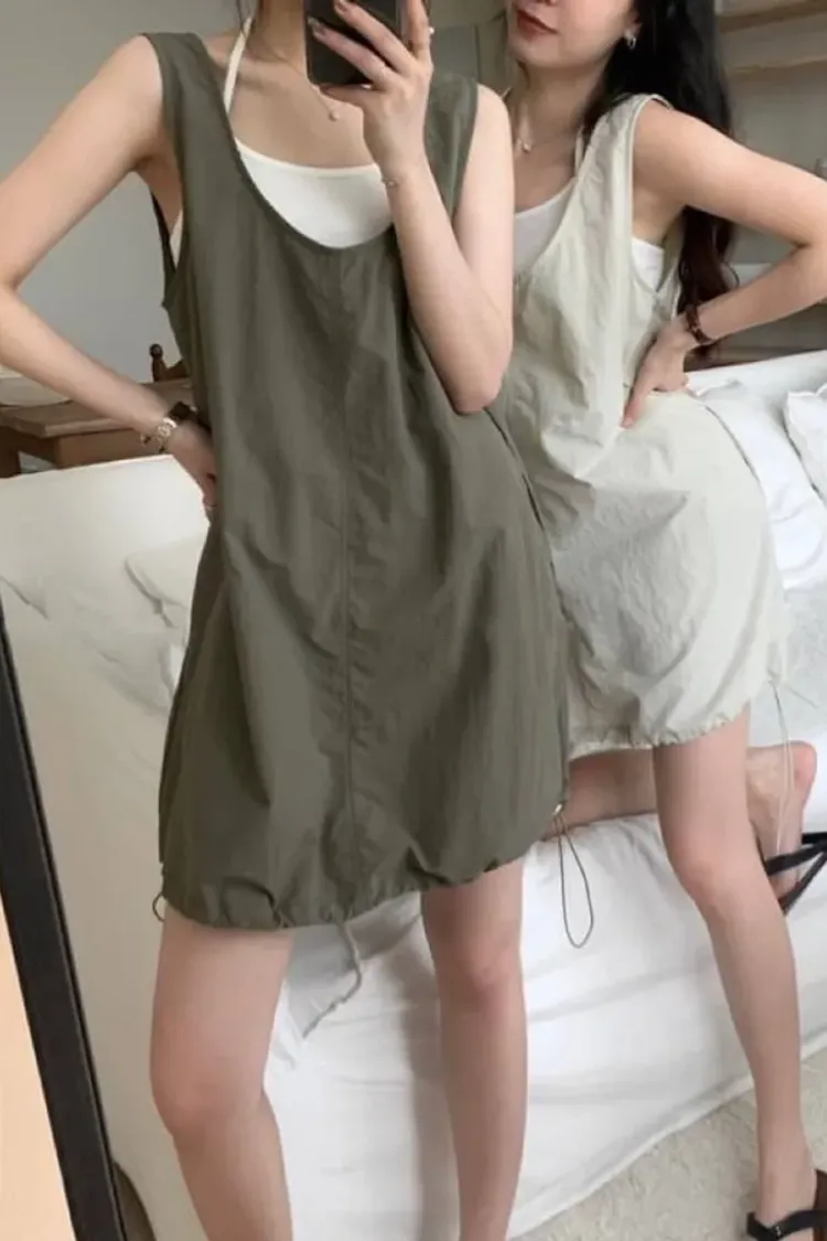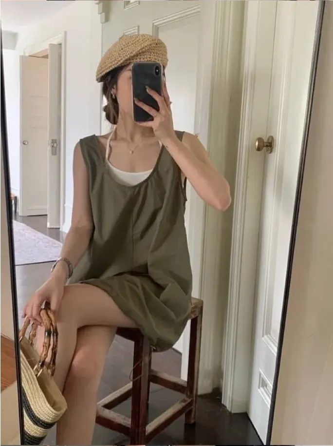 (現貨) 綠色 兩件式刷刷背心洋裝