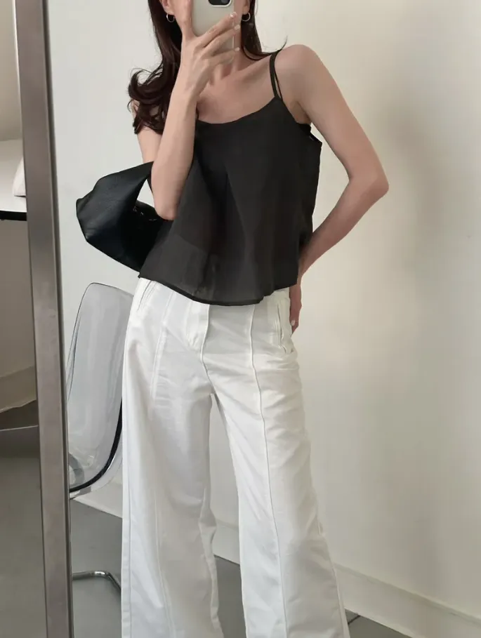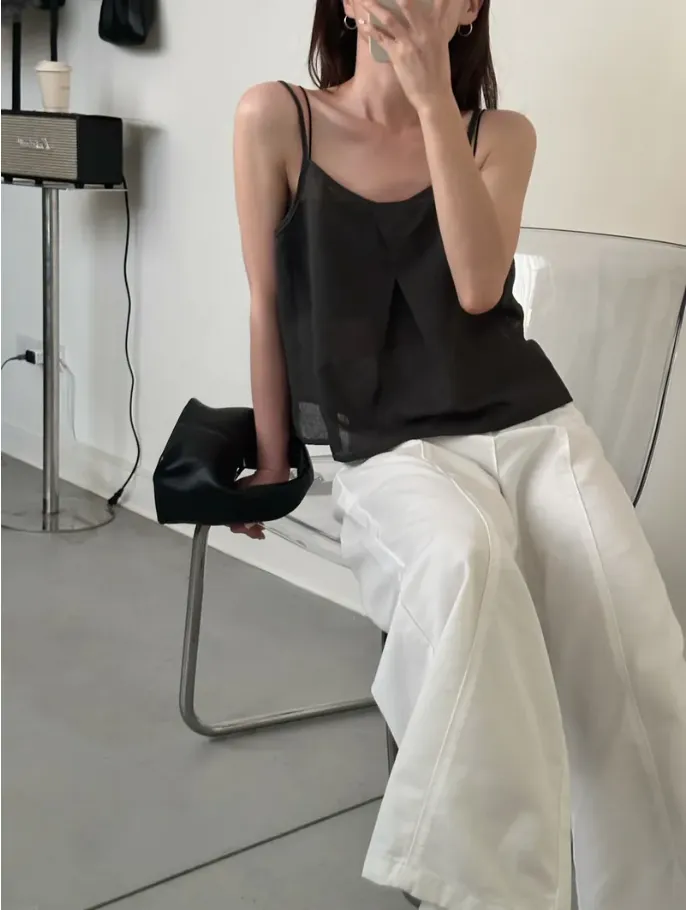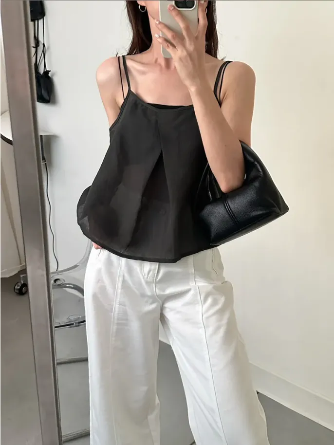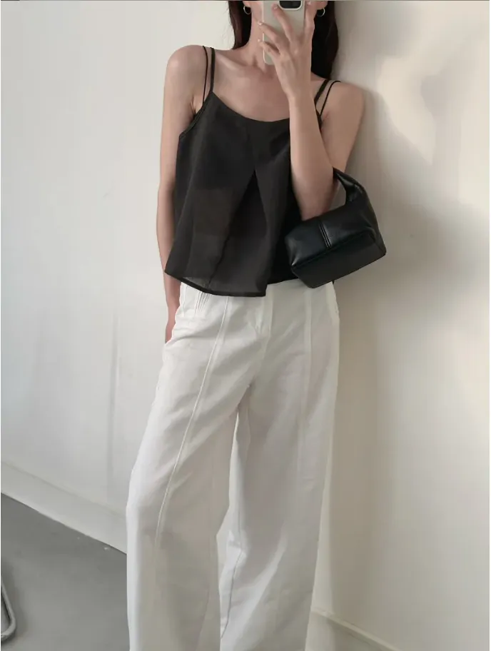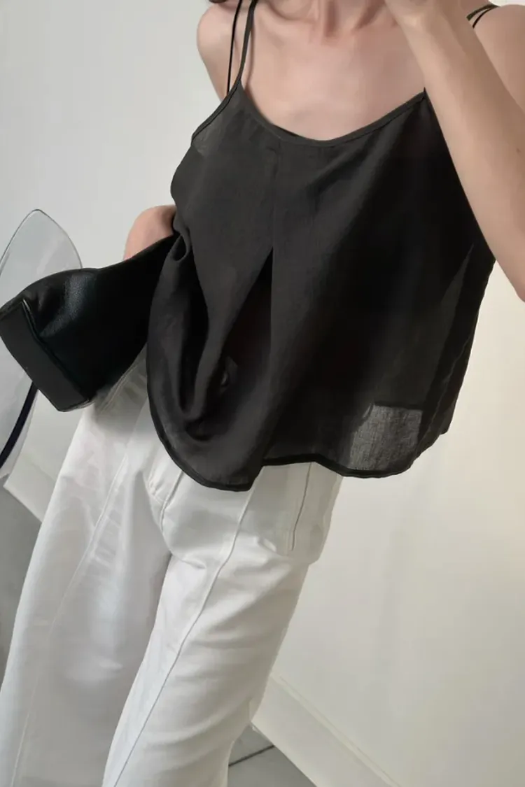 (現貨)深灰色 簡約感!壓褶麻料背心