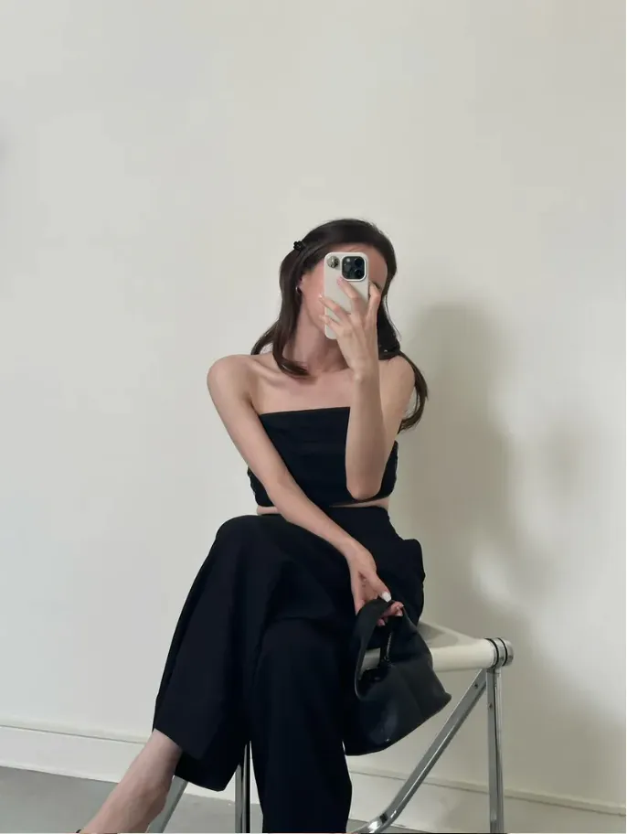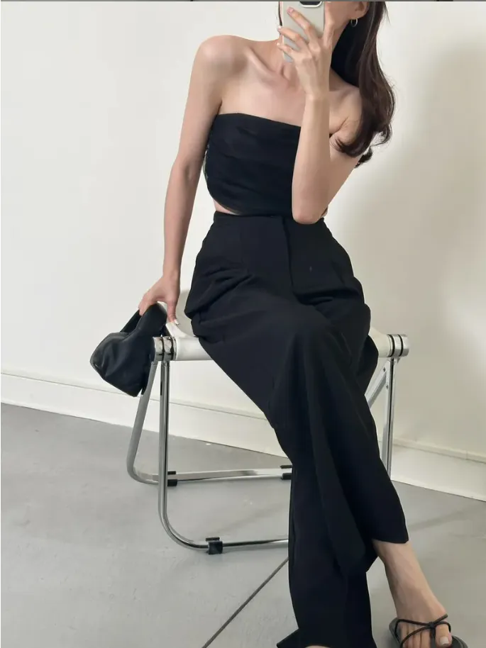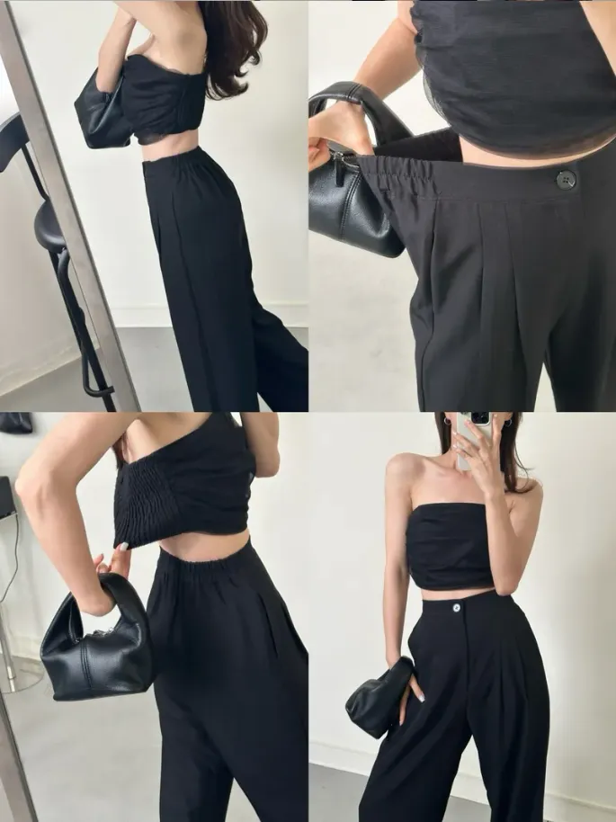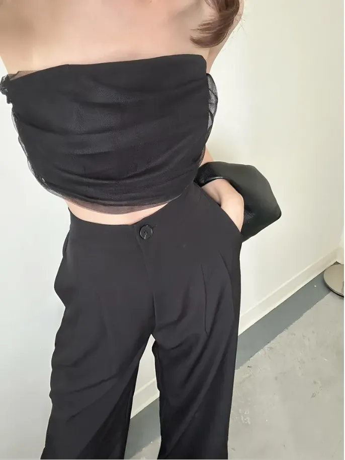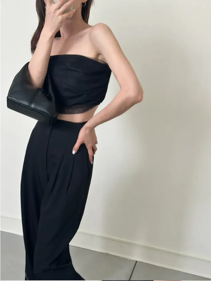(現貨)黑色 可帥可辣彈性平口紗+長褲SET