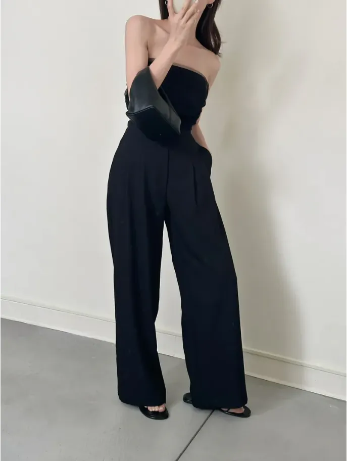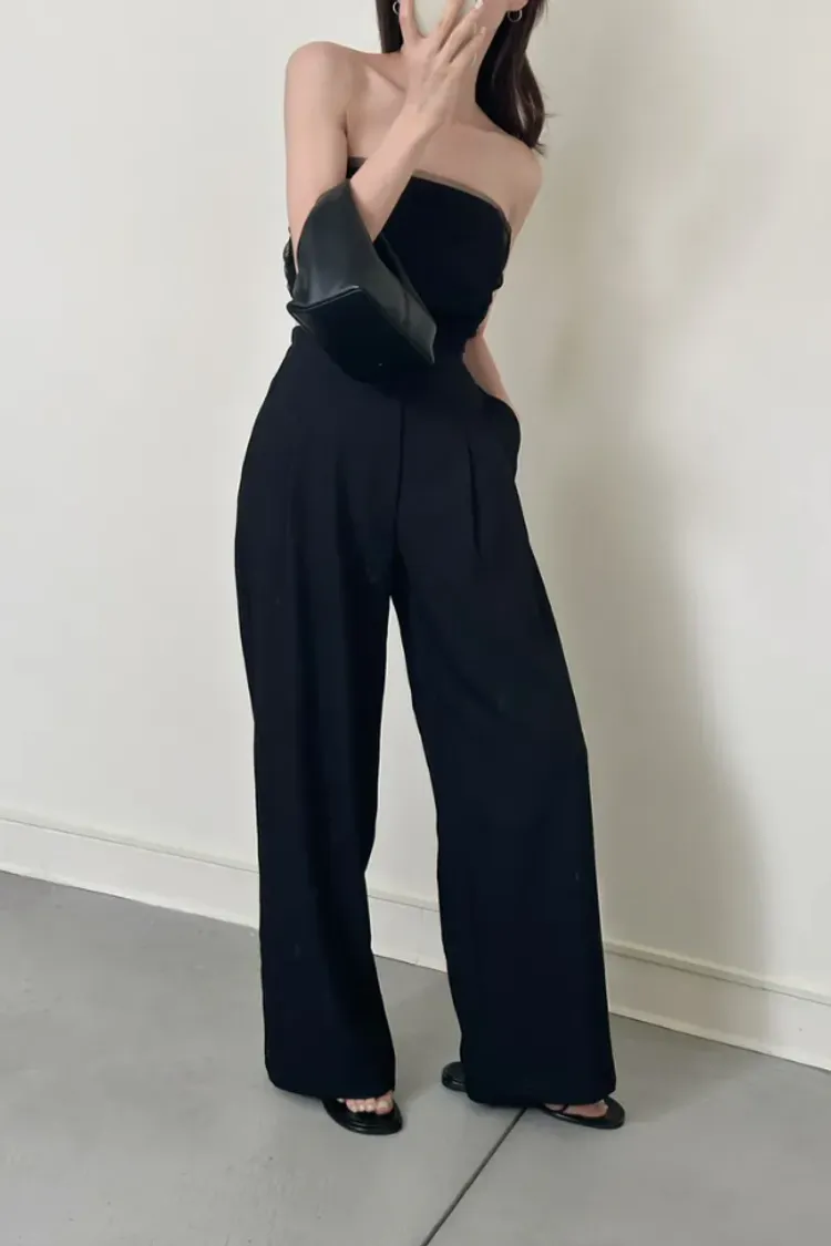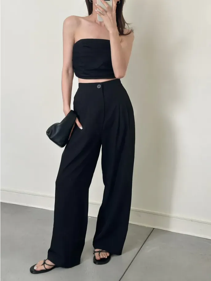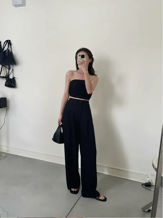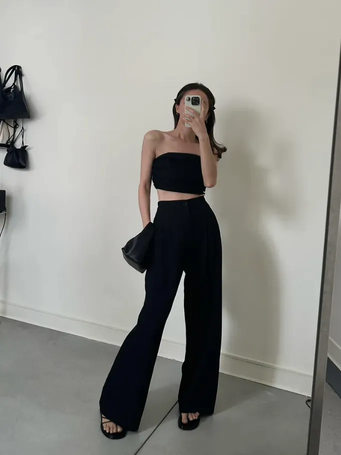 (現貨)黑色 可帥可辣彈性平口紗+長褲SET