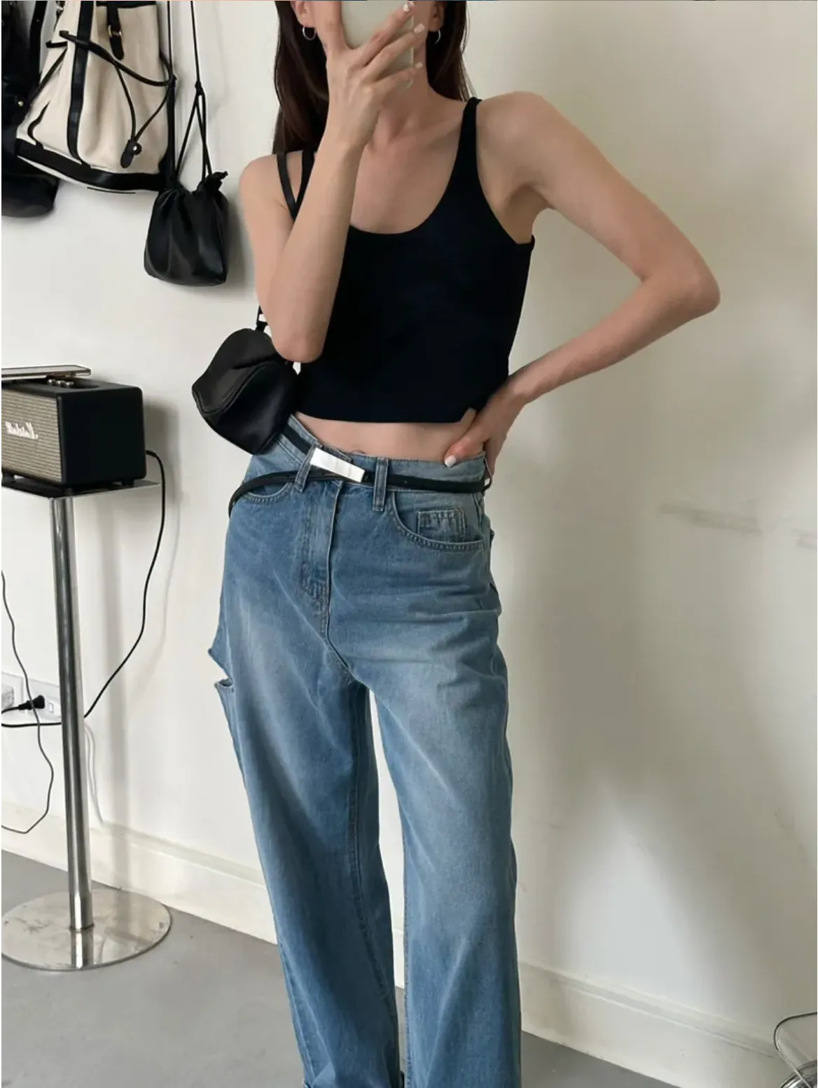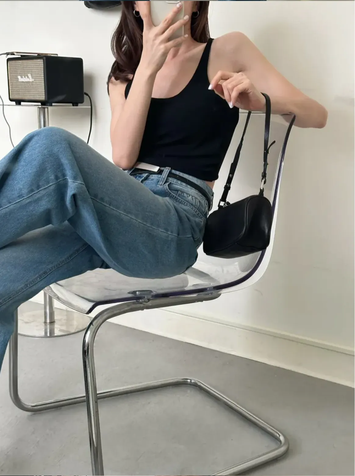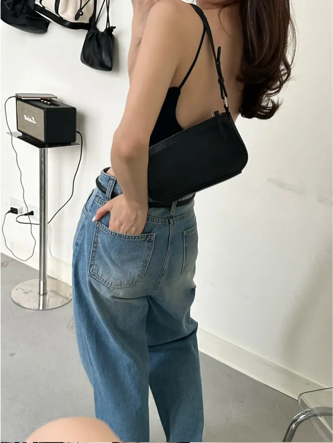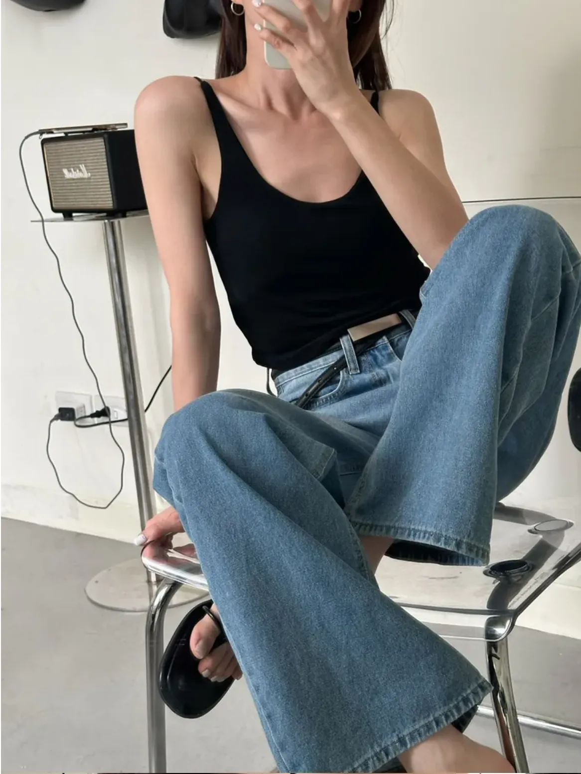 (現貨)黑色 超愛!肩尖尖後U美背bra top
