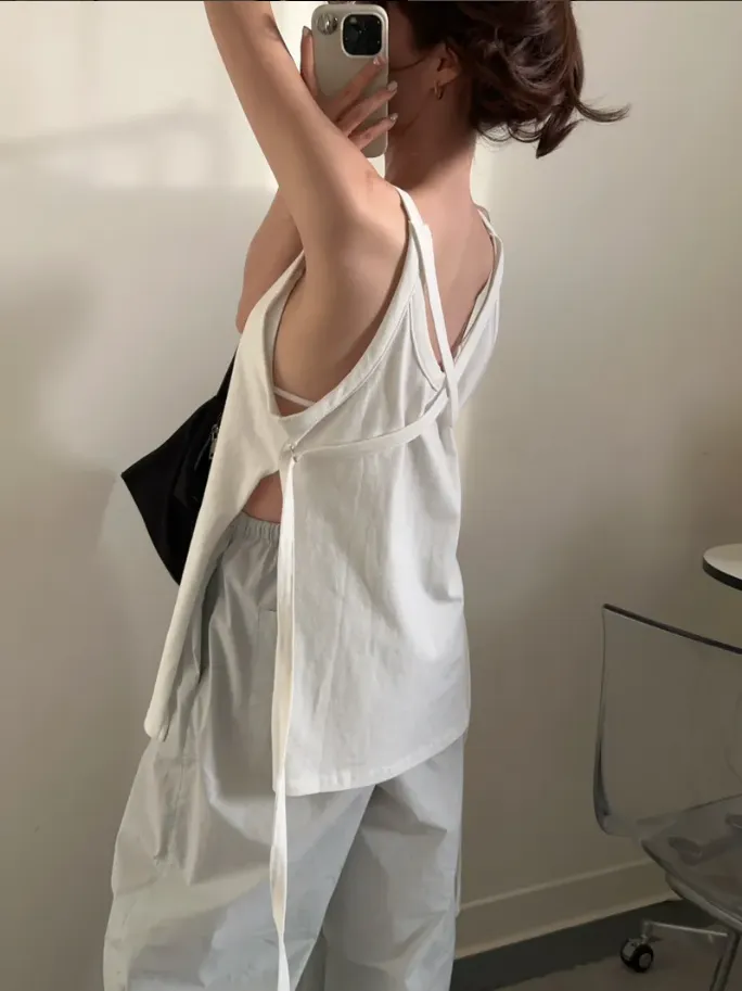 白色 本季最愛!高磅後繞繩背心