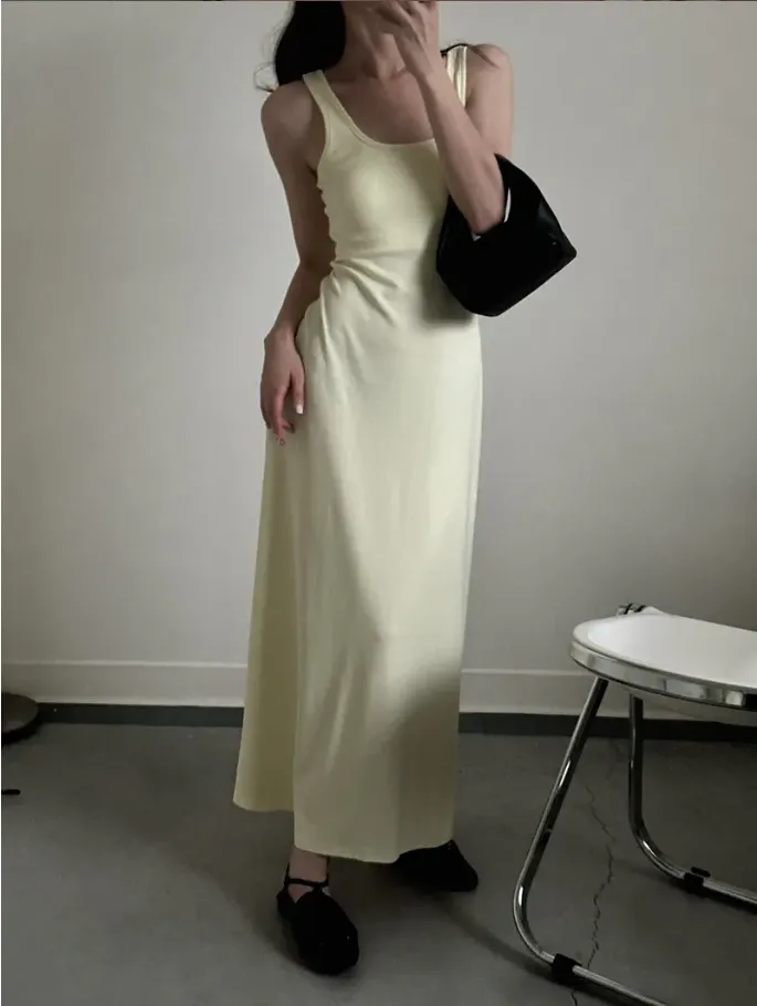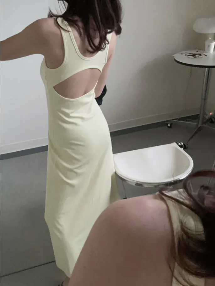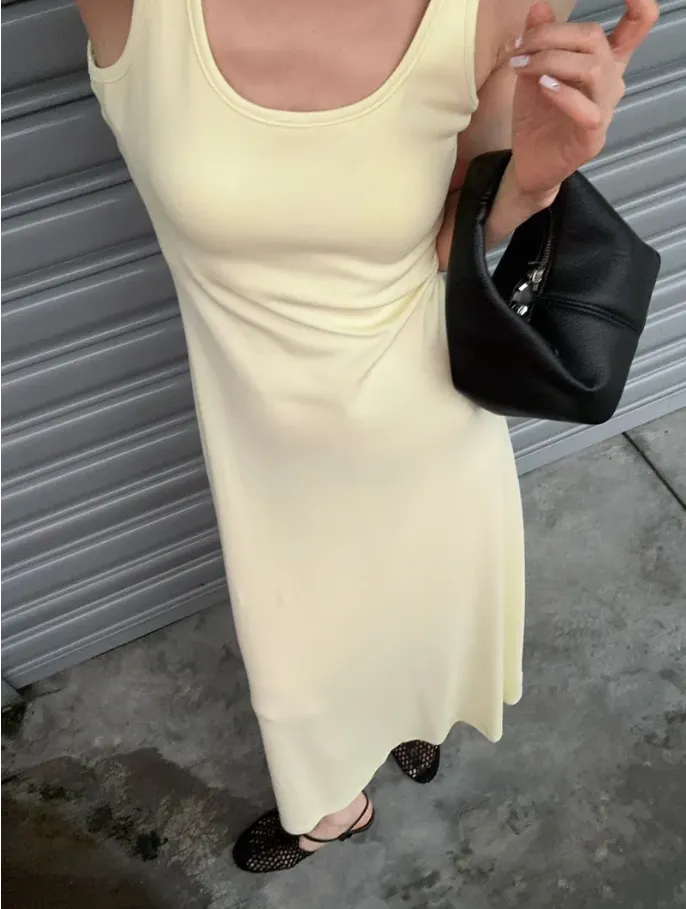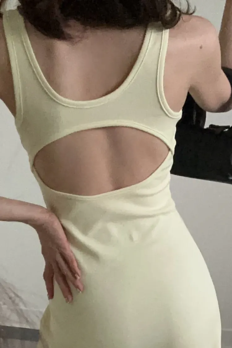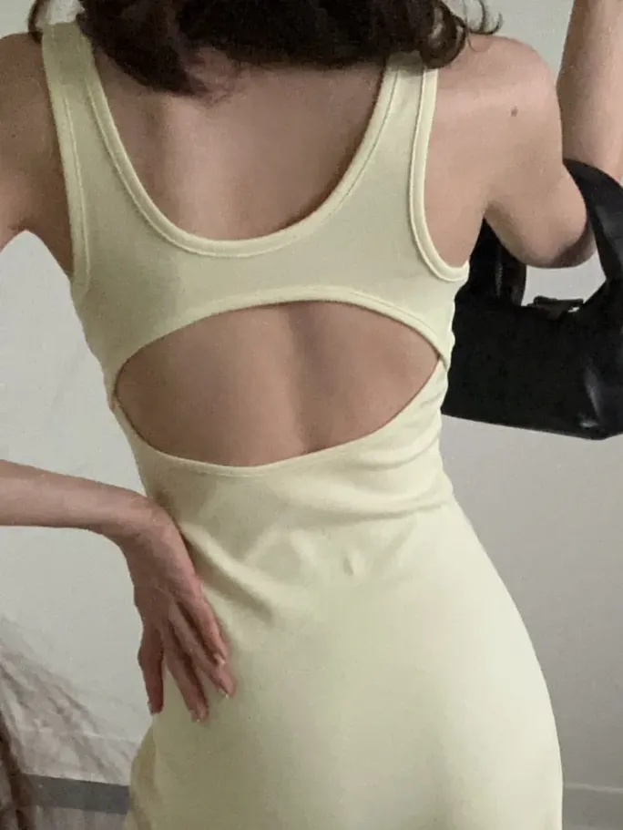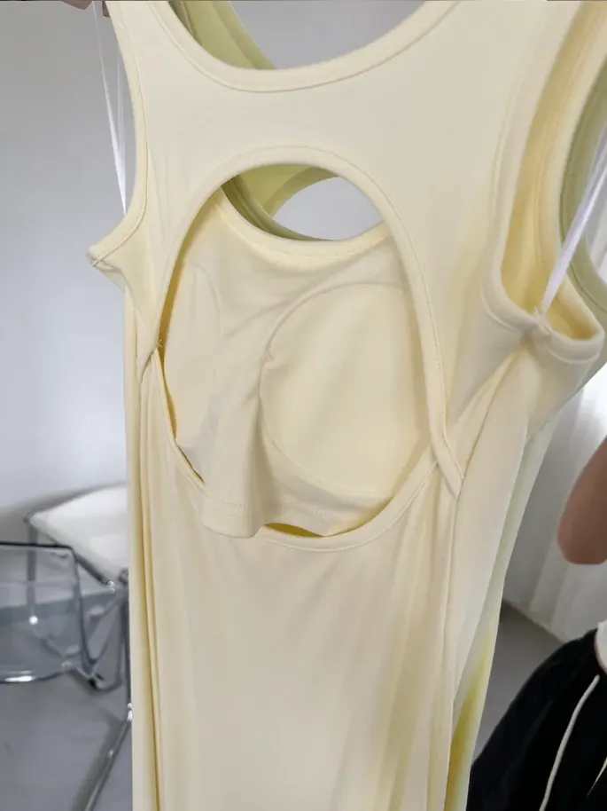 (現貨)小雞黃色 自帶bra 後挖洞棉質背心洋裝