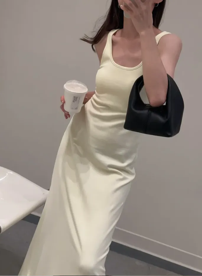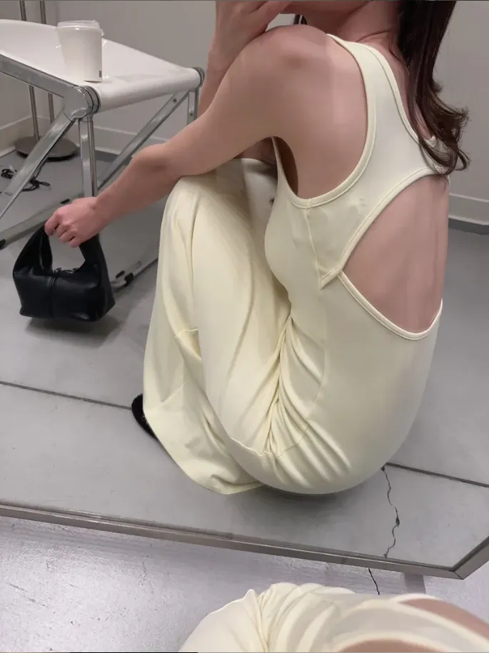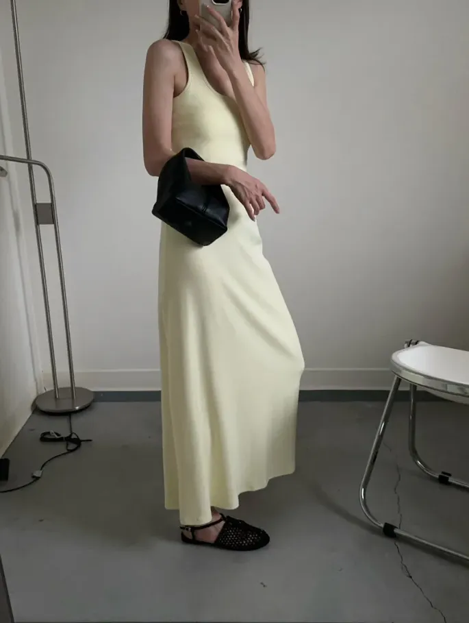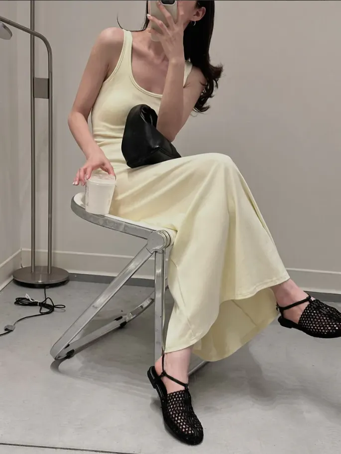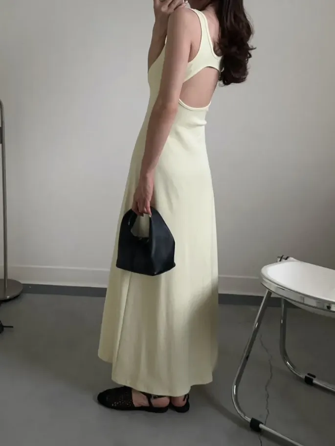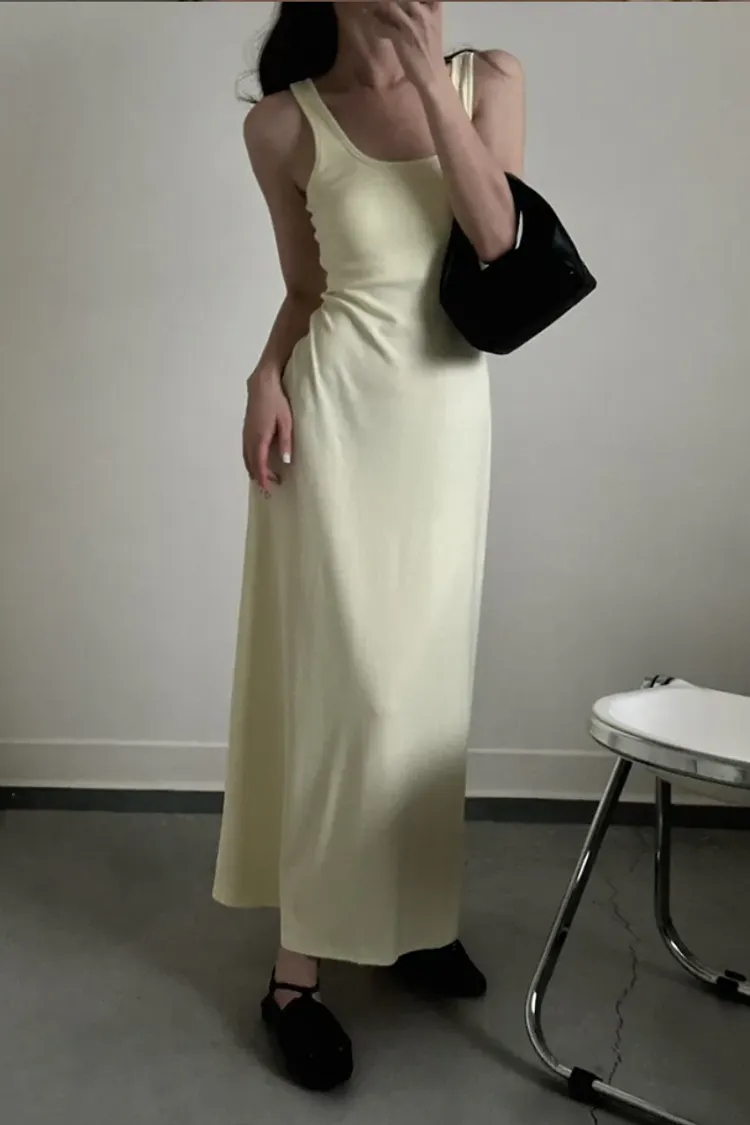 (現貨)小雞黃色 自帶bra 後挖洞棉質背心洋裝