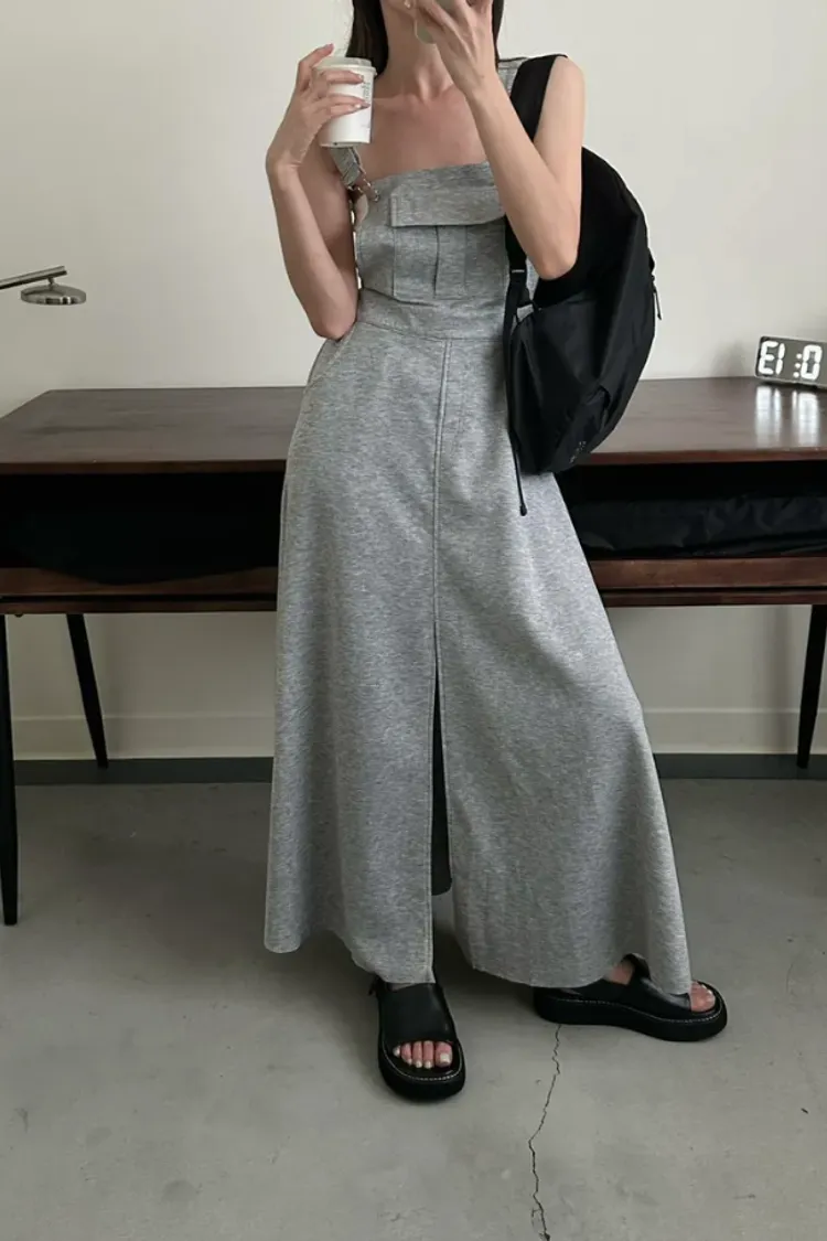 (現貨)Korea 灰色 涼感太空棉吊帶長裙