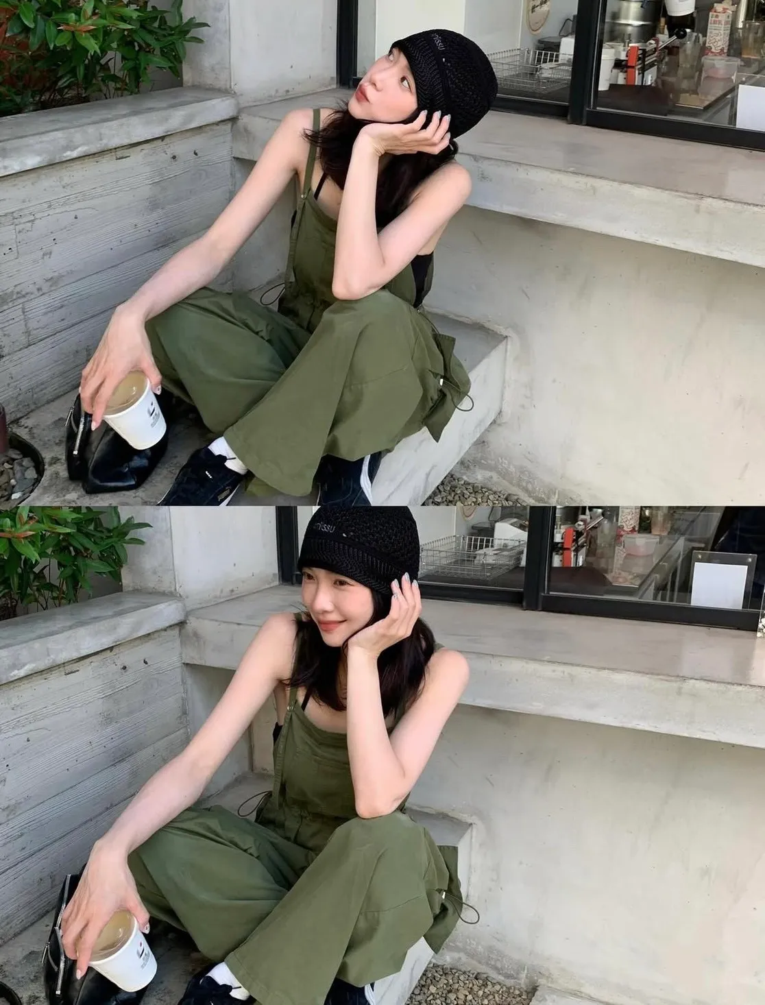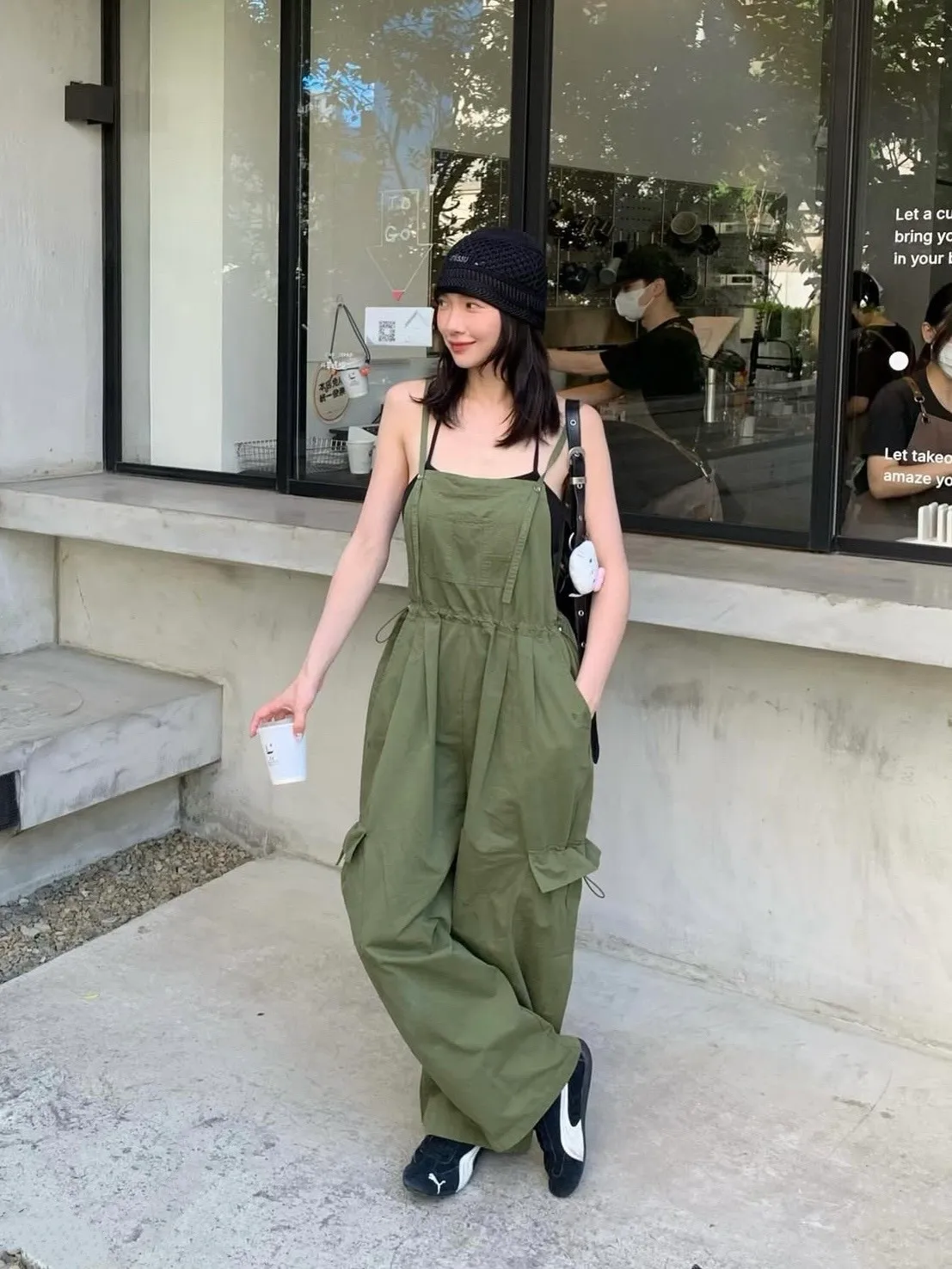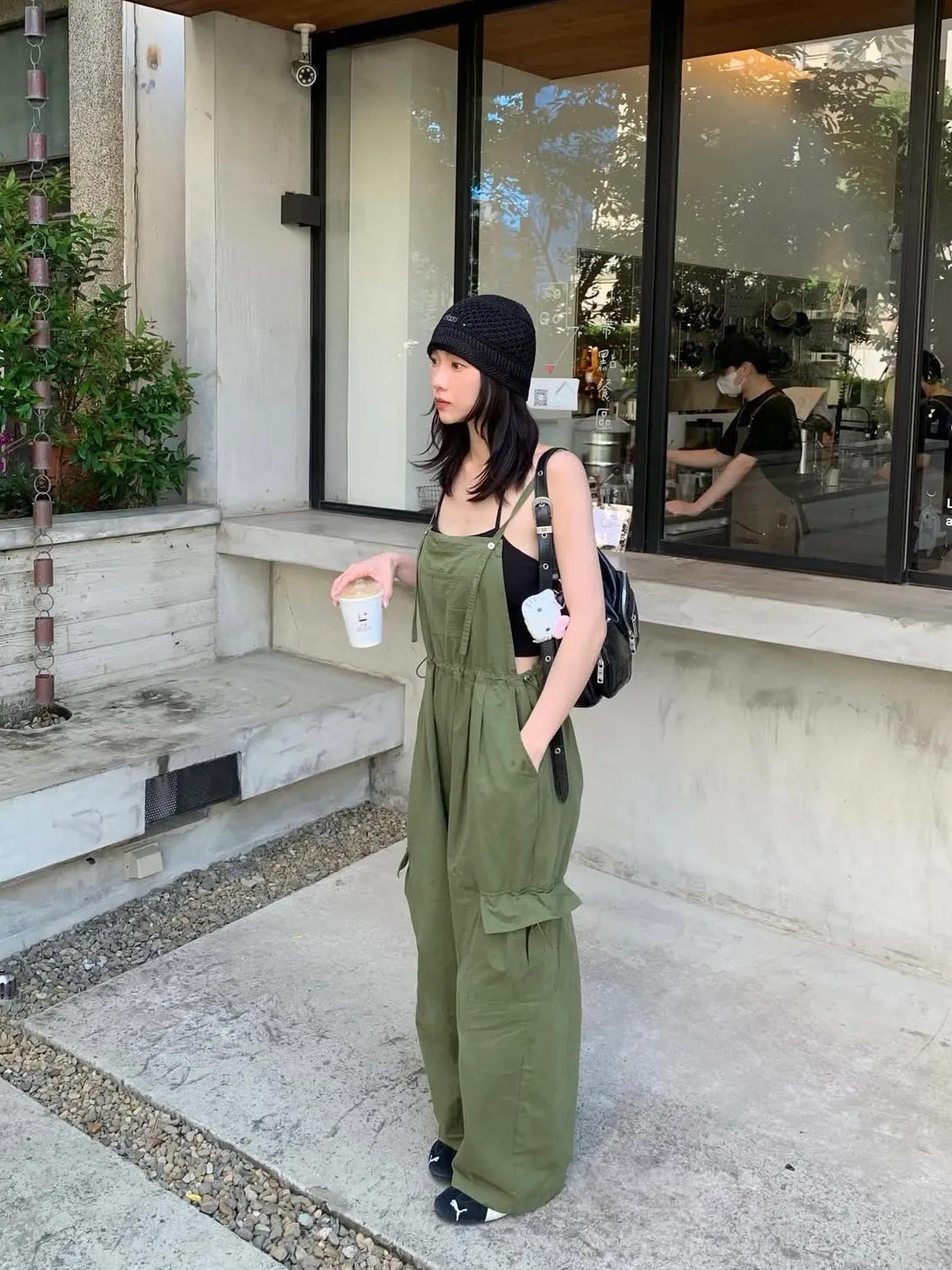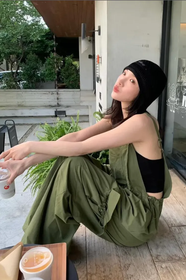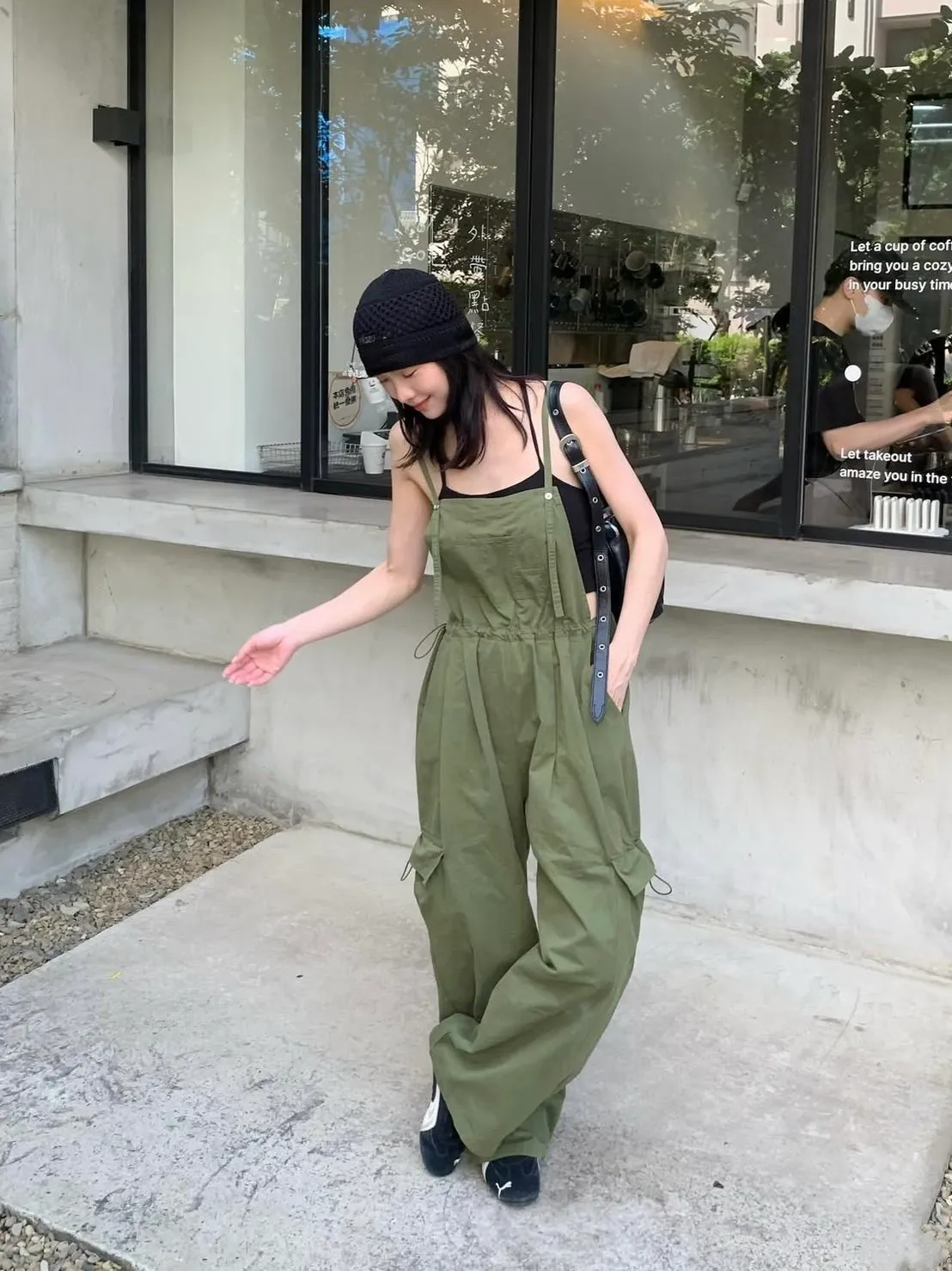 (現貨) 綠色 好愛!!工裝吊帶褲