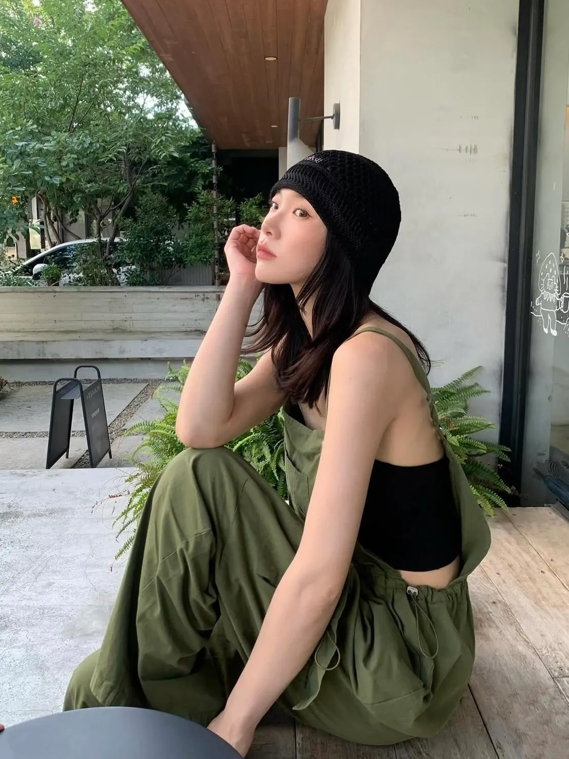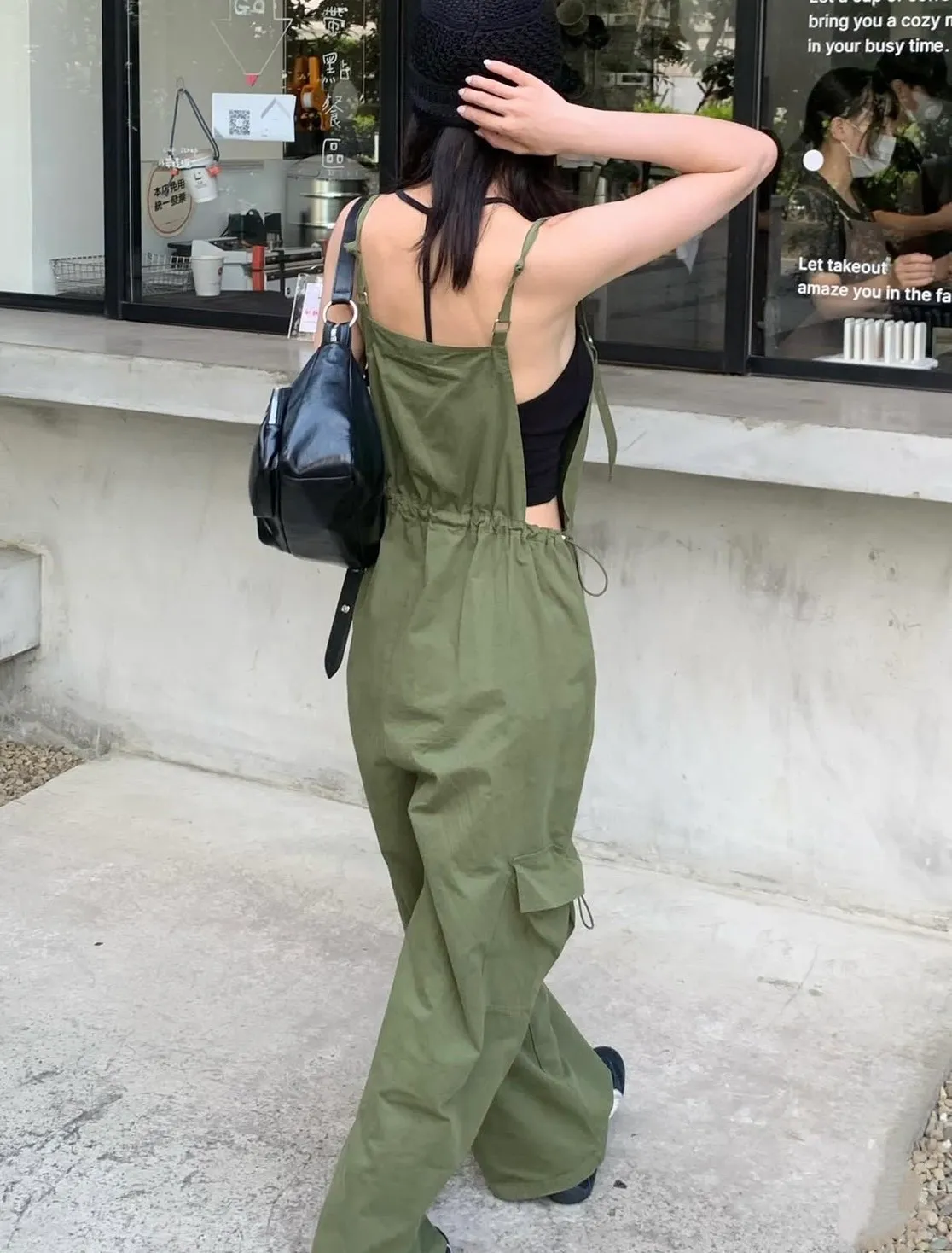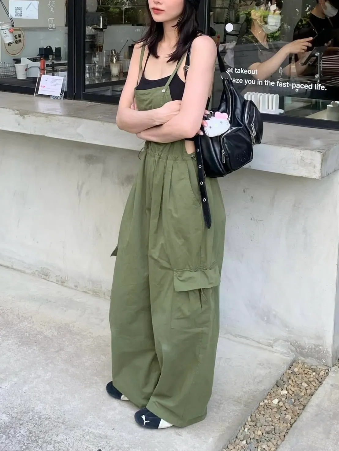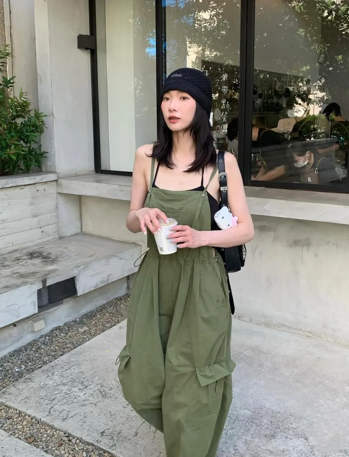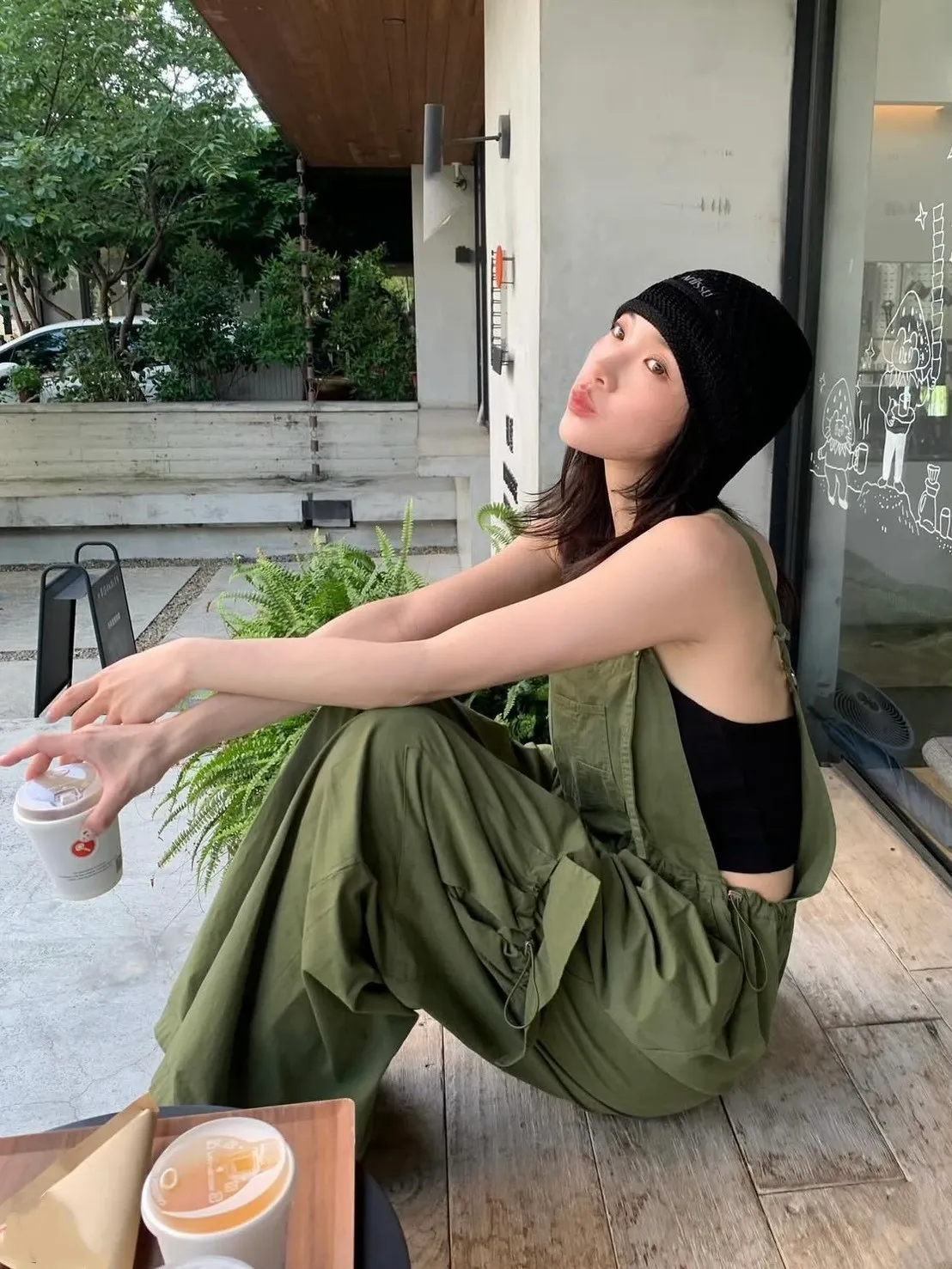 (現貨) 綠色 好愛!!工裝吊帶褲