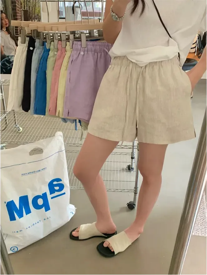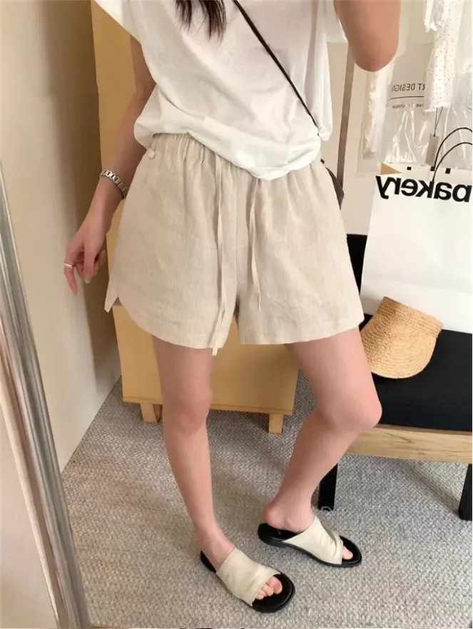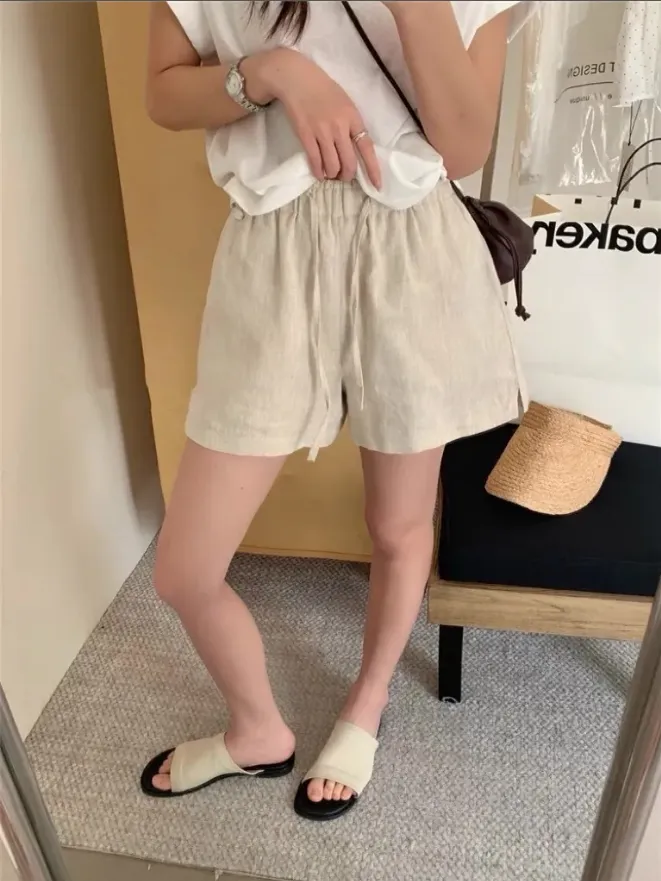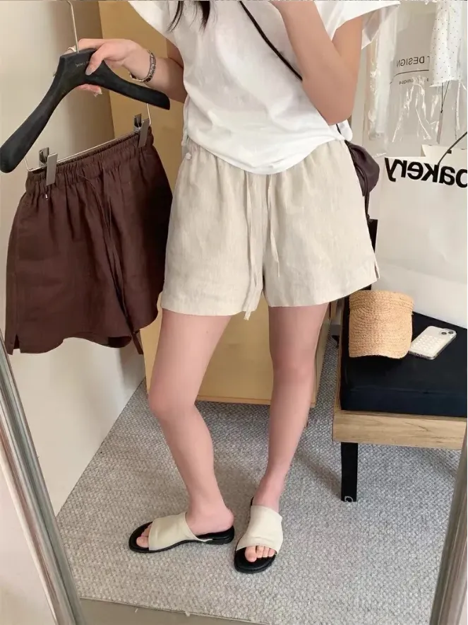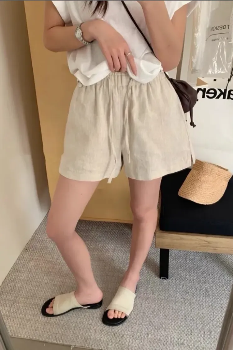 (現貨)麻色 小牌子麻料短褲