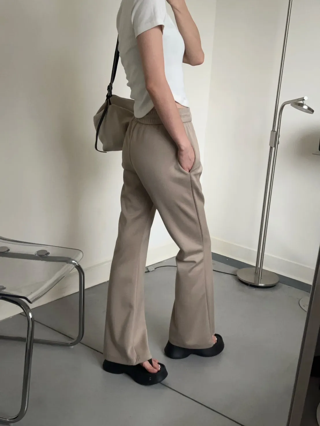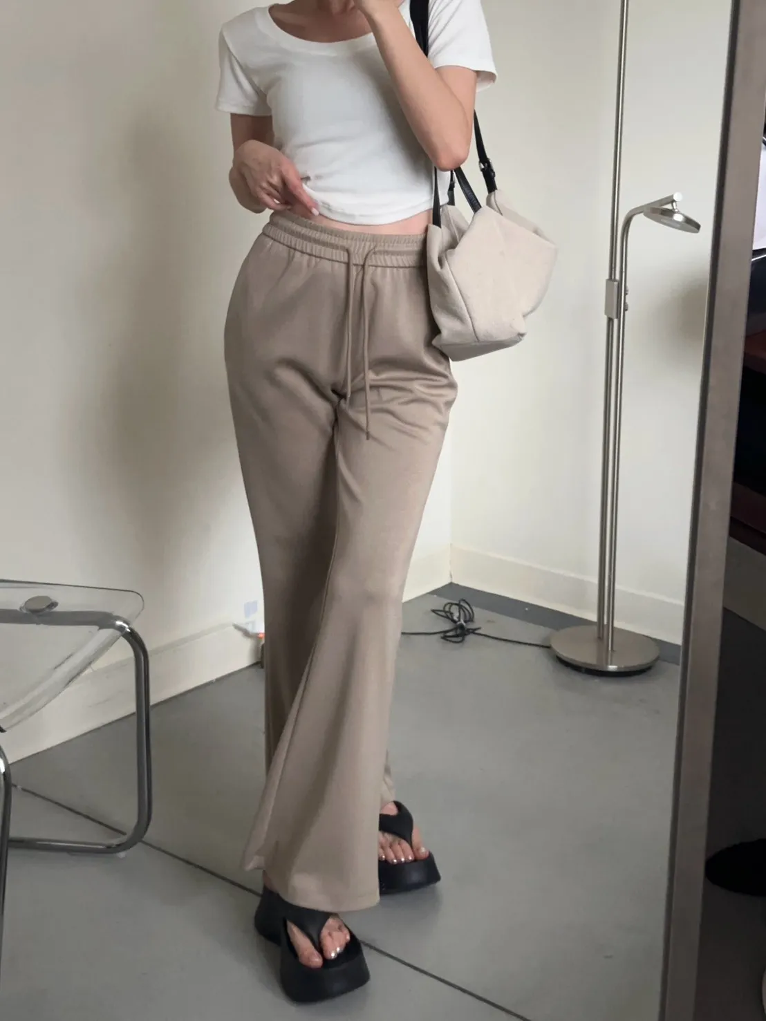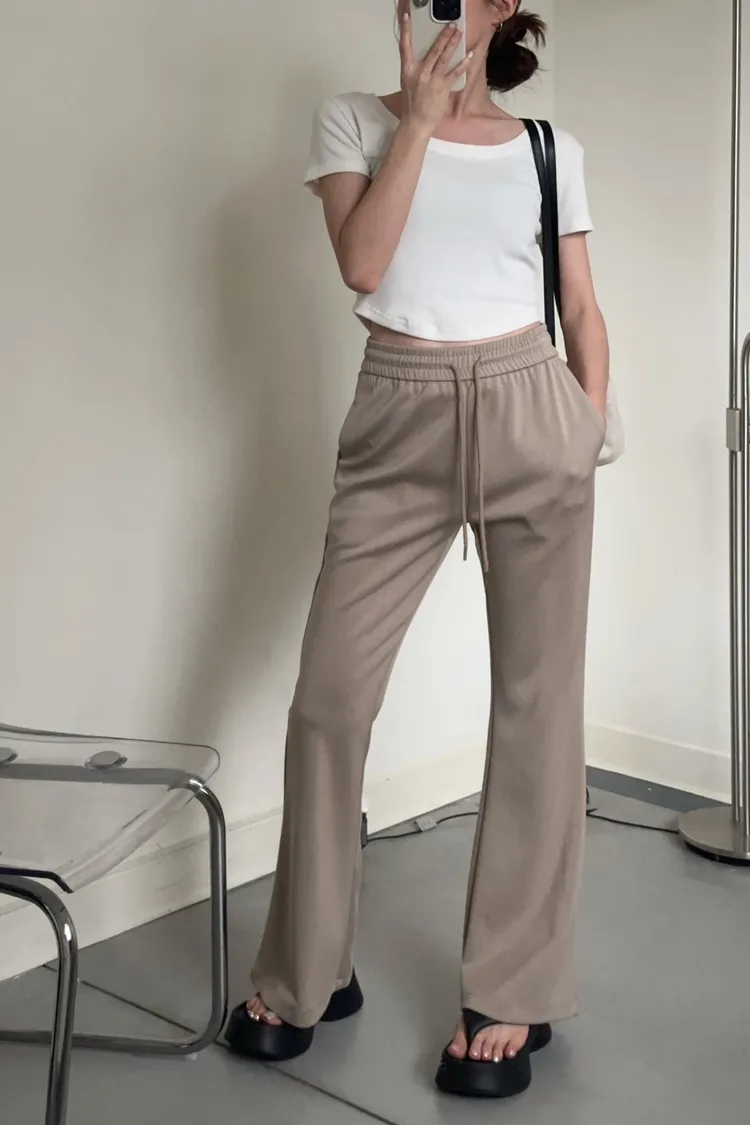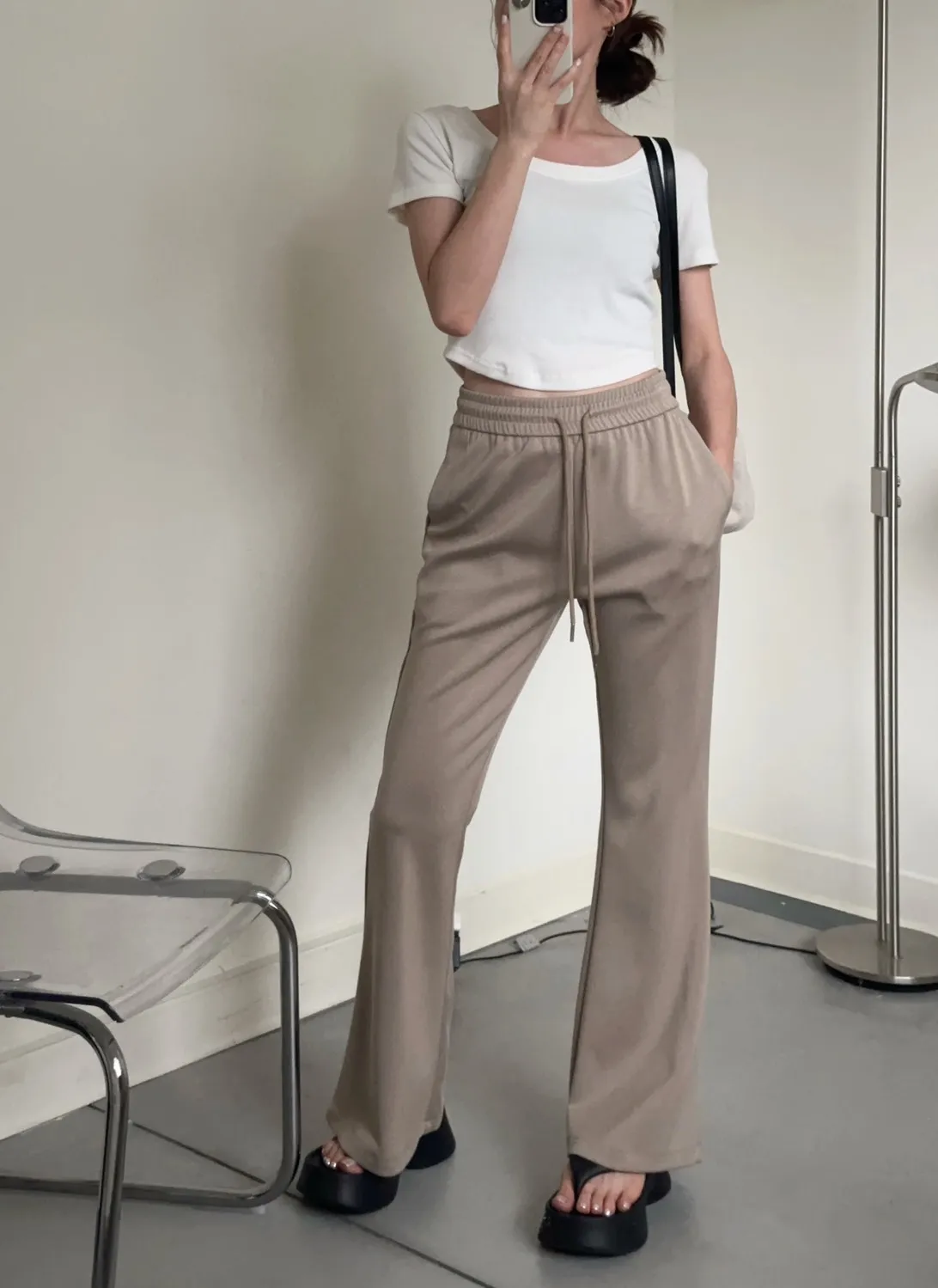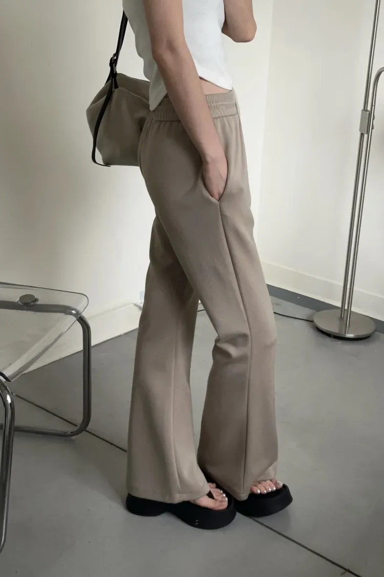 (現貨)KOREA 奶茶色 空氣涼感棉微喇叭褲