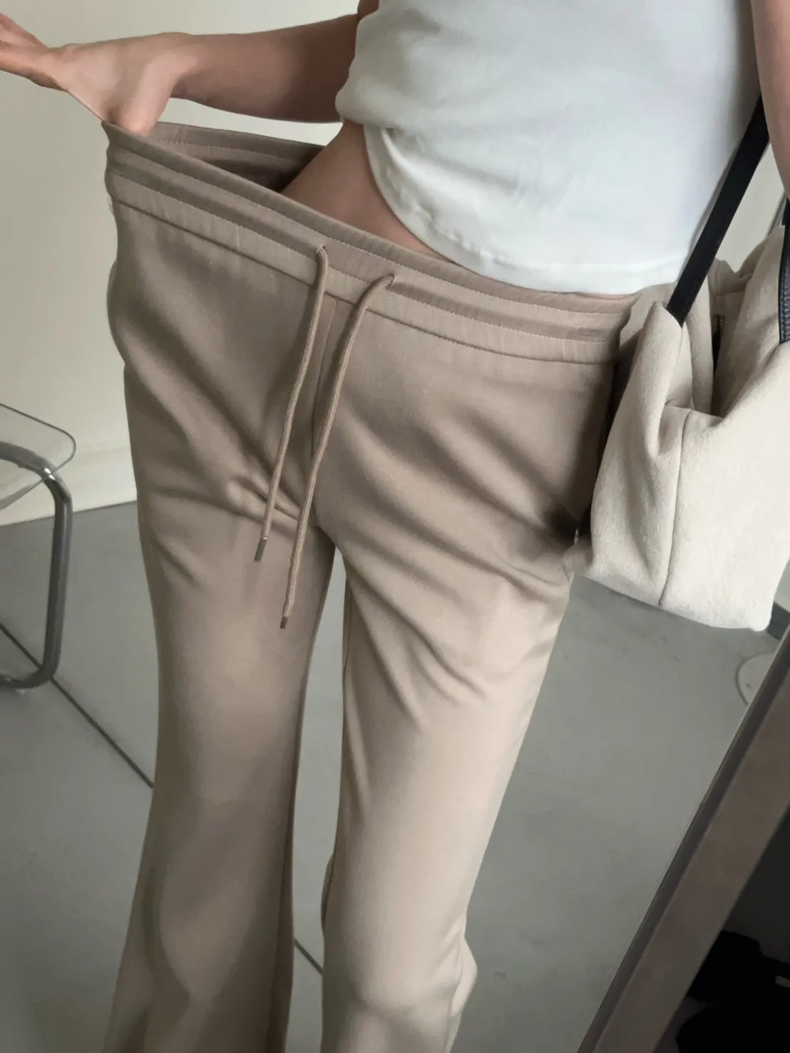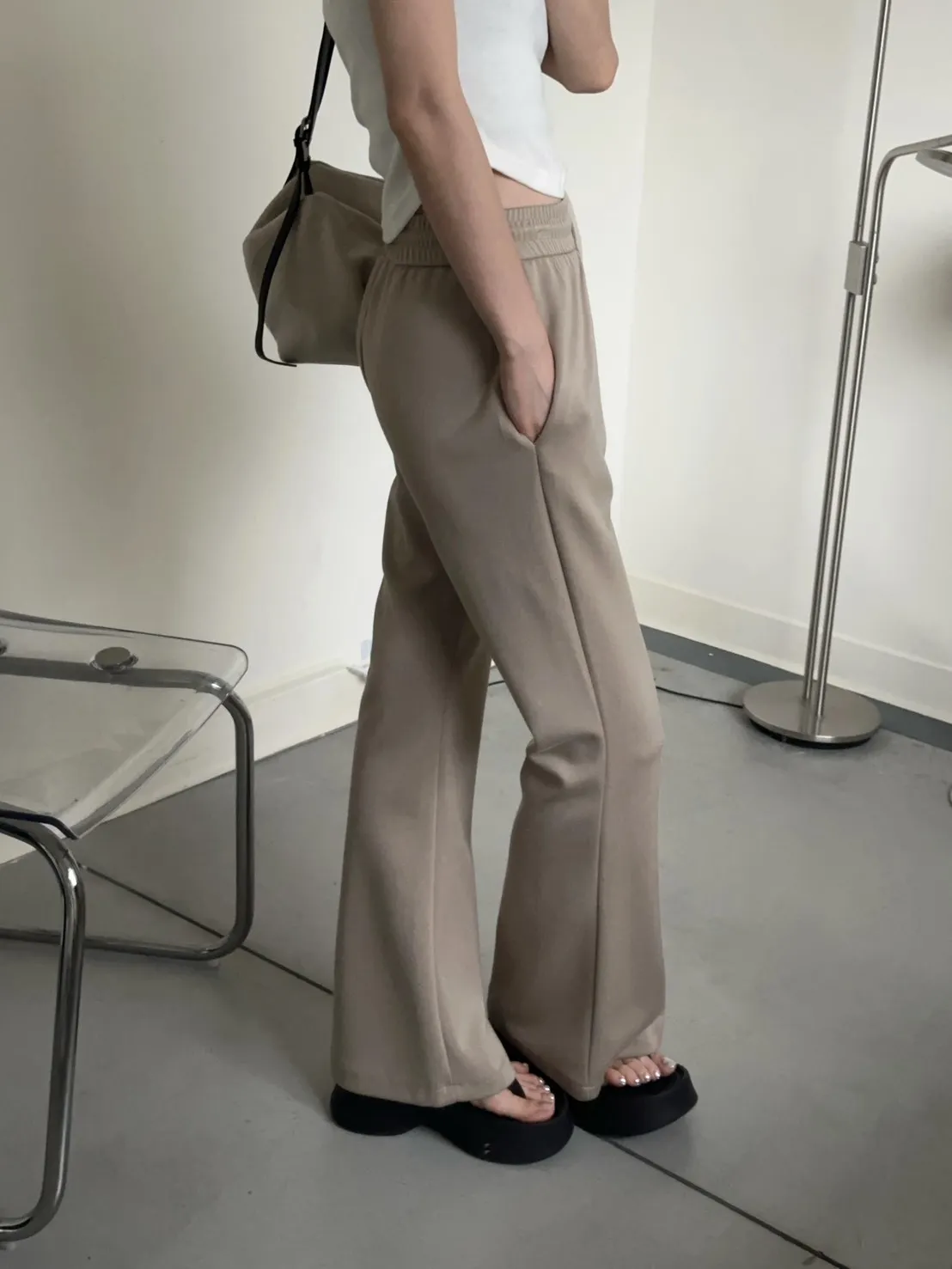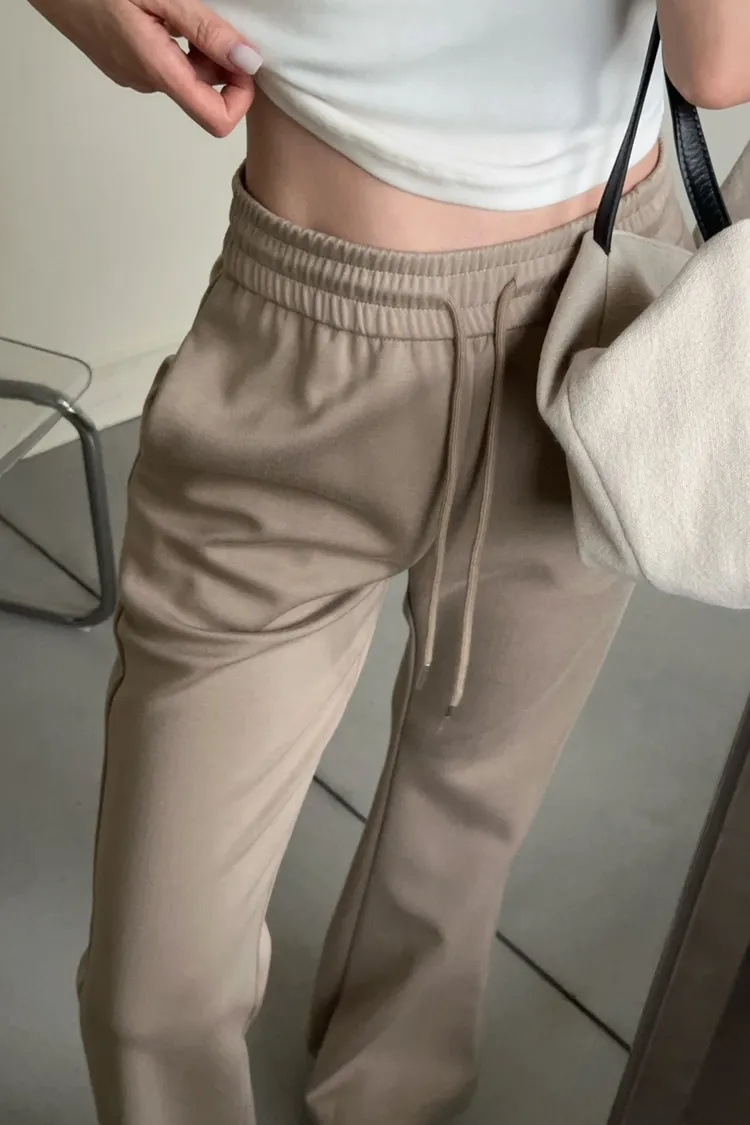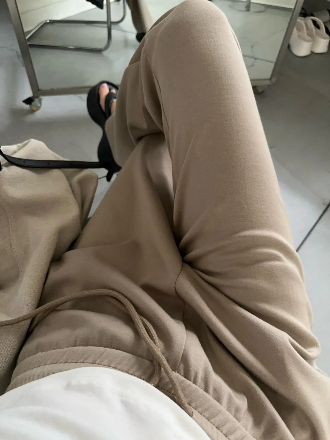 (現貨)KOREA 奶茶色 空氣涼感棉微喇叭褲