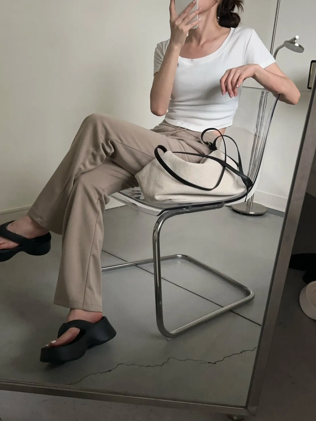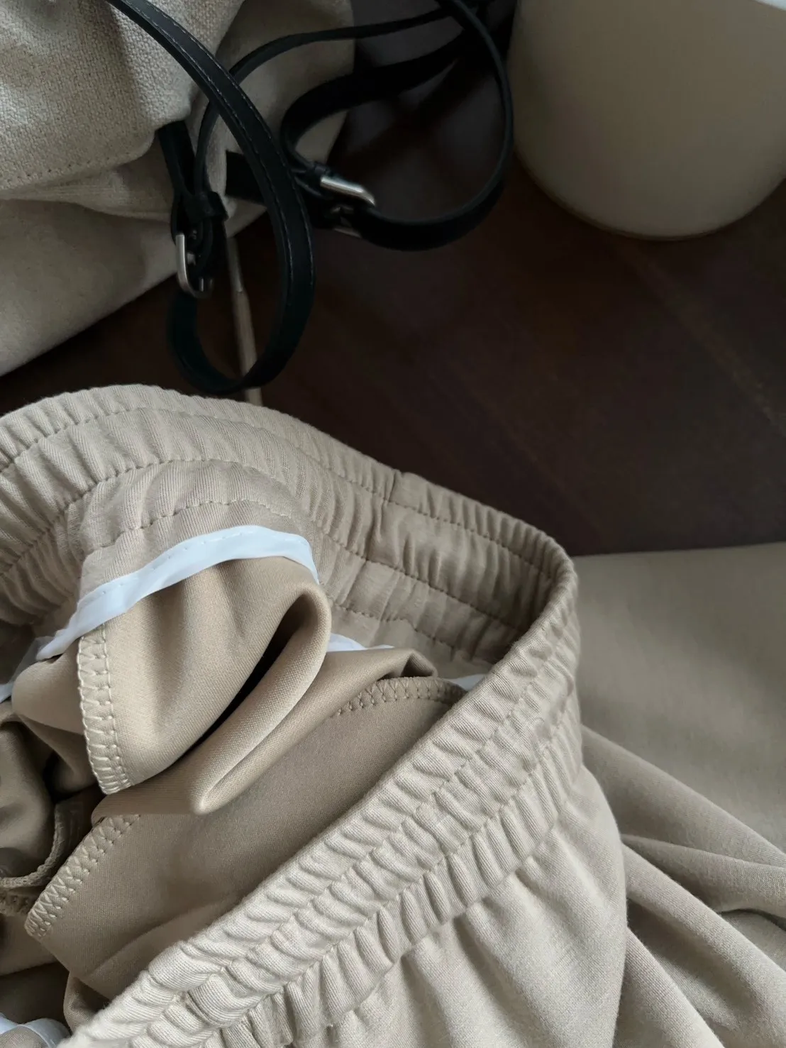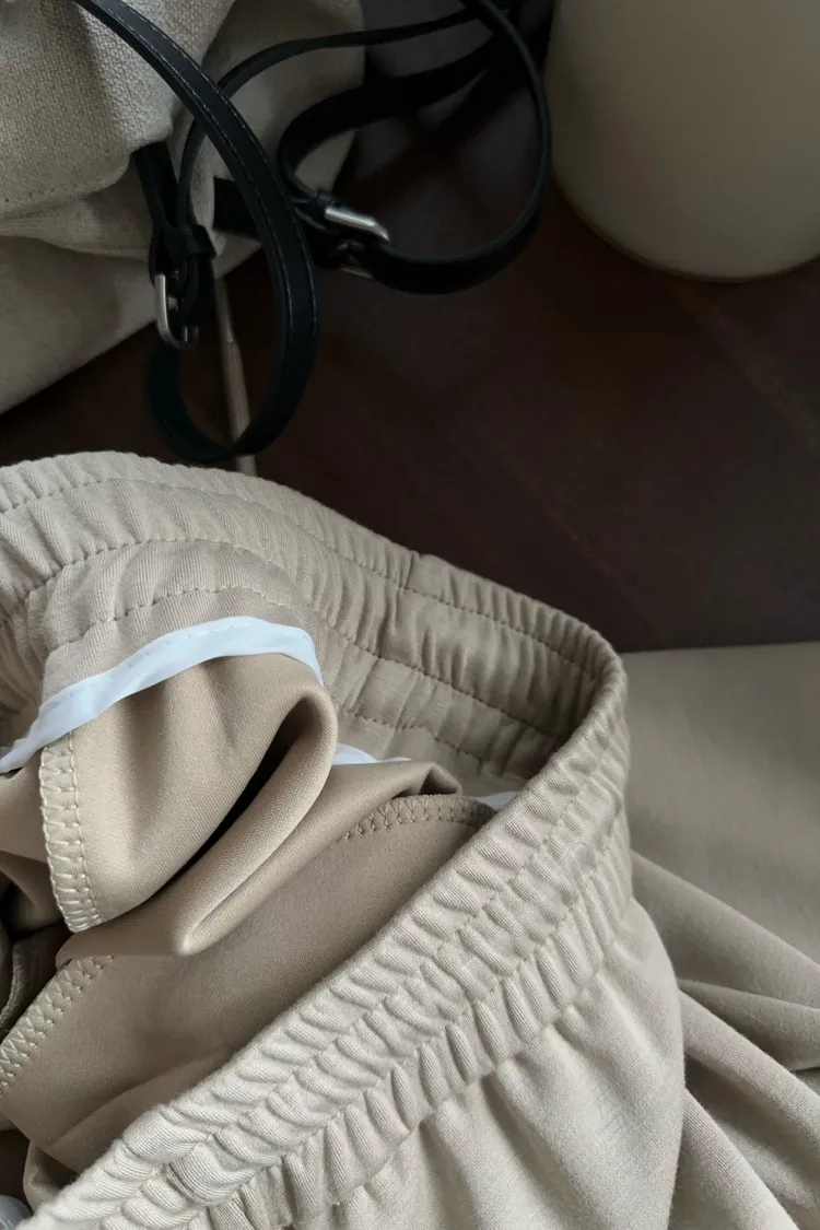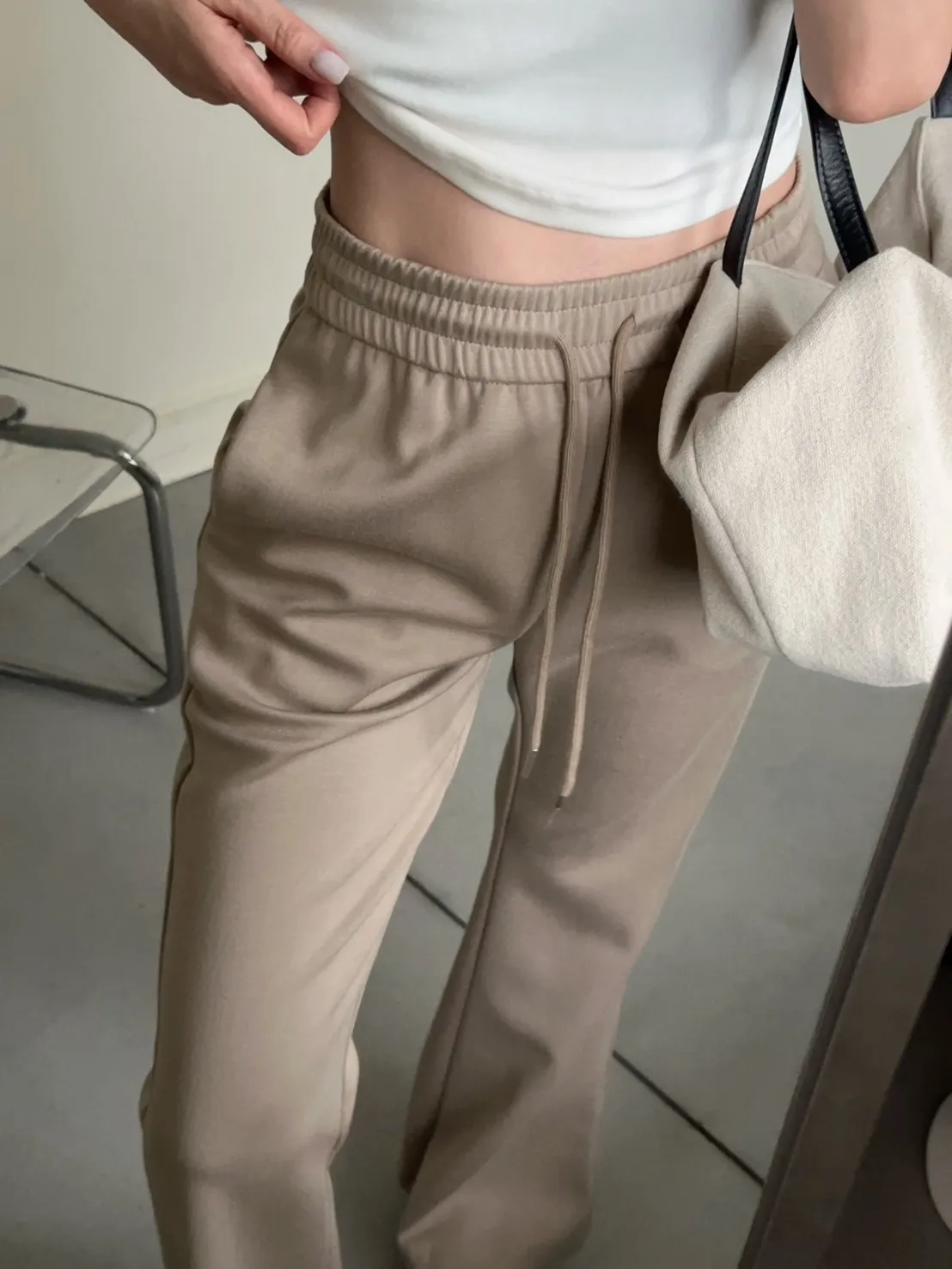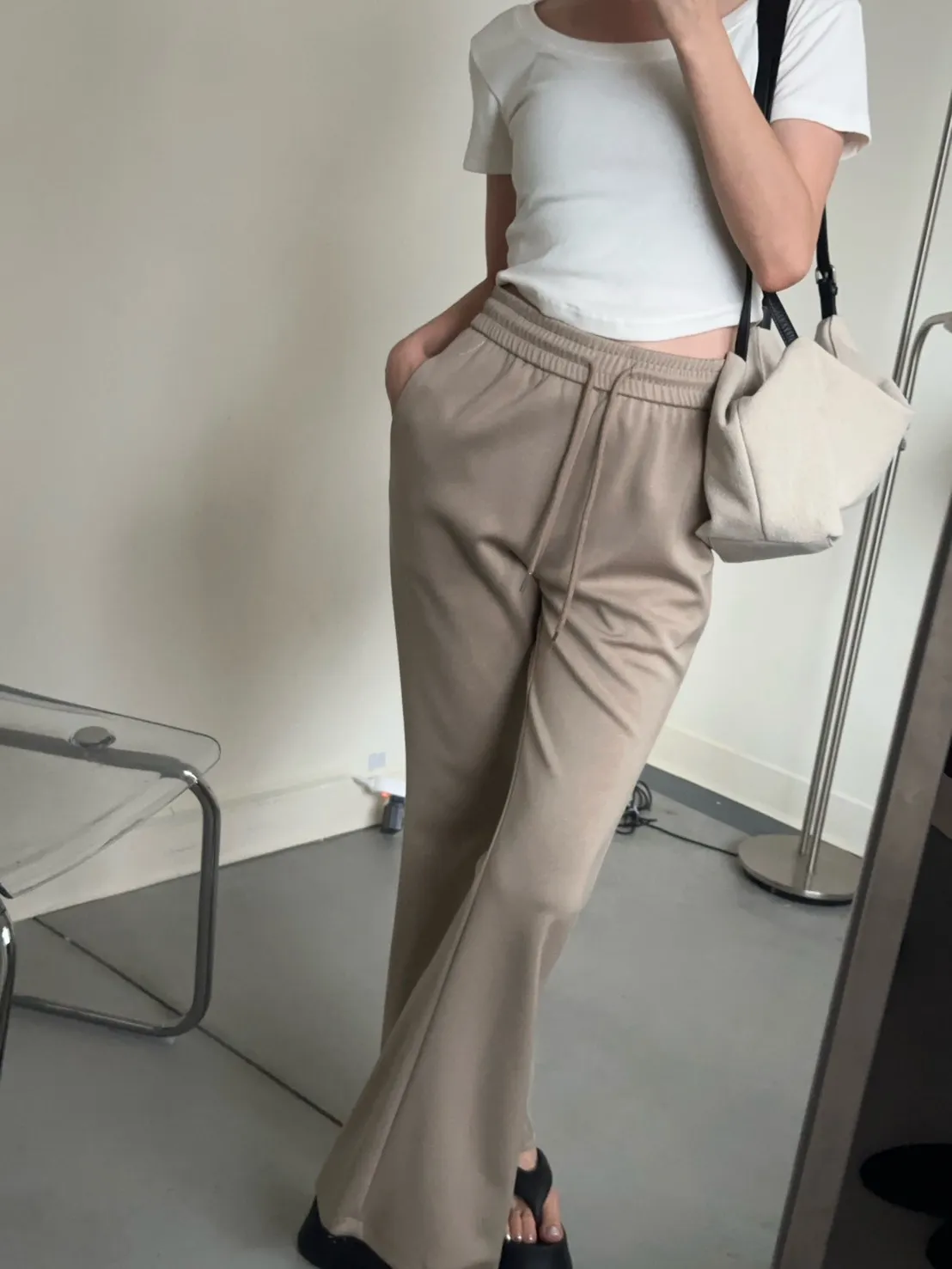 (現貨)KOREA 奶茶色 空氣涼感棉微喇叭褲