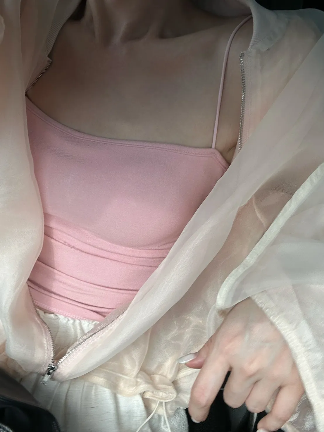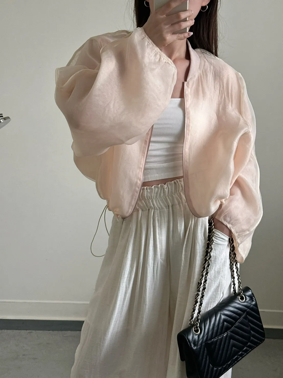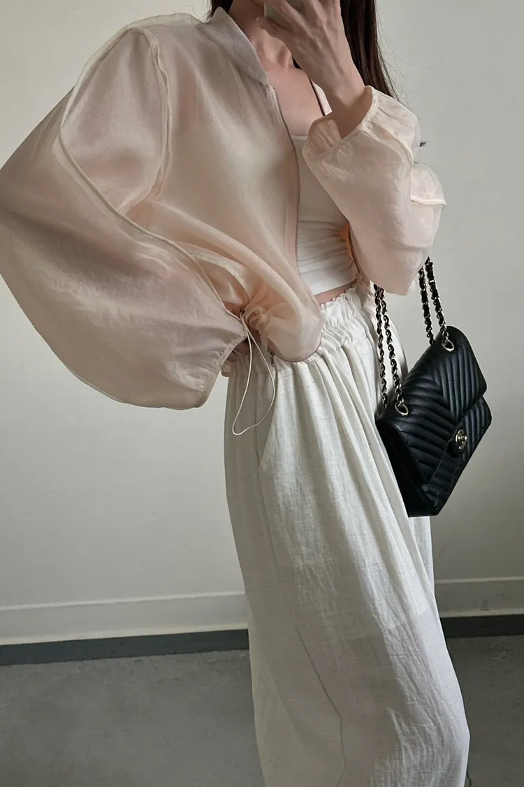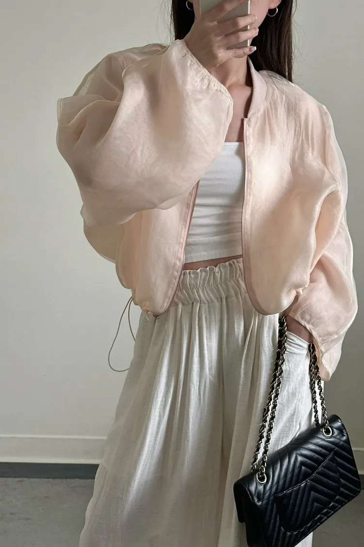粉色 大主推!透紗下抽繩棒球感外套