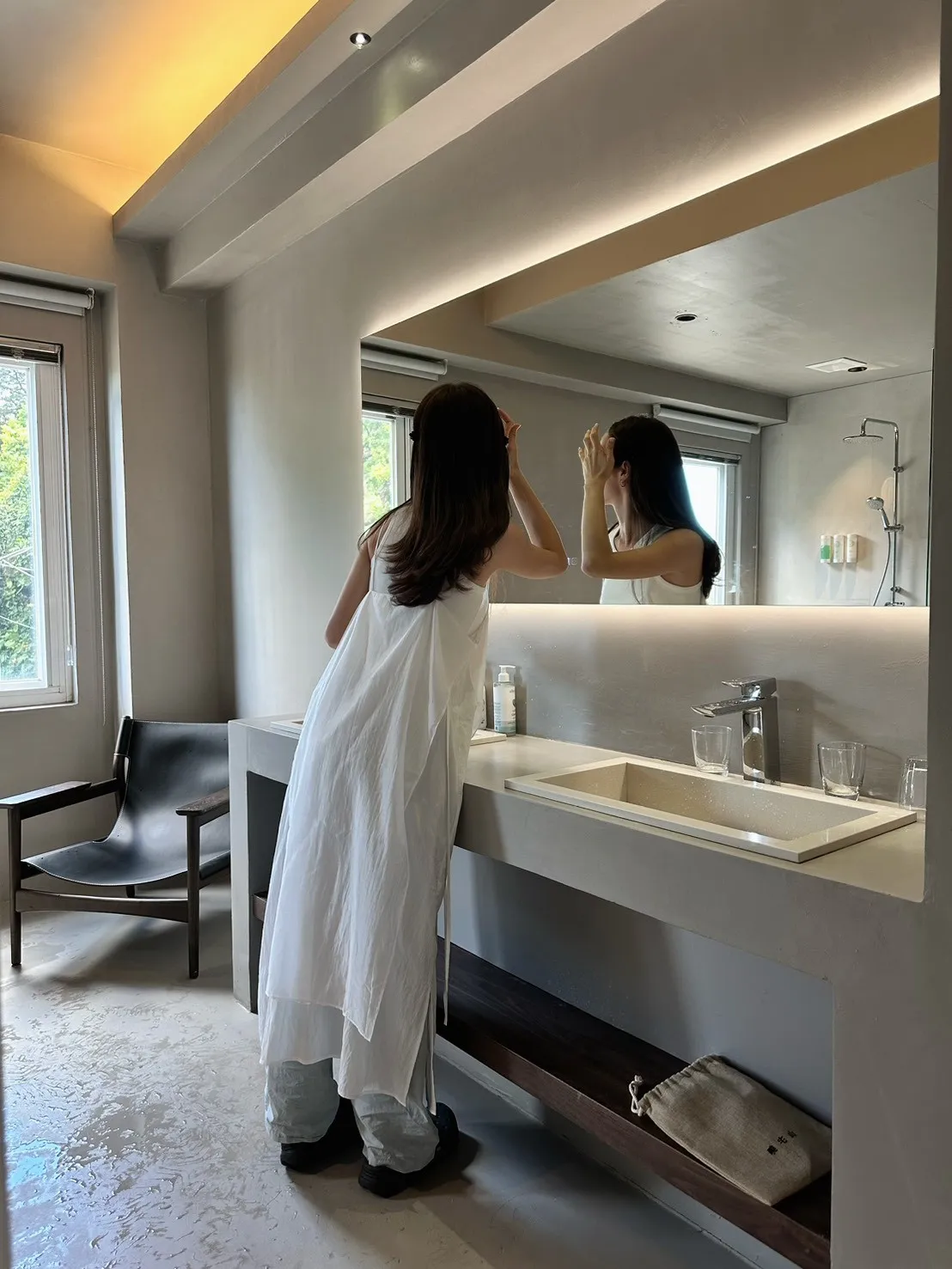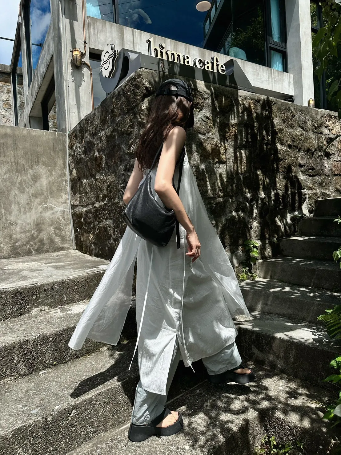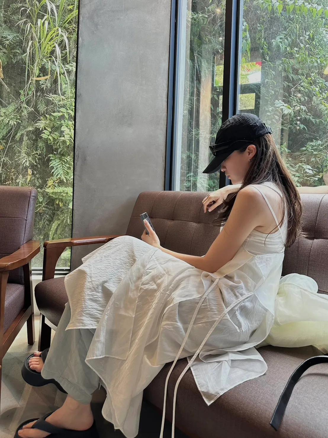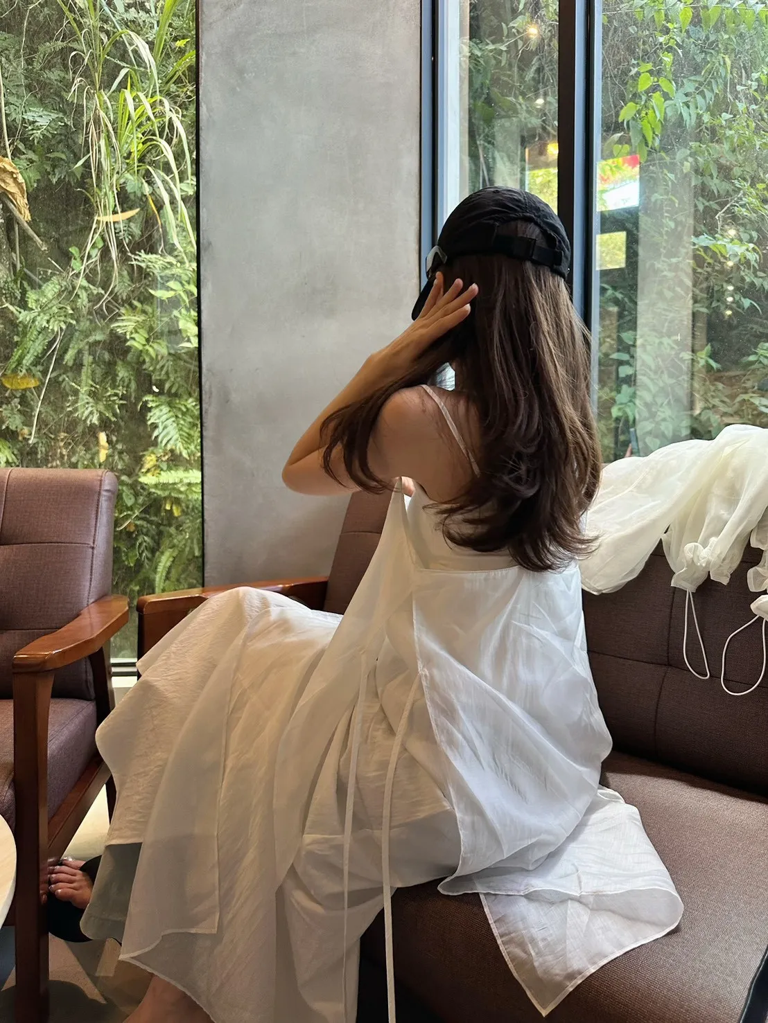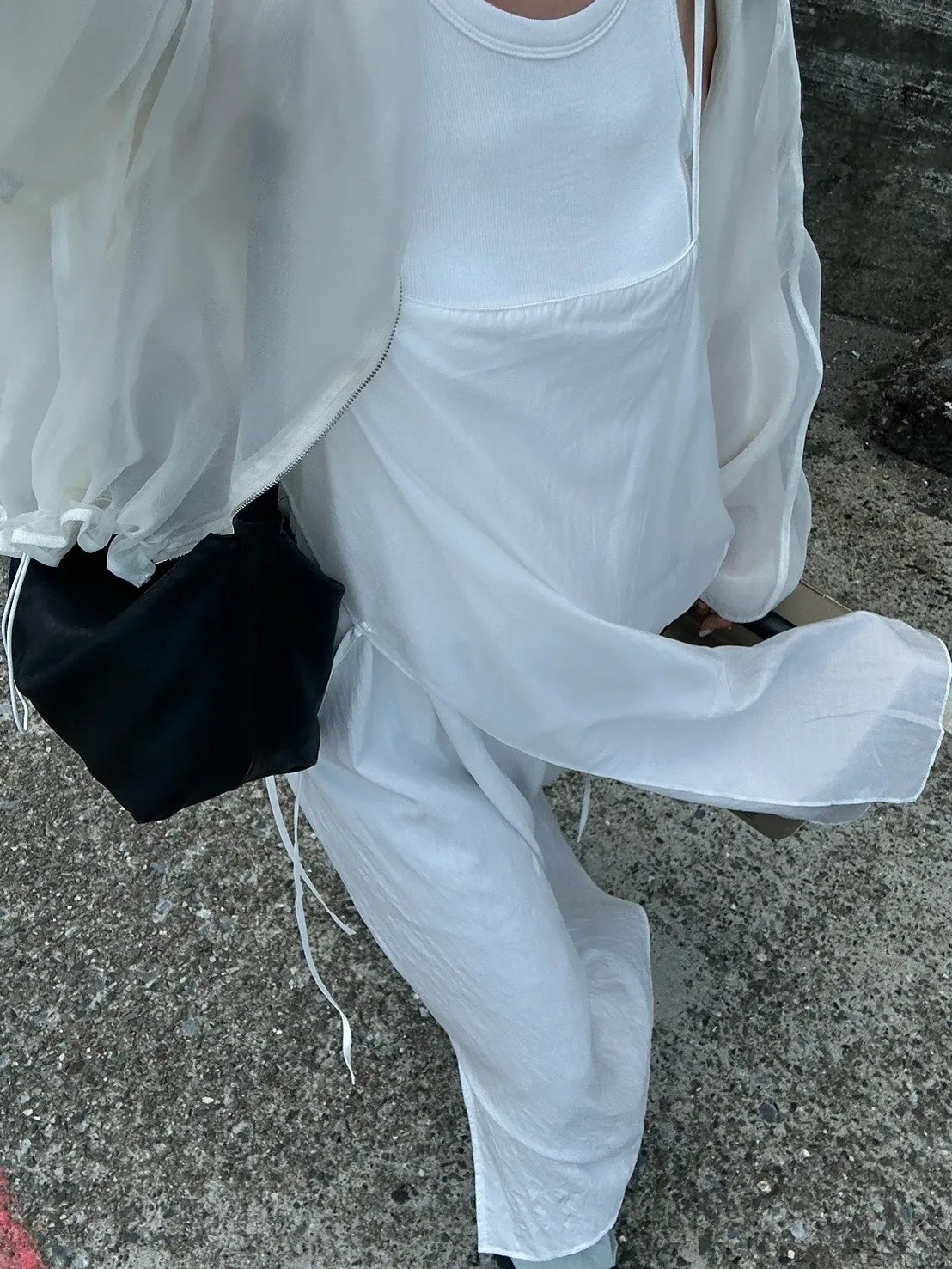 白色 巨美!仙女雙層側綁細肩背心洋裝